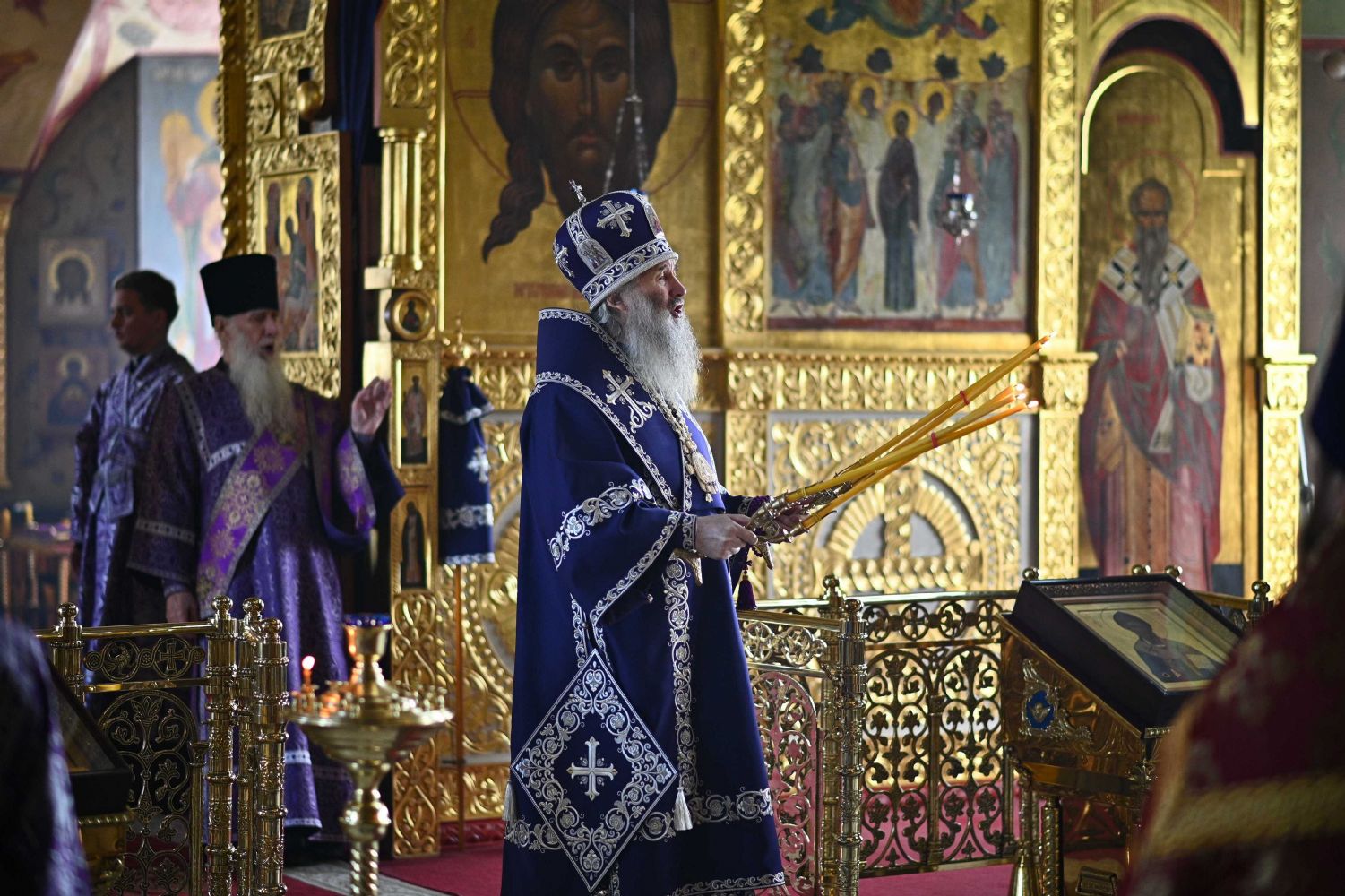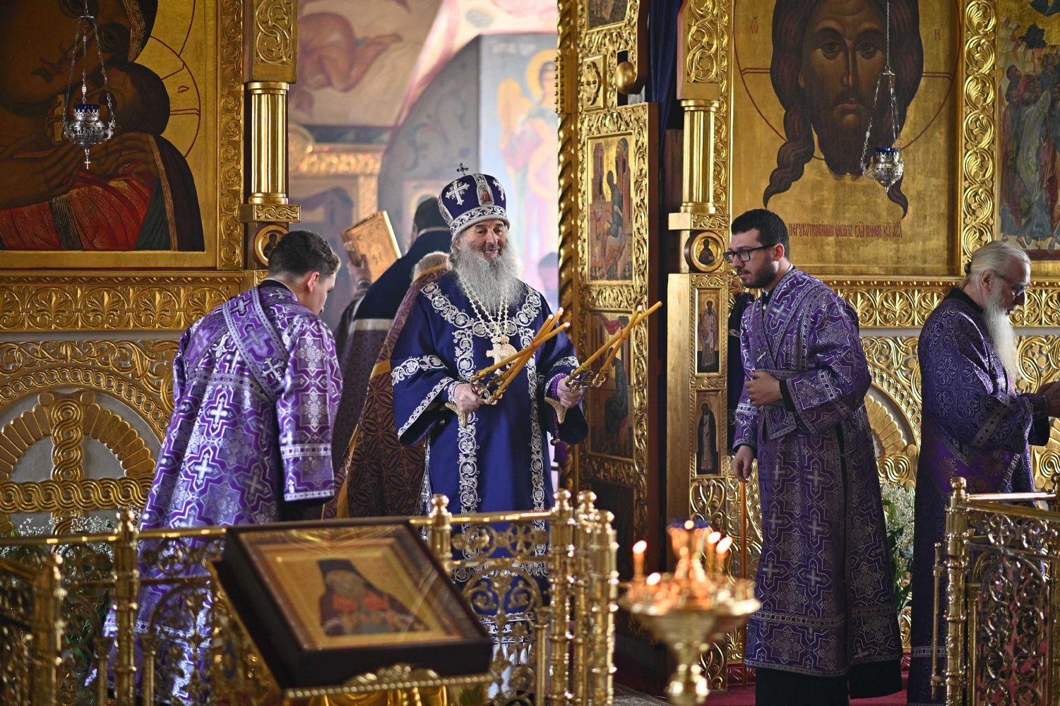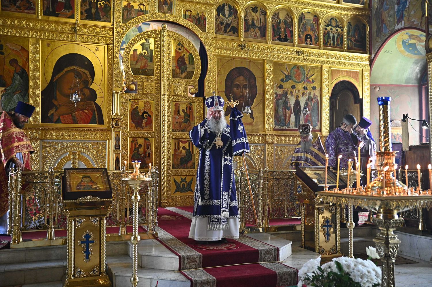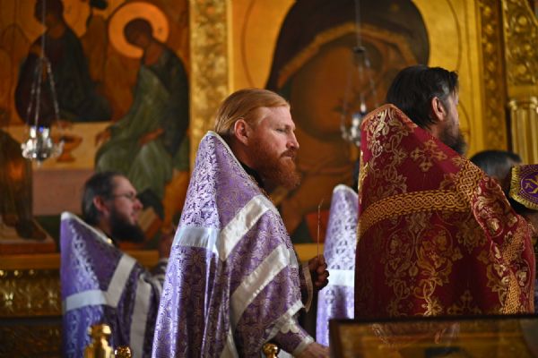 Архипастырю сослужили настоятель собора протоиерей Евгений Кутырев, уга клирики собора протоиерей Андрей Норкин, иереи Владимир Глебов, Иоанн Кристев, Владимир Камышев, Димитрий Копылов и диакон Владимир Лихачев, а также протодиакон Михаил Козловский. Песнопения исполнял хор собора под управлением регента Ангелины Бабиной.