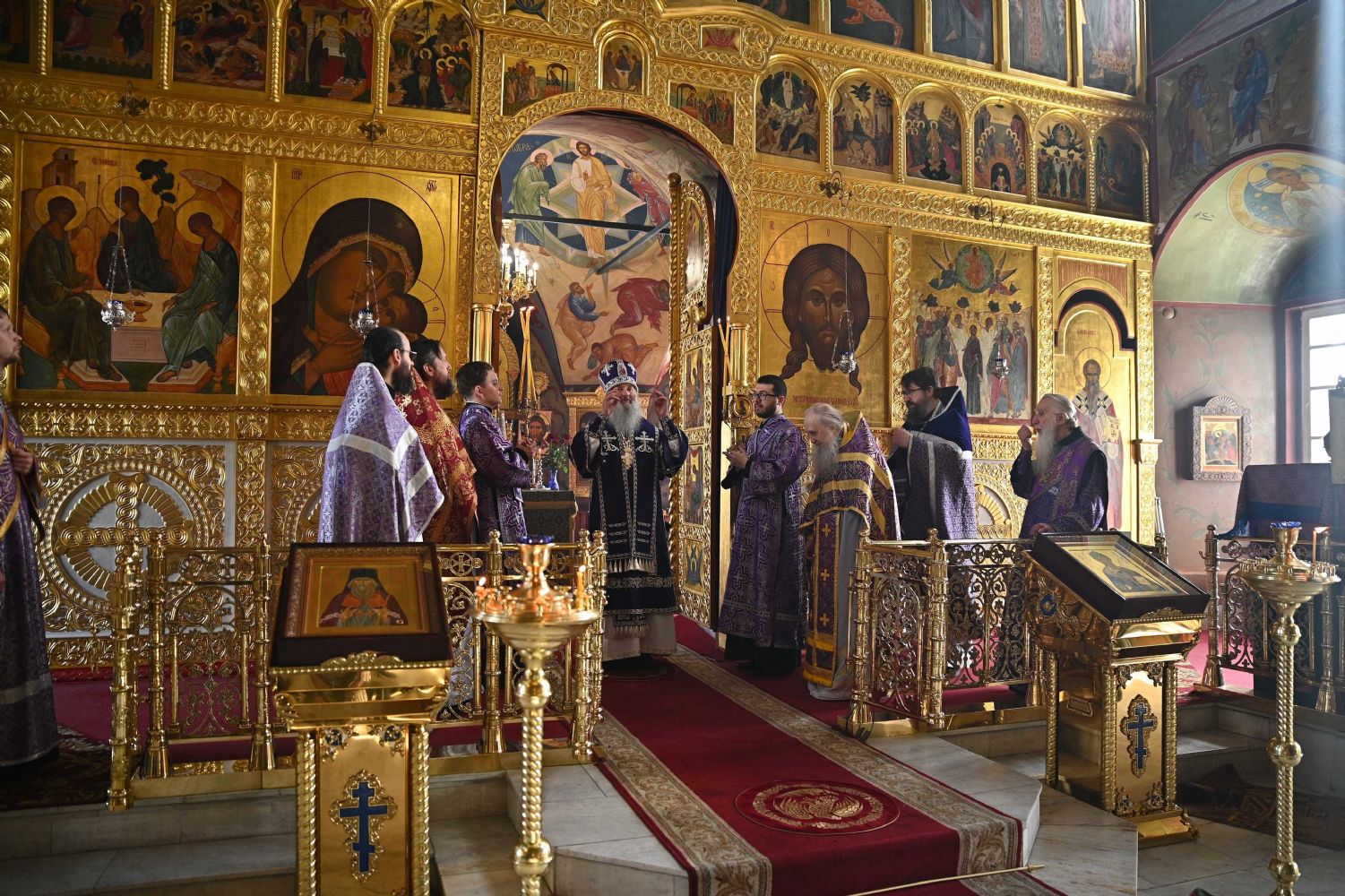 После заамвонной молитвы владыка с сослужащим духовенством последний раз в этом году вознесли молитву Ефрема Сирина с земными поклонами.