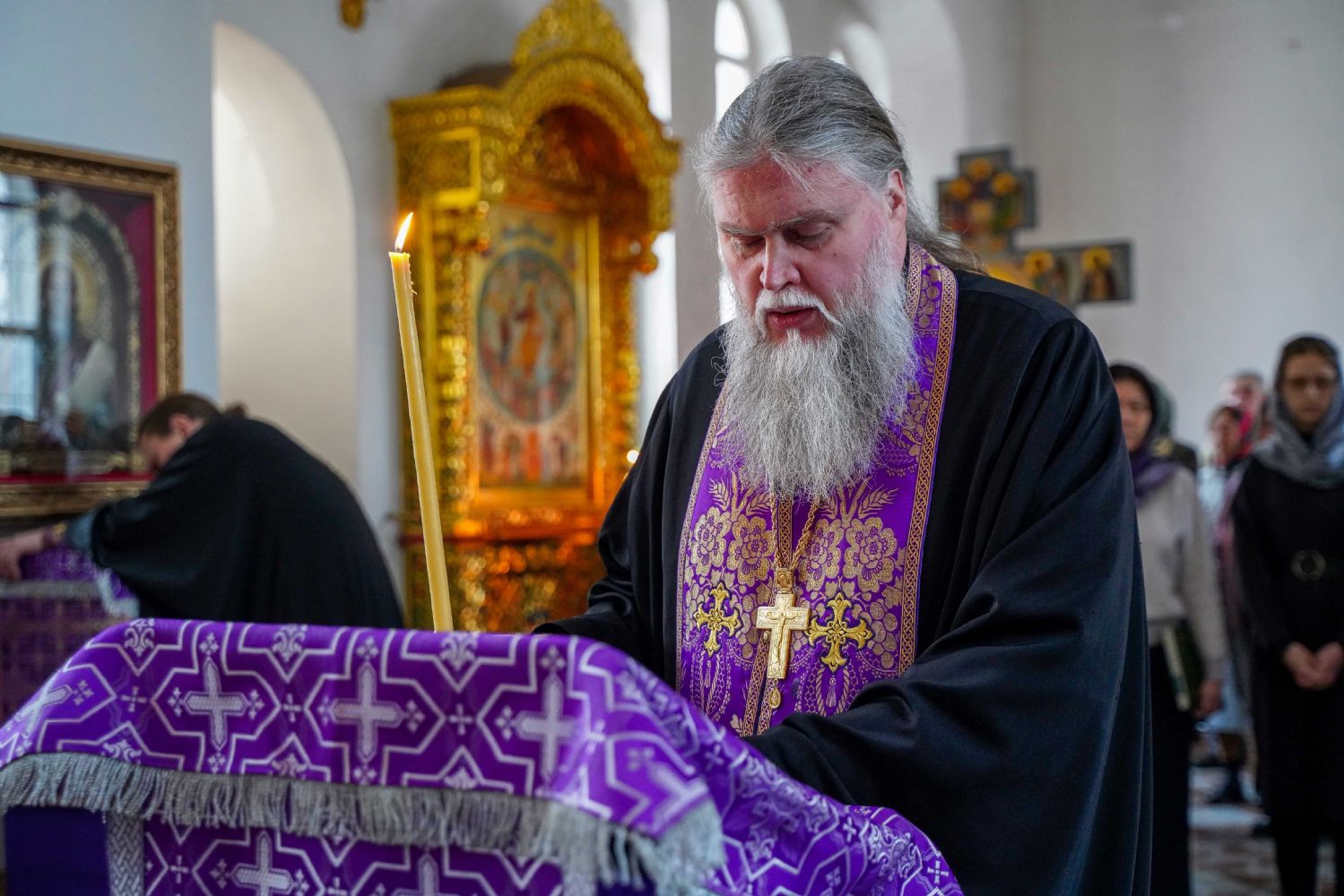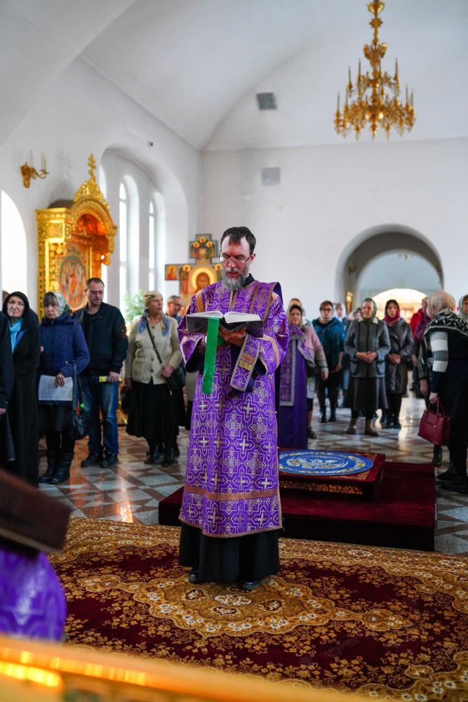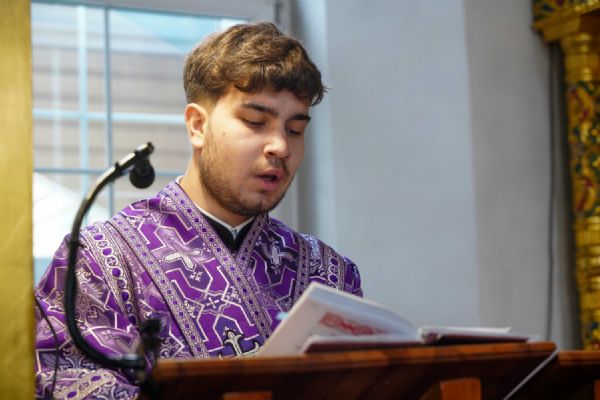 На малом повечерии в центре храма протоиерей Александр Бачурин прочитал трипеснец преподобного Андрея Критского, посвященный воспоминанию Тайной Вечери и предательства Иуды.