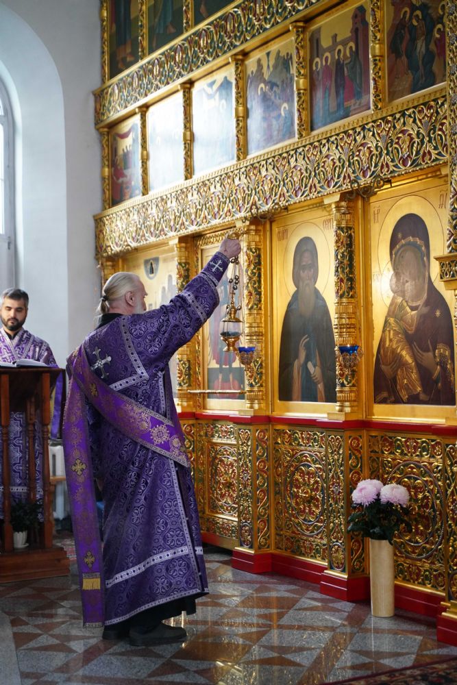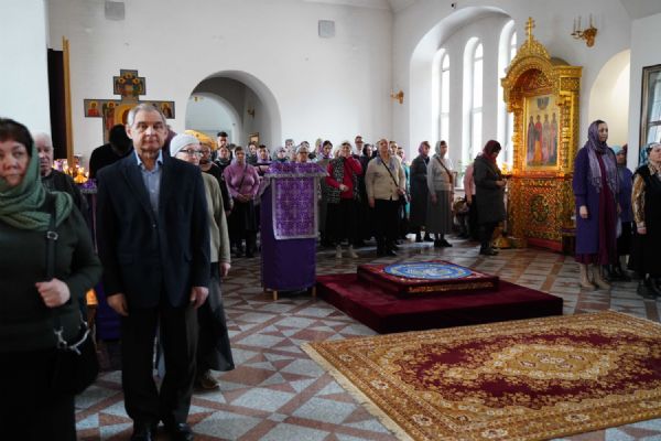 Архипастырю сослужили настоятель храма протоиерей Александр Бачурин, клирик храма диакон Алексий Ершов, а также протодиакон Михаил Козловский. Исповедь у многочисленных прихожан принимали иереи Константин Домрачев, Виктор Умрихин и Николай Бабич. Песнопения исполнял хор храма под управлением Елены Умрихиной.