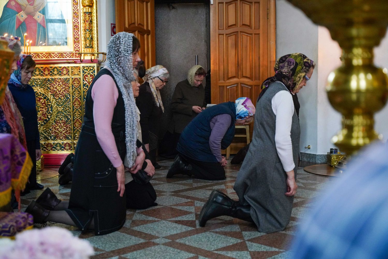 Во время пения тропаря Великого Четверга «Егда славнии ученицы на умовении вечери просвещахуся, тогда Иуда злочестивый сребролюбием недуговав омрачашеся…» священнослужители в алтаре преклоняли колени.