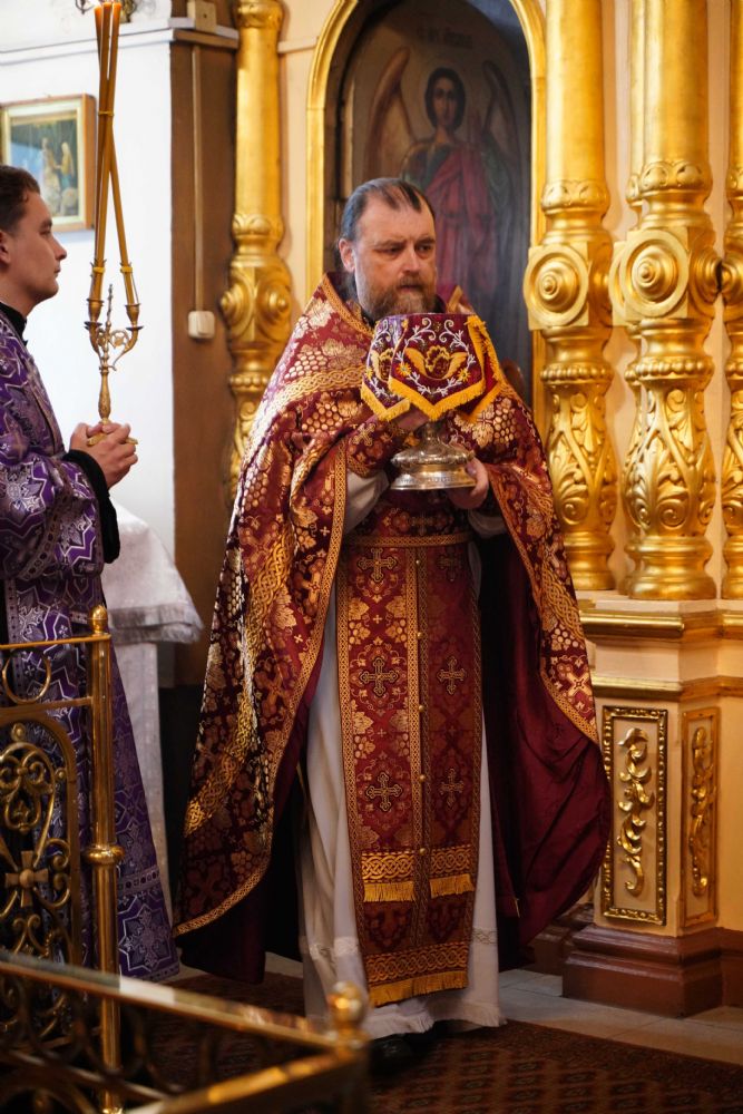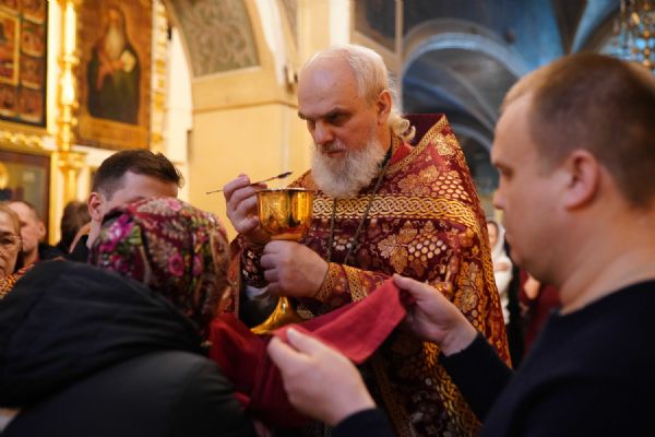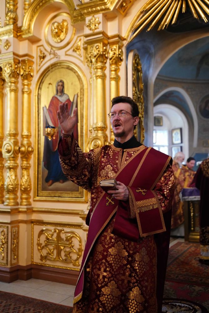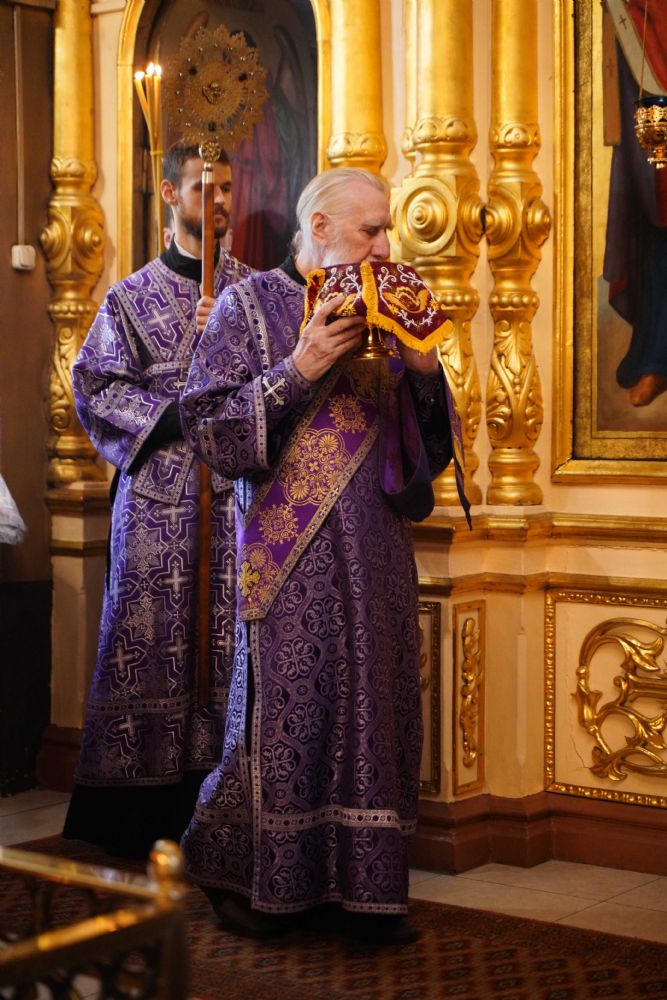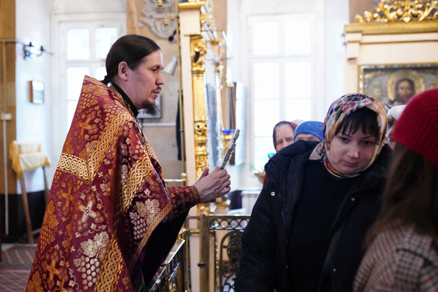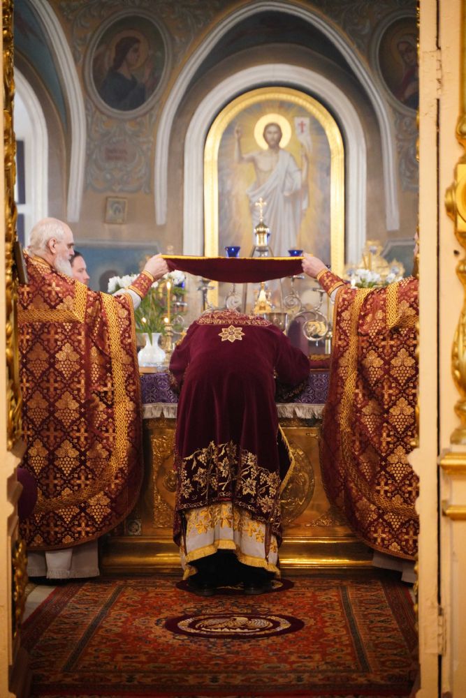 Архипастырю сослужили ключарь храма протоиерей Михаил Ильин, клирики храма протоиерей Павел Матвеев, иереи Димитрий Иванов, Сергий Асланов и Павел Дурандин, протодиакон Михаил Козловский и диакон Димитрий Смирнов. Песнопения исполнял хор храма под управлением Надежды Торощиной.