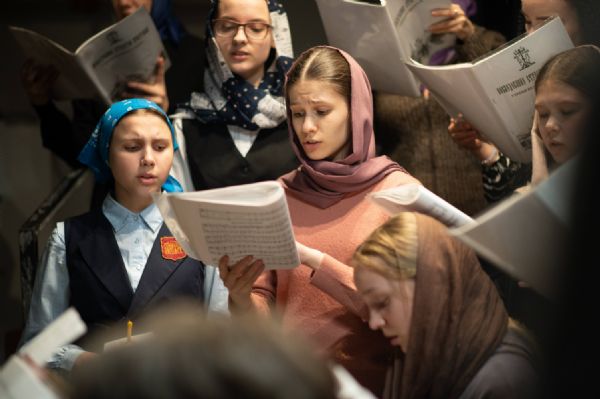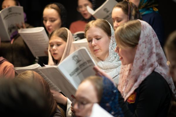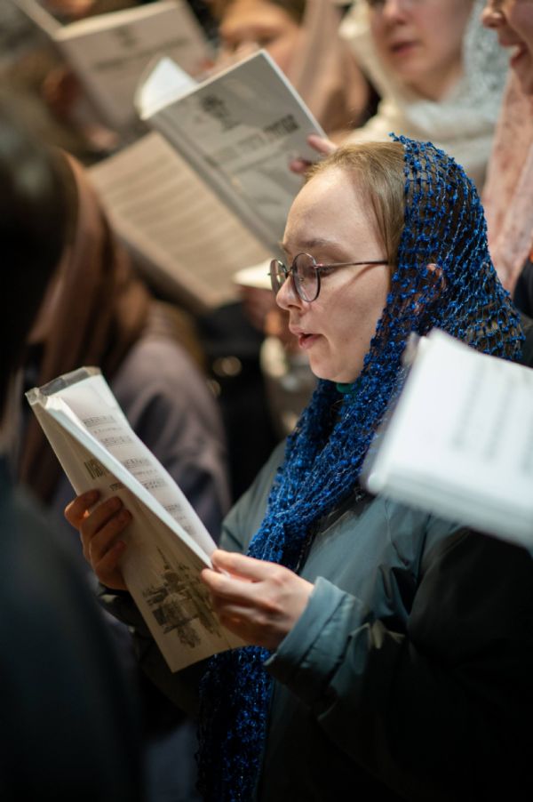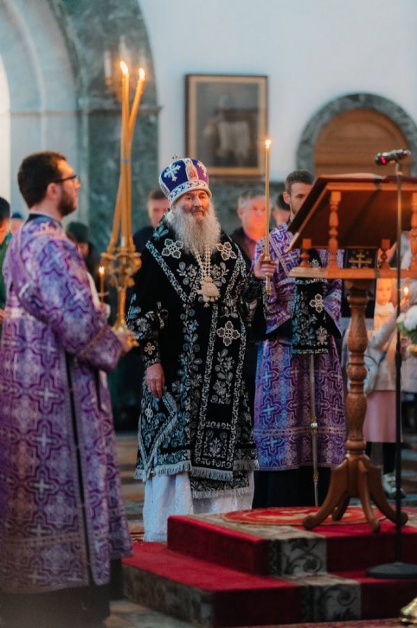 За богослужением пел архиерейский хор «Благовест» под управлением регента Татьяны Черновой. Часть песнопений прозвучала в исполнении мужского хора священства кафедрального собора под руководством иерея Евгения Самойлова.