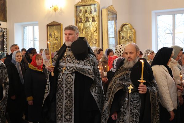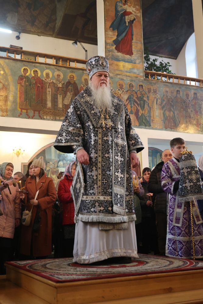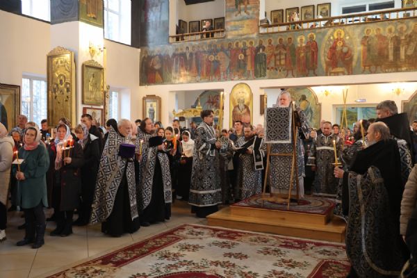 Архипастырю сослужили клирики кафедрального собора иерей Николай Аникин, иеромонах Александр (Чеборов), иерей Иоанн Лапшинский, иеромонах Питирим (Мосякин), диакон Иоанн Захаров, диакон Александр Викторов. Песнопения исполнял архиерейский хор под управлением Любови Михеевой.