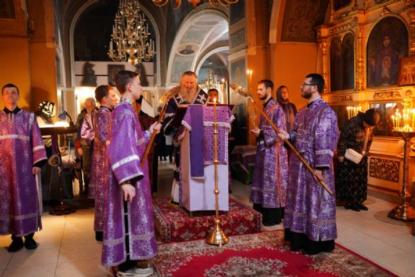 Владыке сослужили ключарь храма протоиерей Михаил Ильин, клирики храма протоиерей Павел Матвеев, иереи Димитрий Иванов, Сергий Асланов и Павел Дурандин, протодиакон Михаил Козловский и диакон Димитрий Смирнов. Песнопения исполнял хор храма под управлением Ирины Лебедевой.