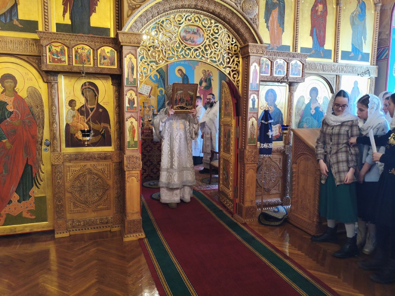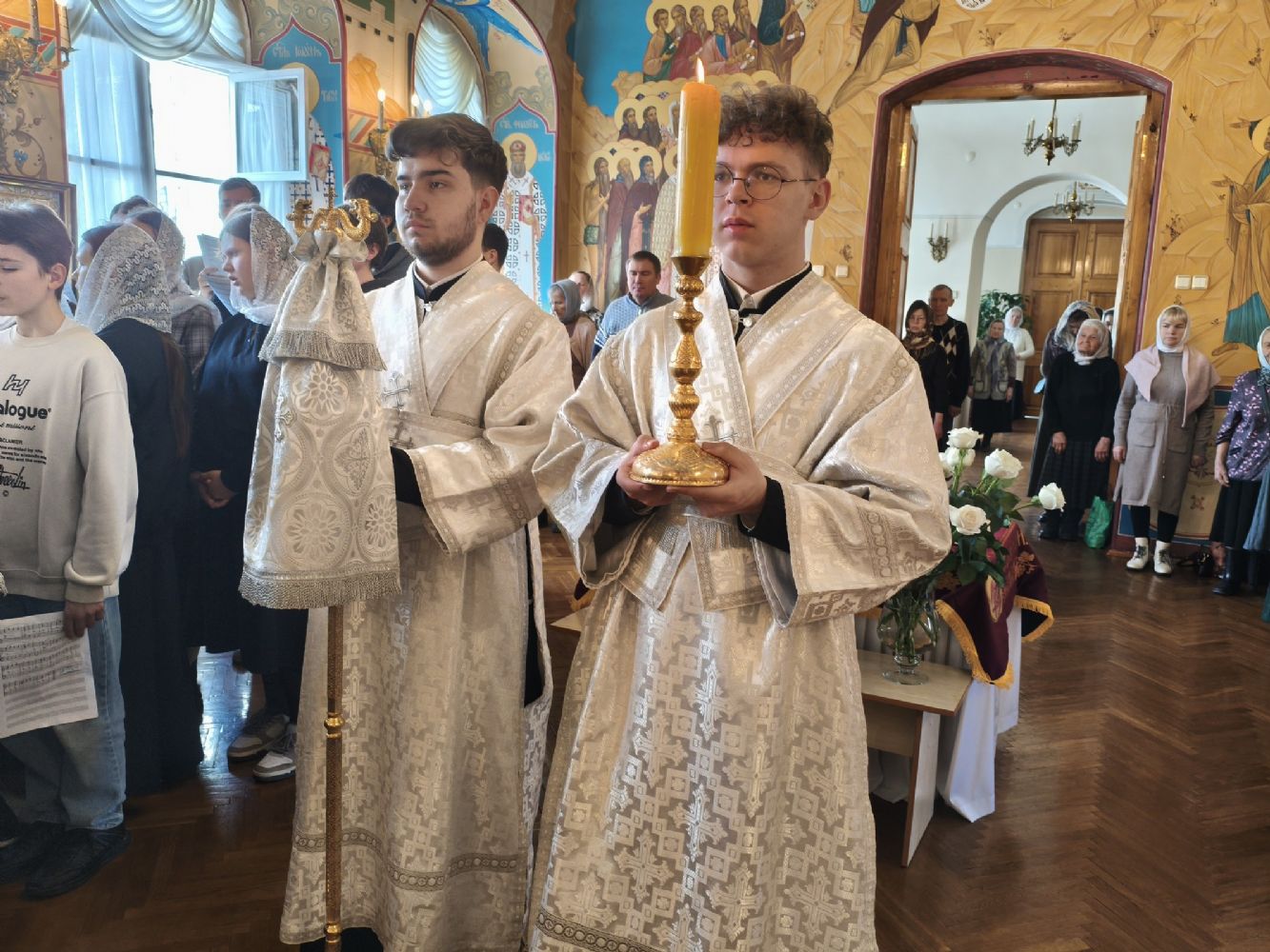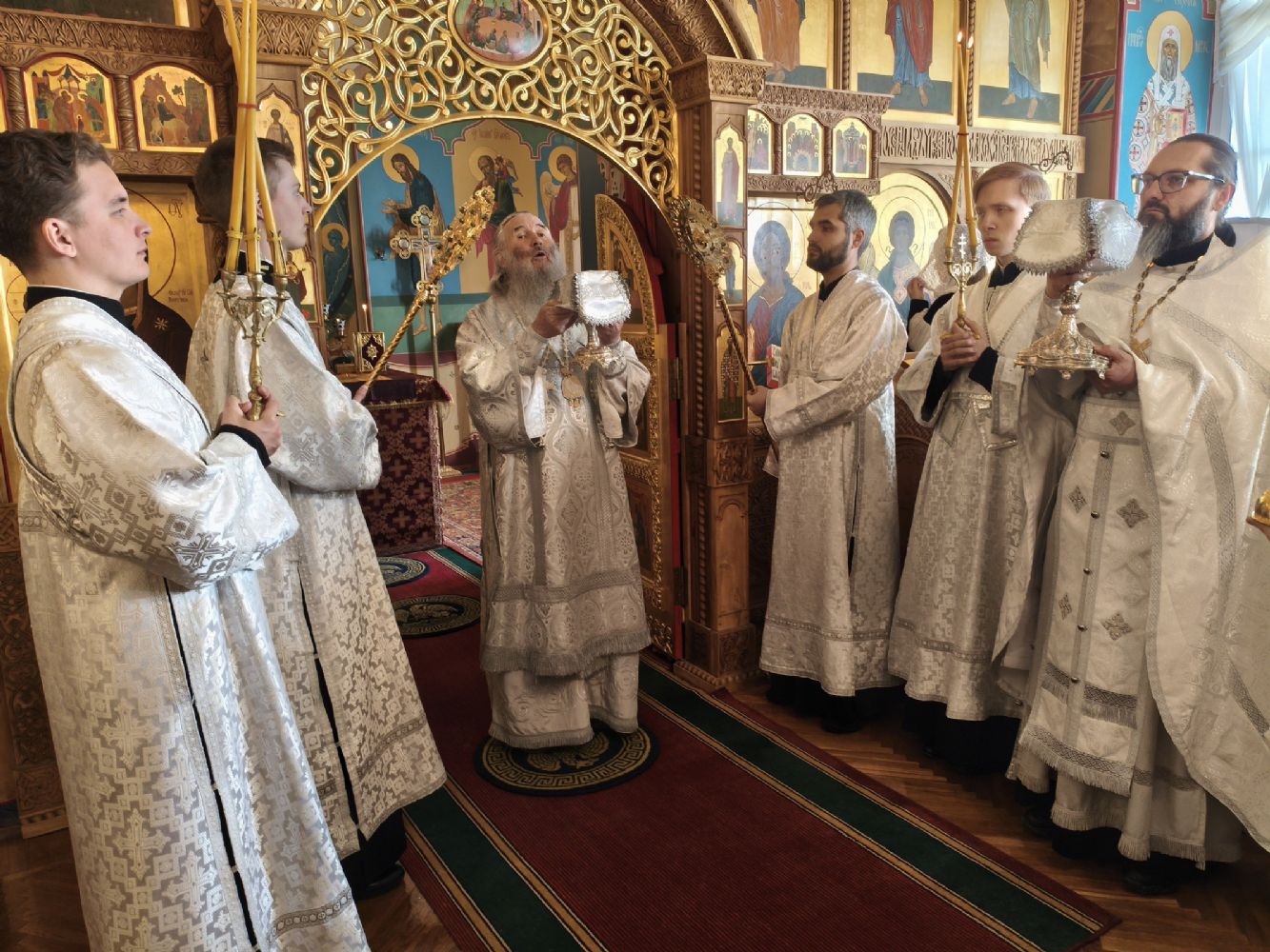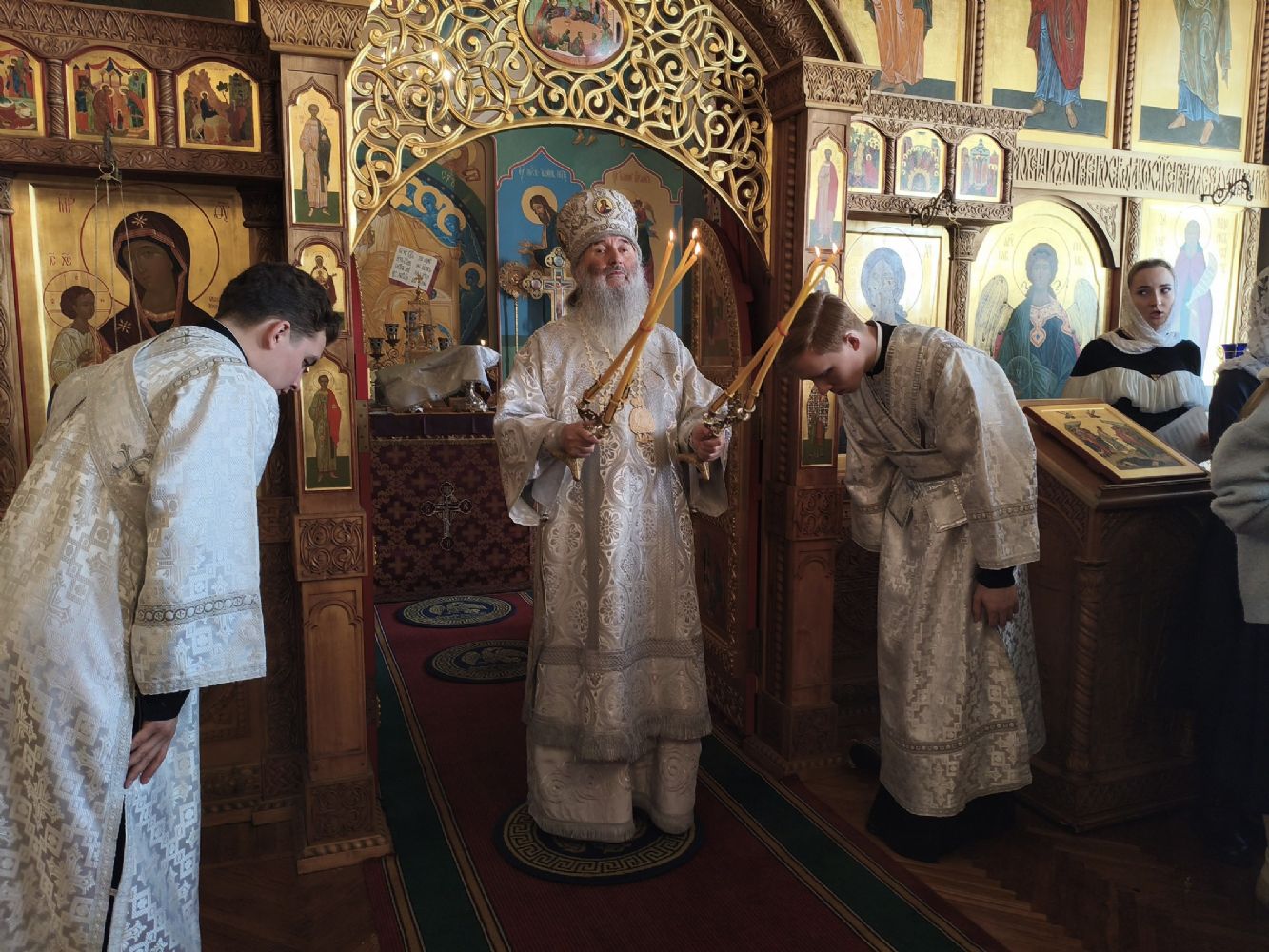 Владыке сослужили секретарь Йошкар-Олинского епархиального управления иерей Димитрий Дьяков и протодиакон Михаил Козловский. Песнопения исполнял хор «Благовест» под руководством регента Татьяны Черновой.