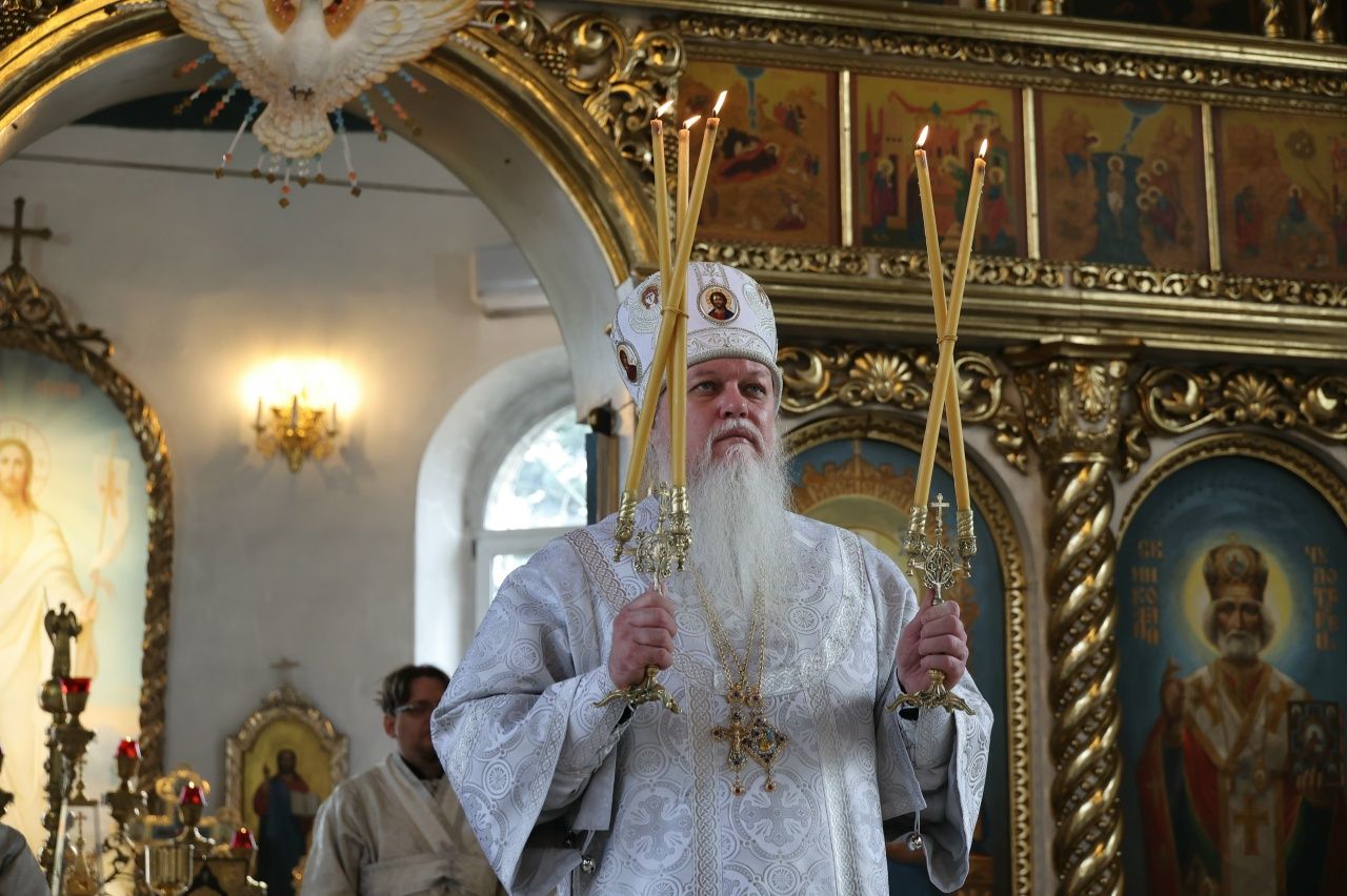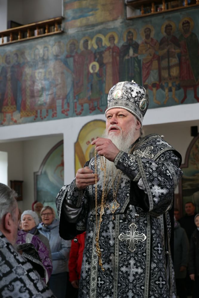 По окончании богослужения глава епархии обратился к пастве с архипастырским словом, напомнив, что после смерти на кресте Спаситель в Великую Субботу душой Своей сошел во ад, где Его ожидали все праведники со времён Адама и Евы. Ибо рай после грехопадения наших прародителей был закрыт для людей, и вновь врата рая открыл Христос. И теперь в напоминание, что рай вновь отверст для человеческих душ, в иконостасах православных храмов всю Светлую седмицу будут открыты Царские врата.