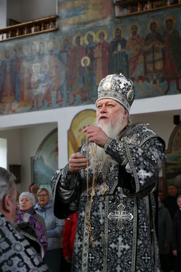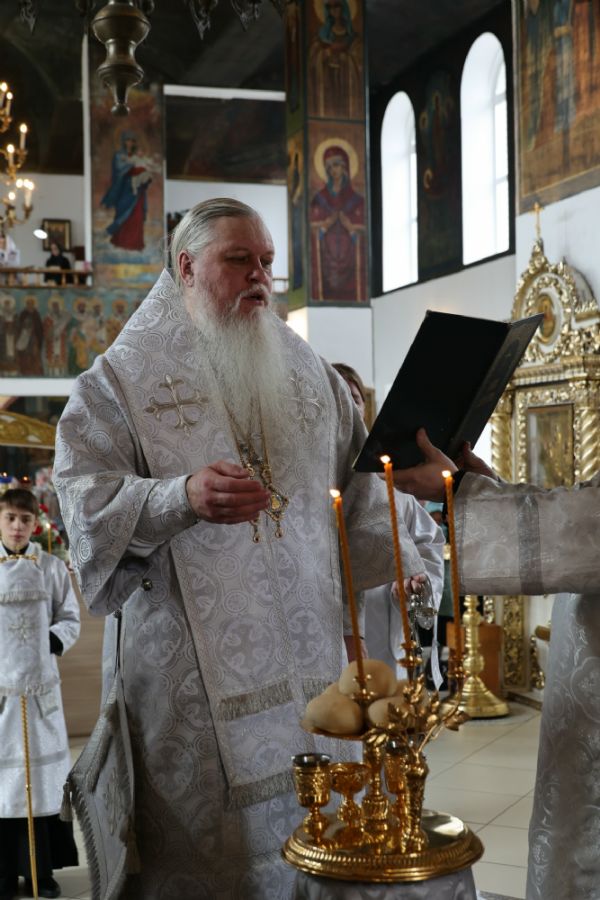 По отпусте Литургии епископ Феофан совершил освящение хлеба и вина. Далее владыка вознес молитву о мире на Святой Земле, совершаемую по традиции ежегодно в Великую Субботу во всех храмах Русской Православной Церкви, а также молитву на освящение сыра, яиц, брашна и мяса.