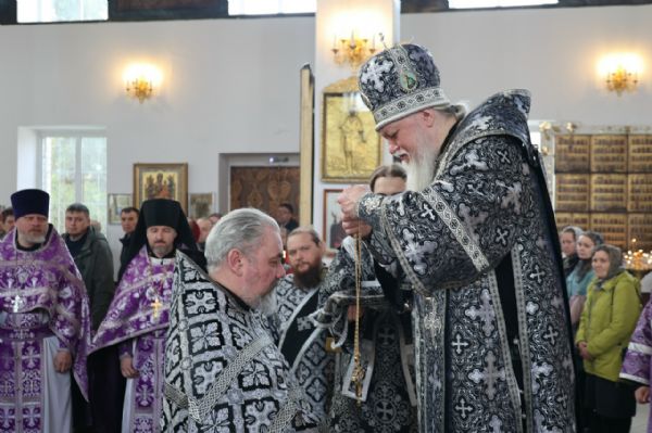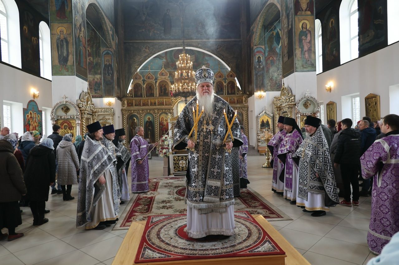 Правящему архиерею сослужили клирики кафедрального собора протоиерей Виталий Михеев, иерей Николай Аникин, иеромонах Авель (Крашенинников), иерей Иоанн Лапшинский, иерей Сергий Першаков, иеромонах Питирим (Мосякин), диакон Иоанн Захаров и диакон Александр Викторов. Таинство Исповеди совершали протоиерей Алексей Кузьмин и иерей Александр Усков. Песнопения исполнял народный хор под управлением Евгения Чигарова.