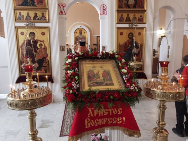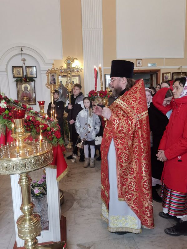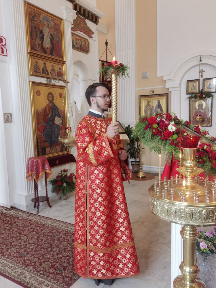 Пасхальную утреню и Божественную литургию совершил настоятель храма, директор гимназии протоиерей Евгений Сурков в сослужении духовника гимназии иерея Андрея Иванова и педагога гимназии диакона Никиты Суркова. Праздничные песнопения исполняли хор храма под управлением регента Аллы Симаковой и детский хор гимназии под руководством Анастасии Староверовой. Помимо постоянных прихожан, за богослужением молились учащиеся и педагоги православной гимназии им. Сергия Радонежского, почти все дети причастились Святых Христовых Таин.
