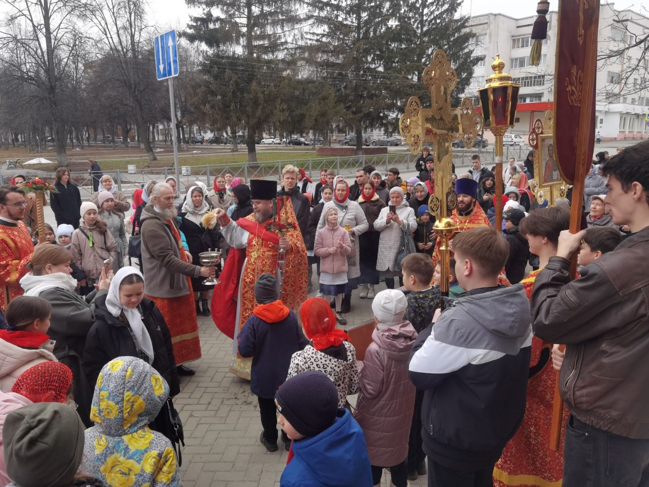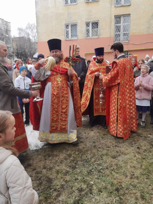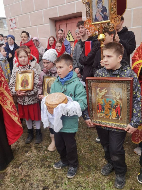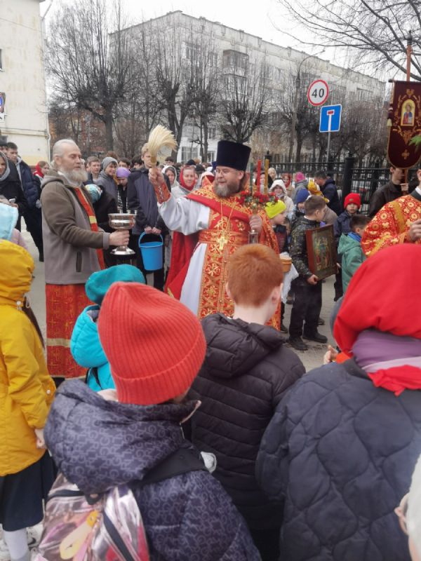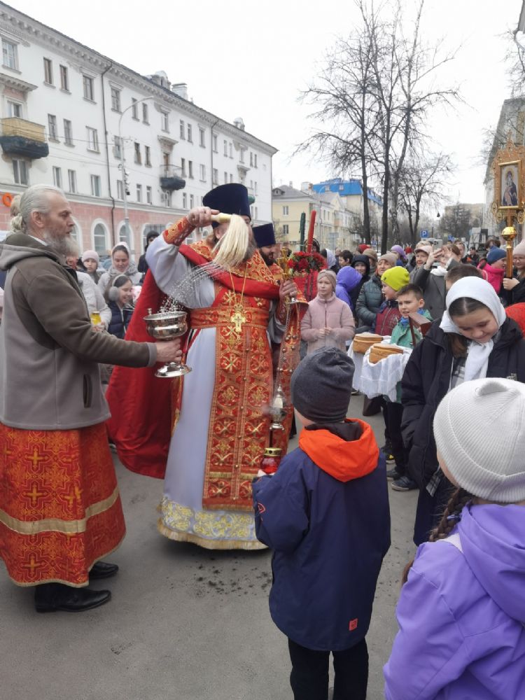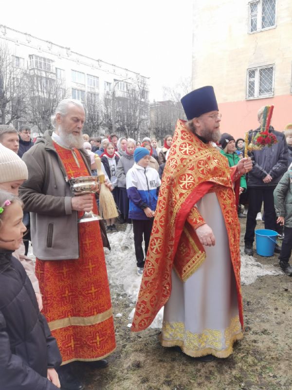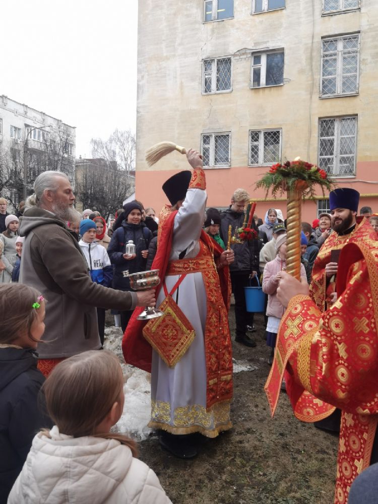 Вернувшись к стенам храма, отец Евгений прочитал отрывок из Евангелия о Воскресении Христа, осенил всех крестом и еще раз поздравил со светлым праздником, пожелав хранить пасхальную радость в сердцах весь год и щедро делиться ею с другими.