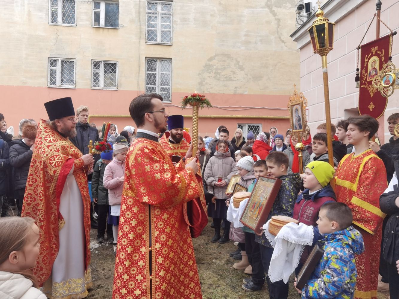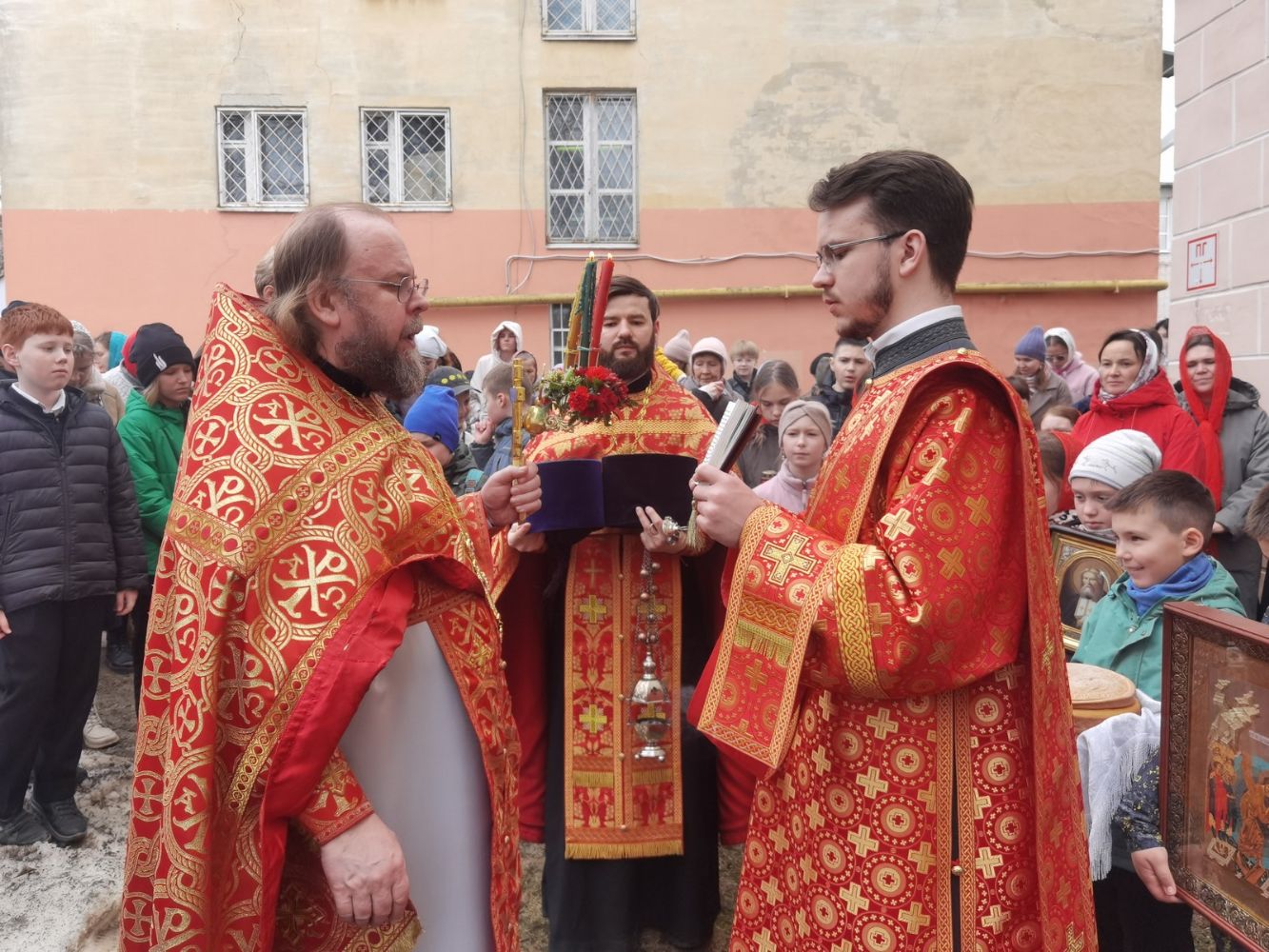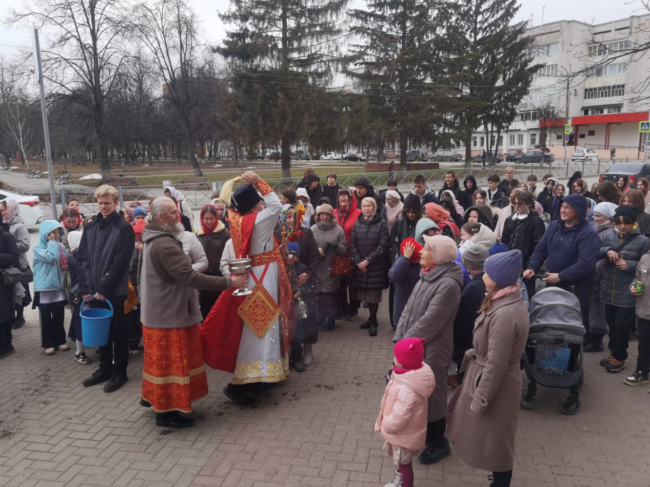 Вернувшись к стенам храма, отец Евгений прочитал отрывок из Евангелия о Воскресении Христа, осенил всех крестом и еще раз поздравил со светлым праздником, пожелав хранить пасхальную радость в сердцах весь год и щедро делиться ею с другими.