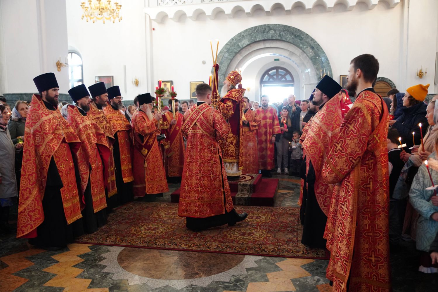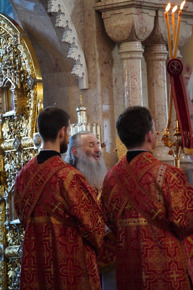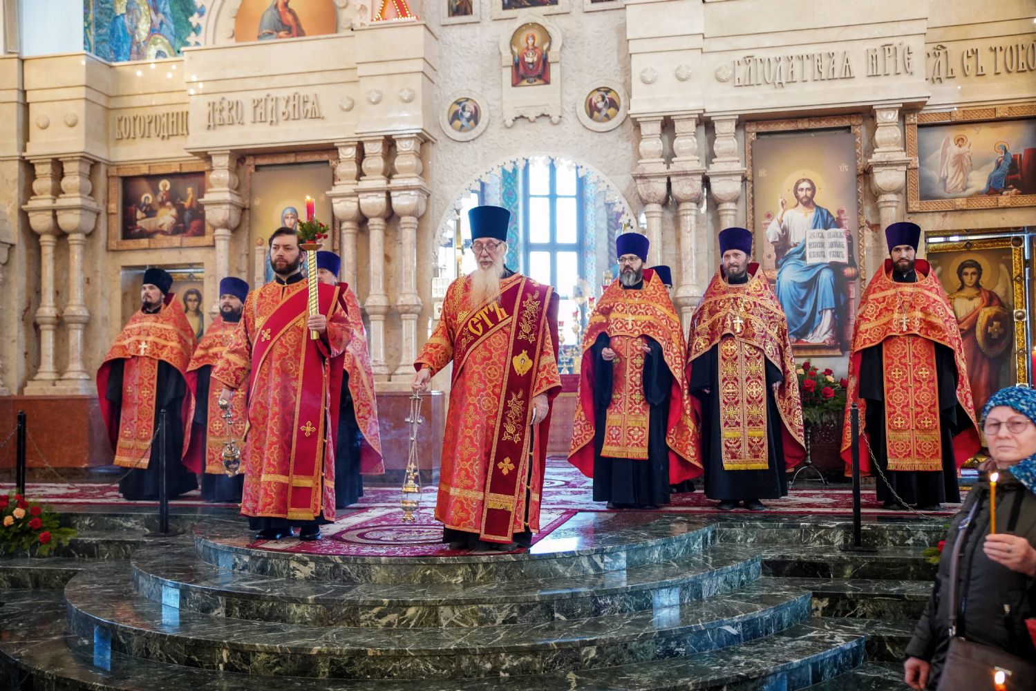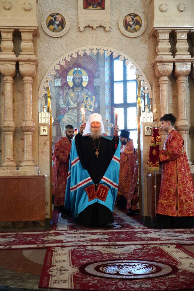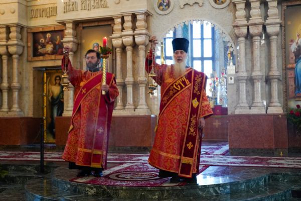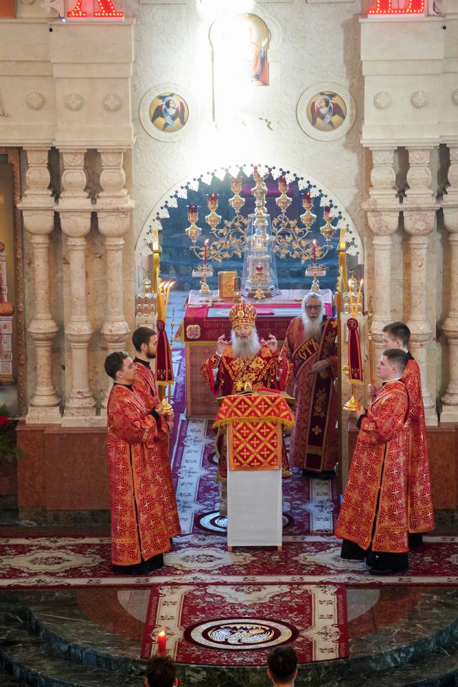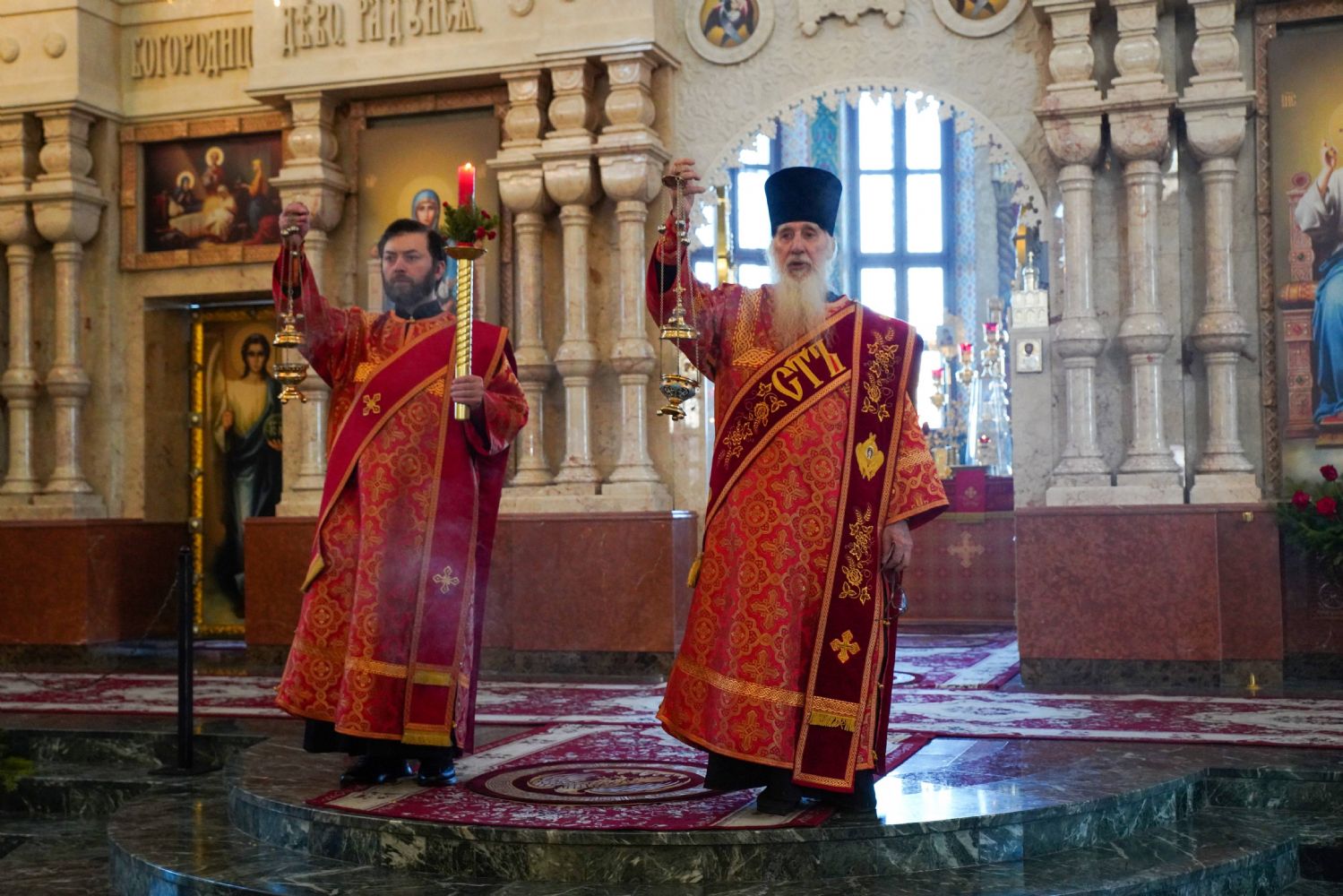 Архипастырю сослужили ключарь кафедрального собора протоиерей Сергий Поглазов, клирики собора, а также настоятель Покровского храма с. Марисола протоиерей Сергий Сильдушкин и протодиакон Михаил Козловский. Песнопения исполнял детско-юношеский хор «Благовест» под управлением Татьяны Черновой.