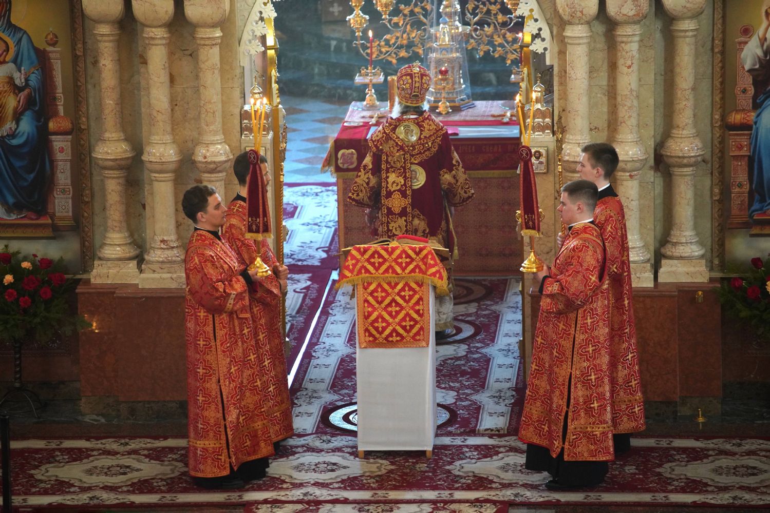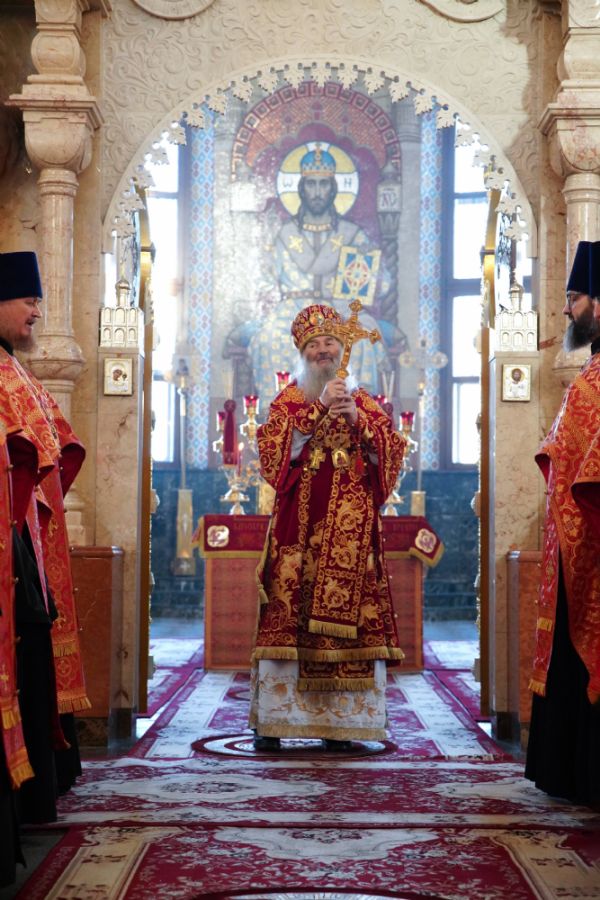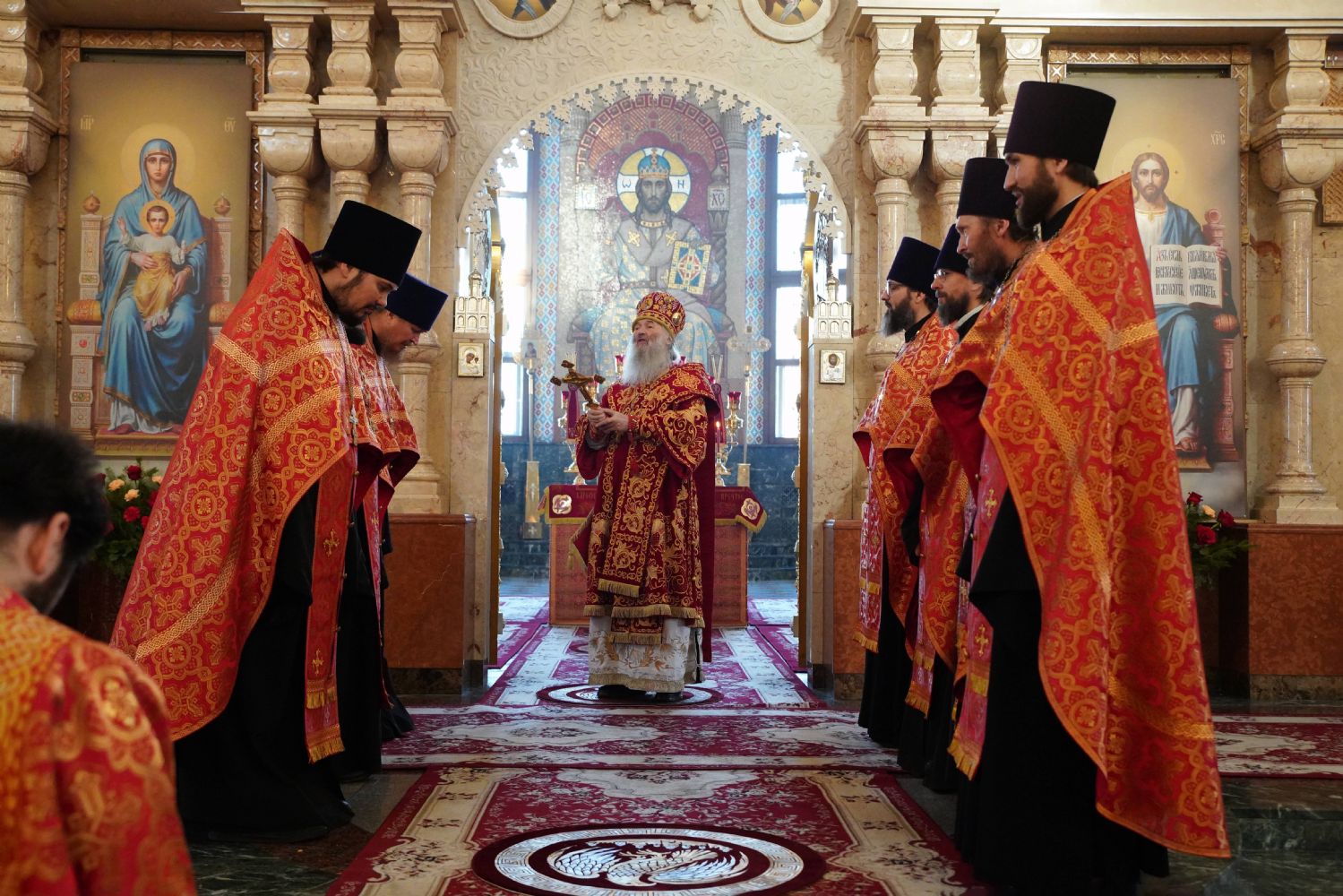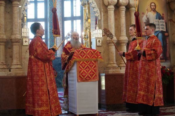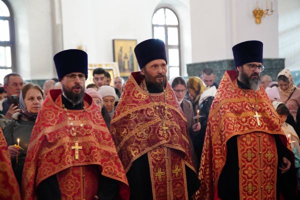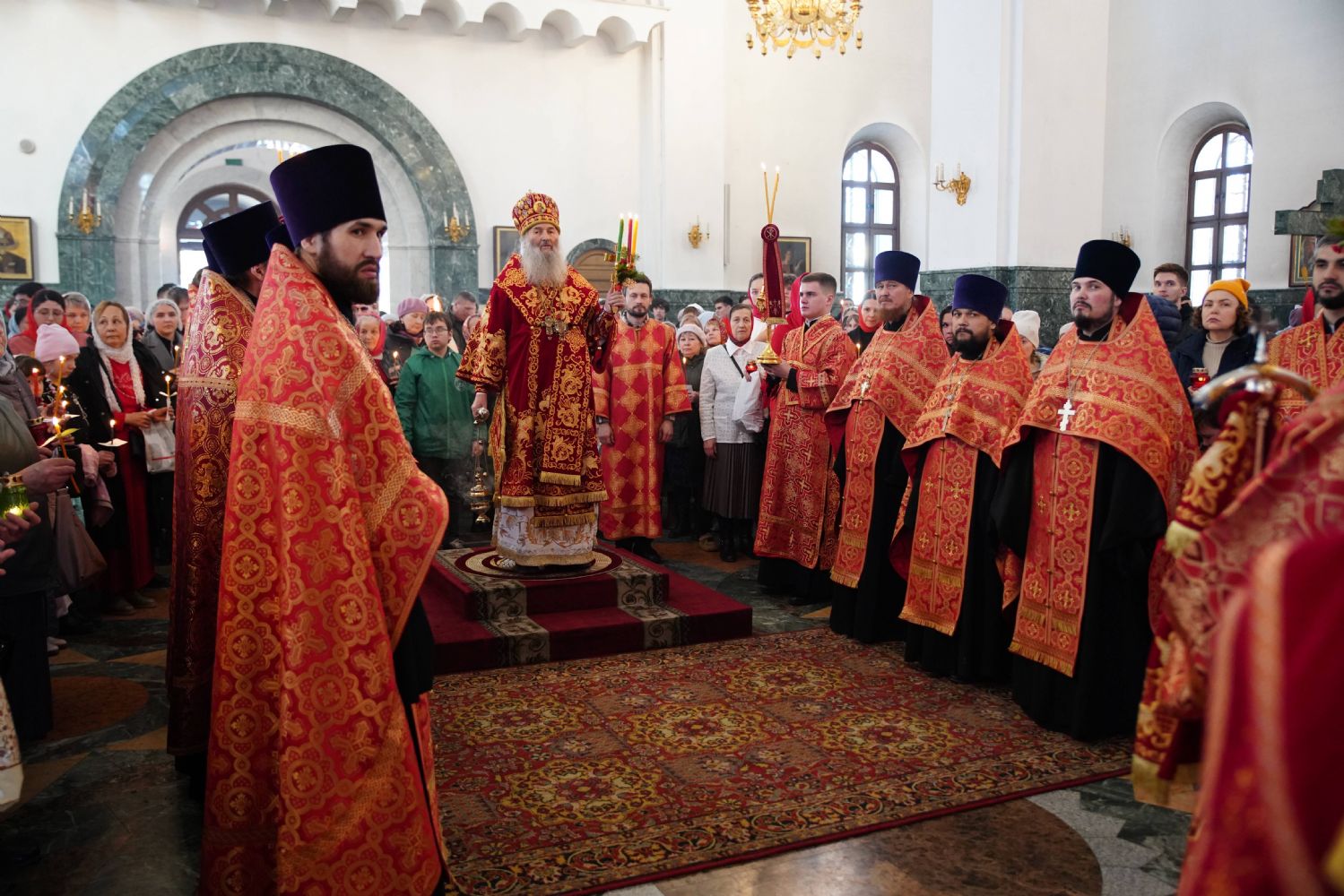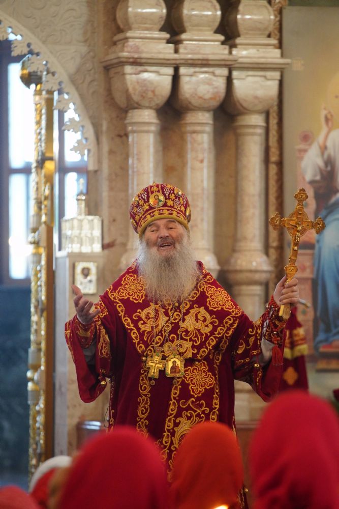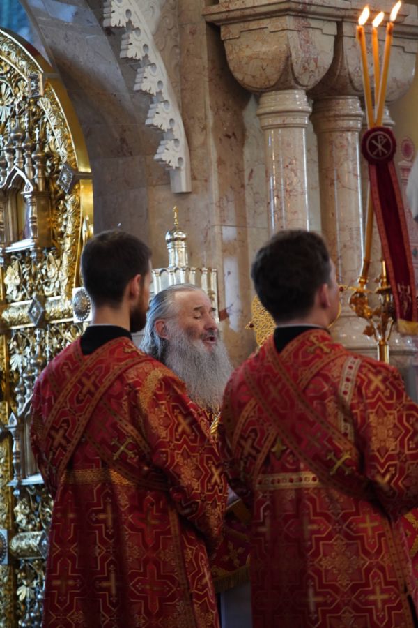 Архипастырю сослужили ключарь кафедрального собора протоиерей Сергий Поглазов, клирики собора, а также настоятель Покровского храма с. Марисола протоиерей Сергий Сильдушкин и протодиакон Михаил Козловский. Песнопения исполнял детско-юношеский хор «Благовест» под управлением Татьяны Черновой.