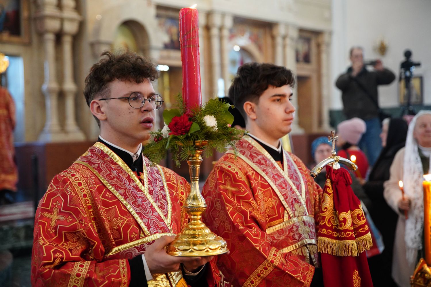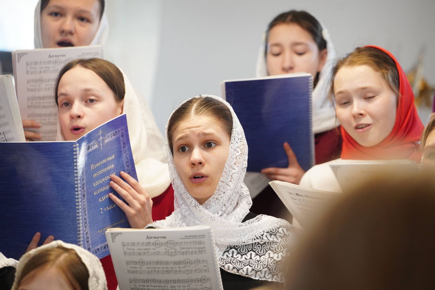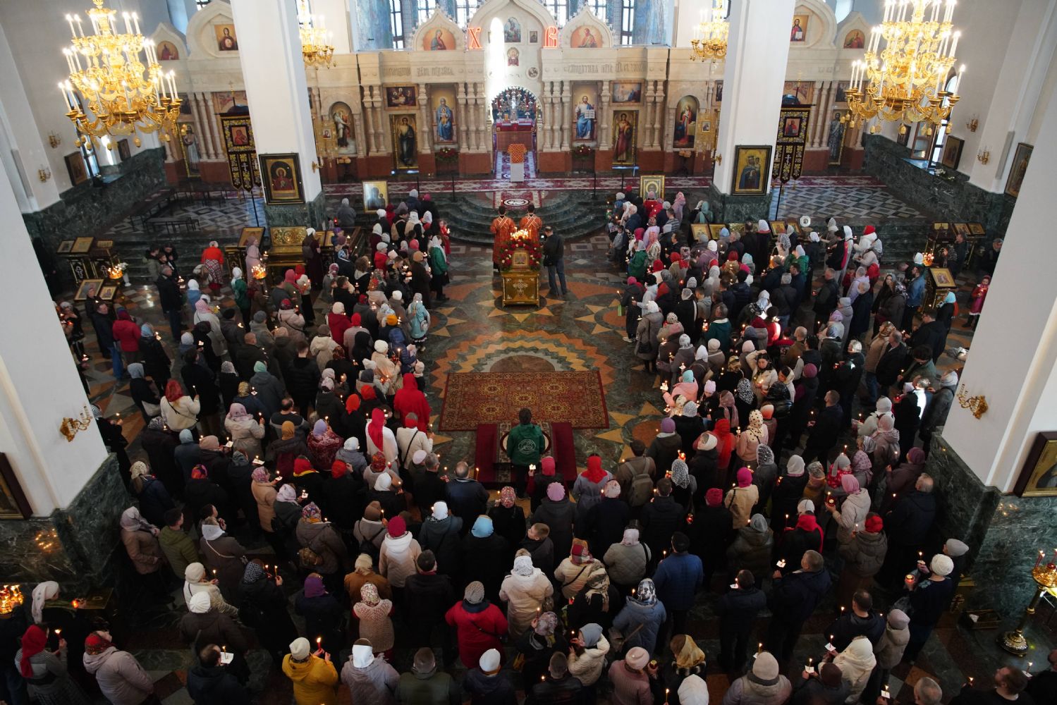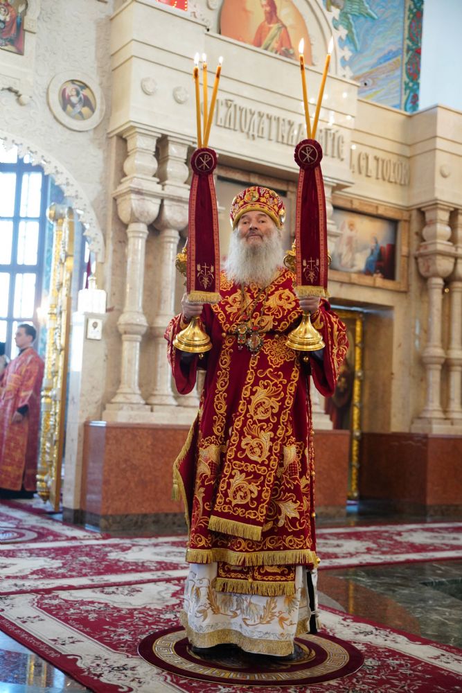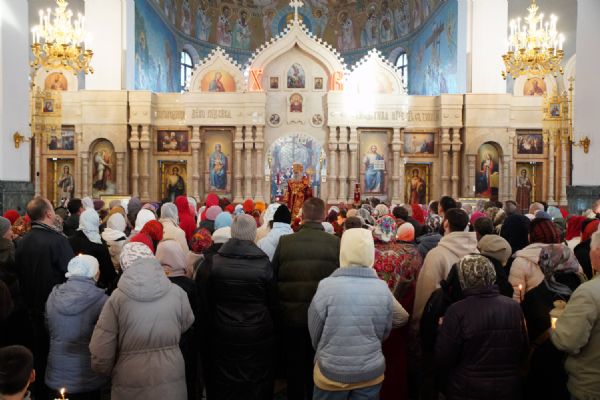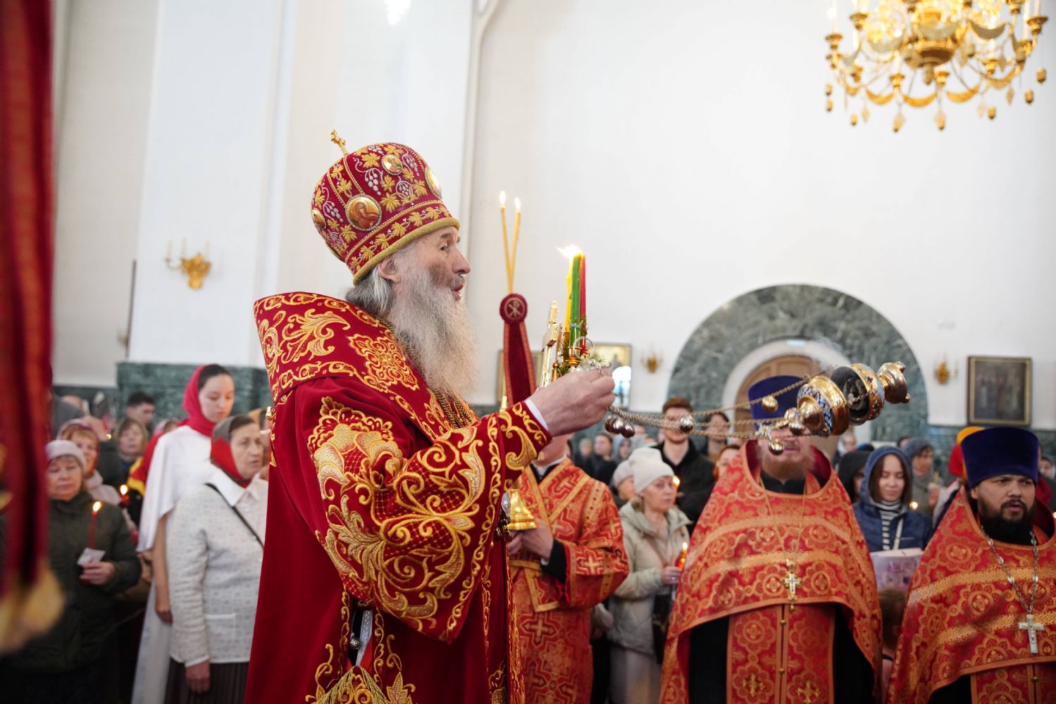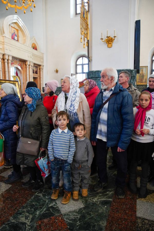 Архипастырю сослужили ключарь кафедрального собора протоиерей Сергий Поглазов, клирики собора, а также настоятель Покровского храма с. Марисола протоиерей Сергий Сильдушкин и протодиакон Михаил Козловский. Песнопения исполнял детско-юношеский хор «Благовест» под управлением Татьяны Черновой.