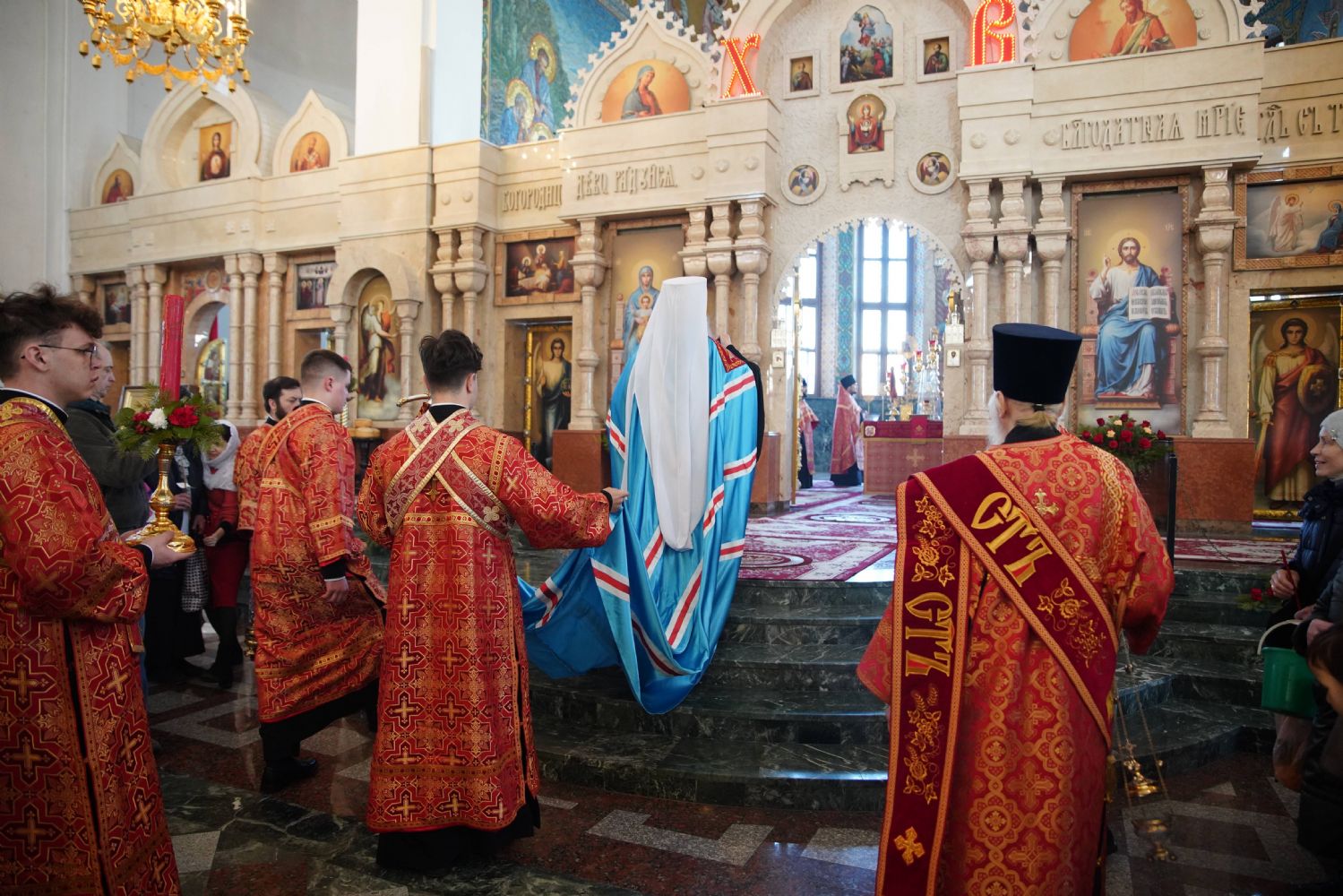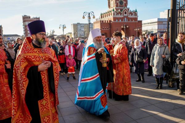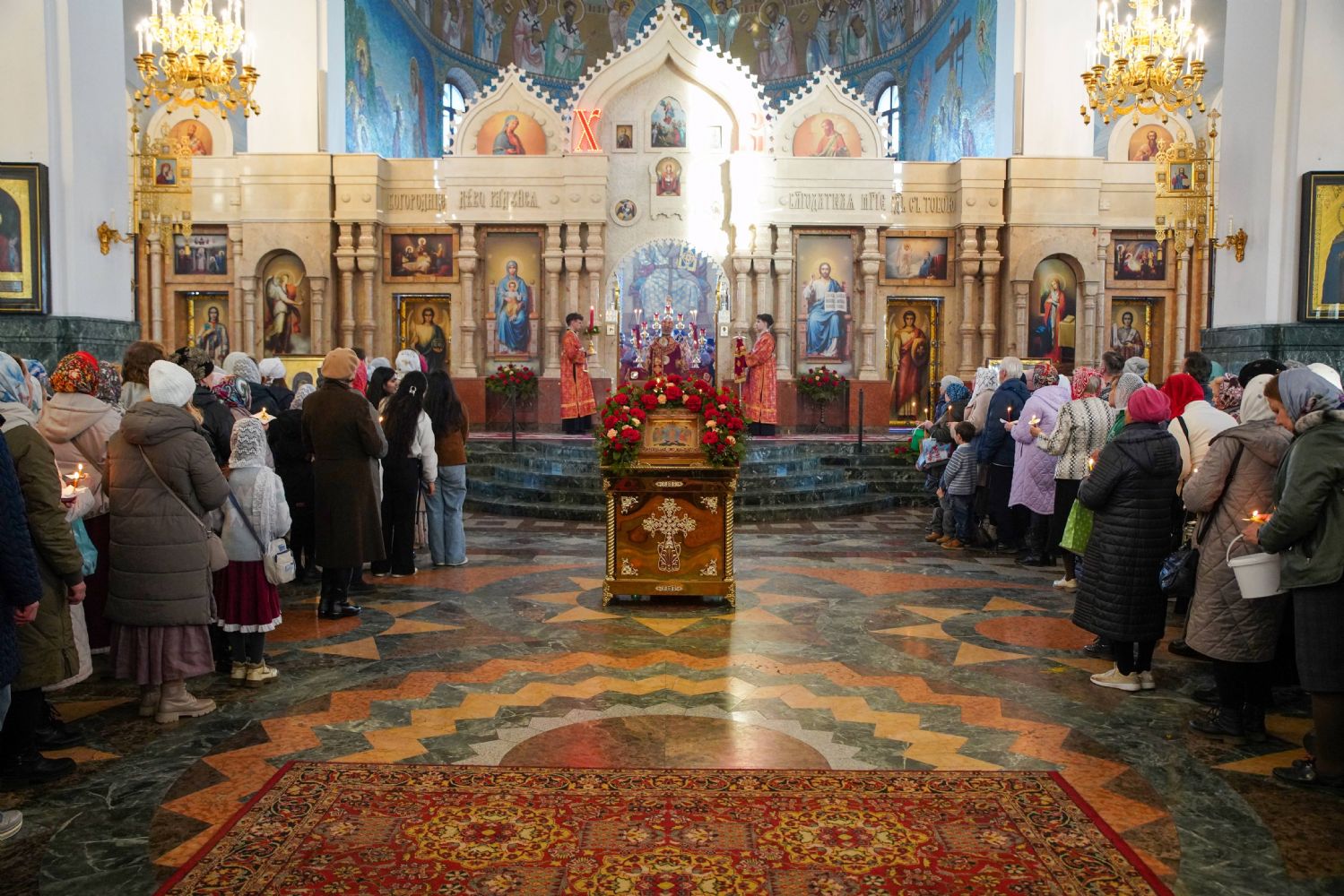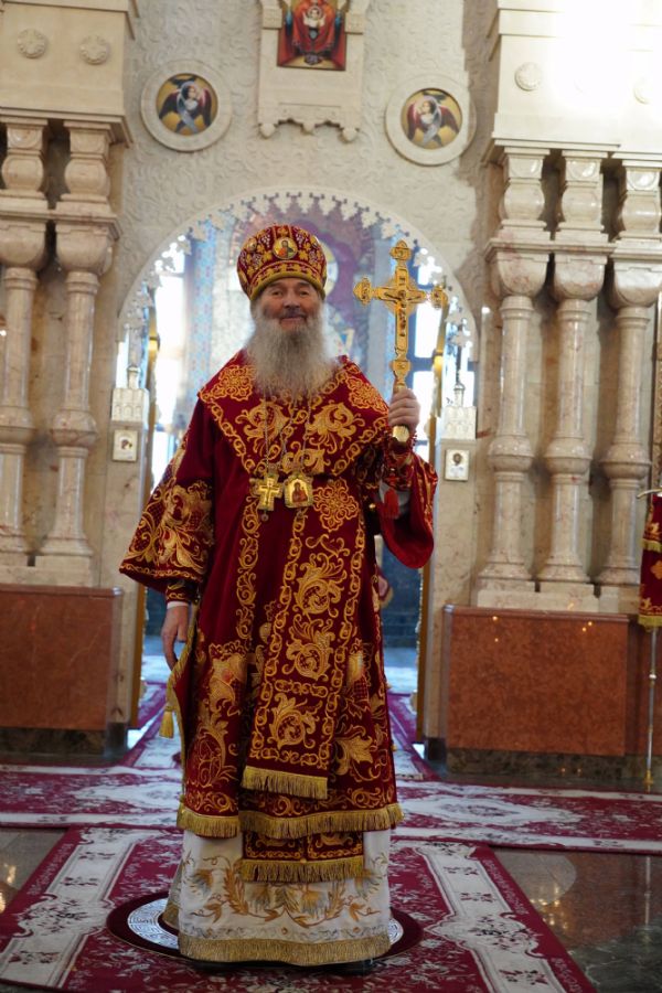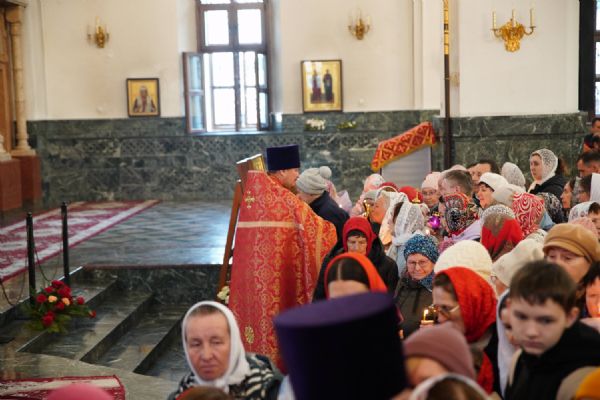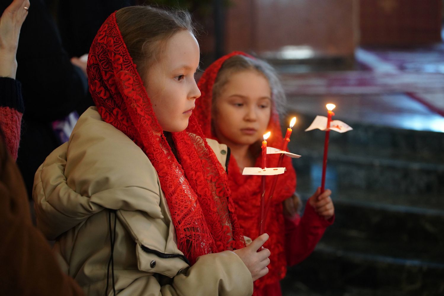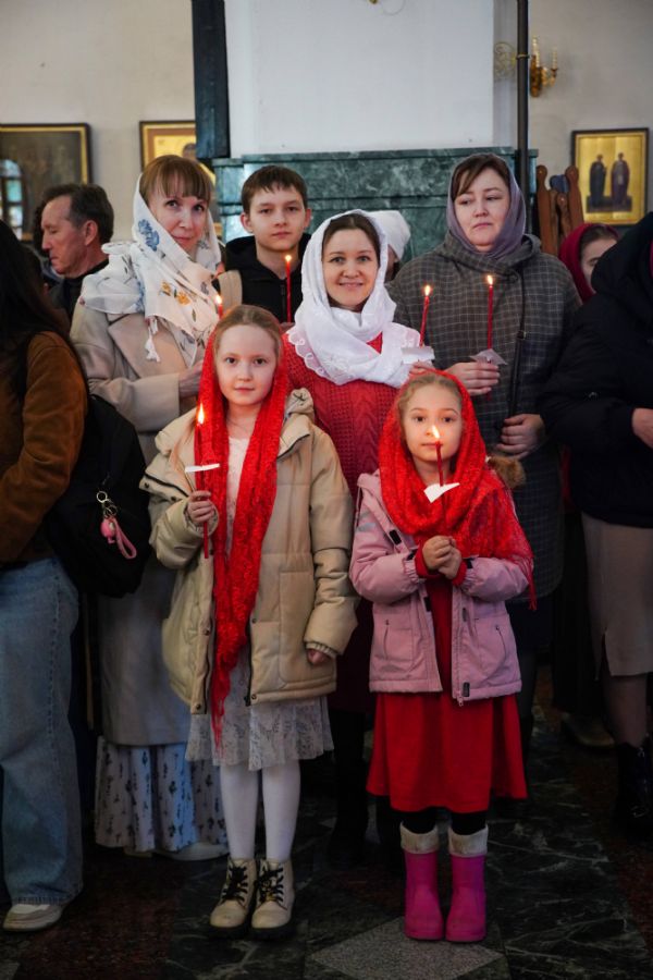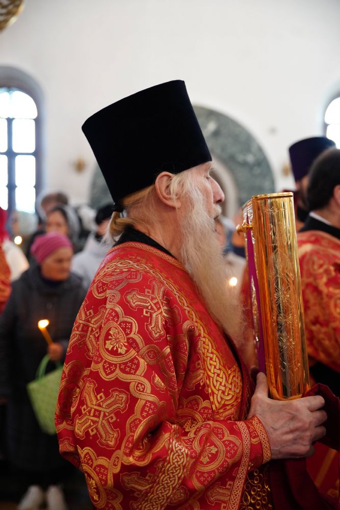 Архипастырю сослужили ключарь кафедрального собора протоиерей Сергий Поглазов, клирики собора, а также настоятель Покровского храма с. Марисола протоиерей Сергий Сильдушкин и протодиакон Михаил Козловский. Песнопения исполнял детско-юношеский хор «Благовест» под управлением Татьяны Черновой.