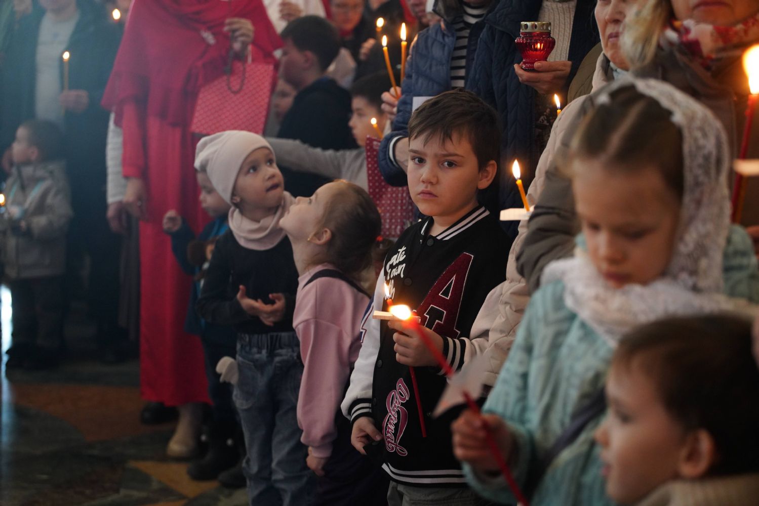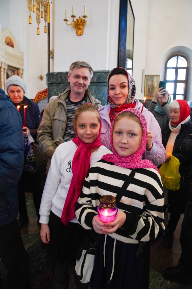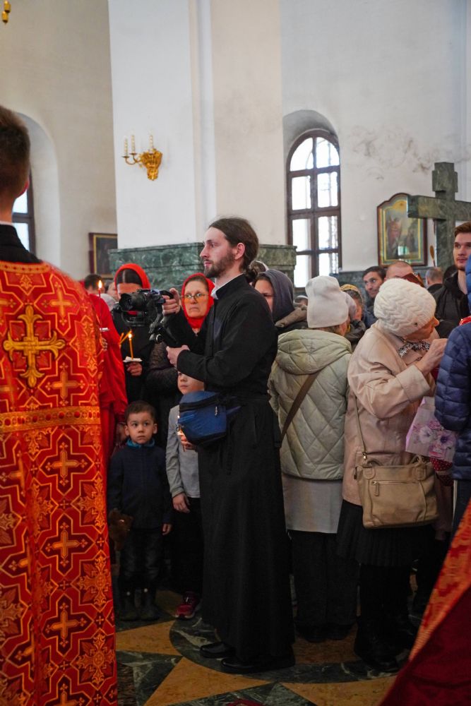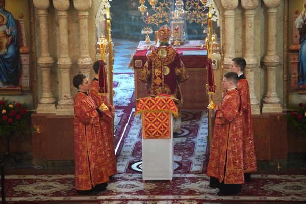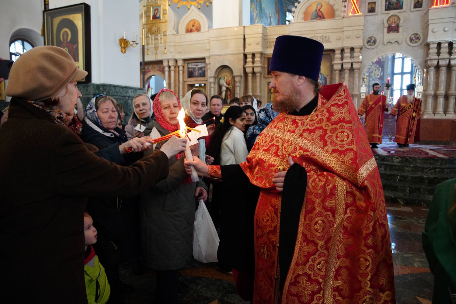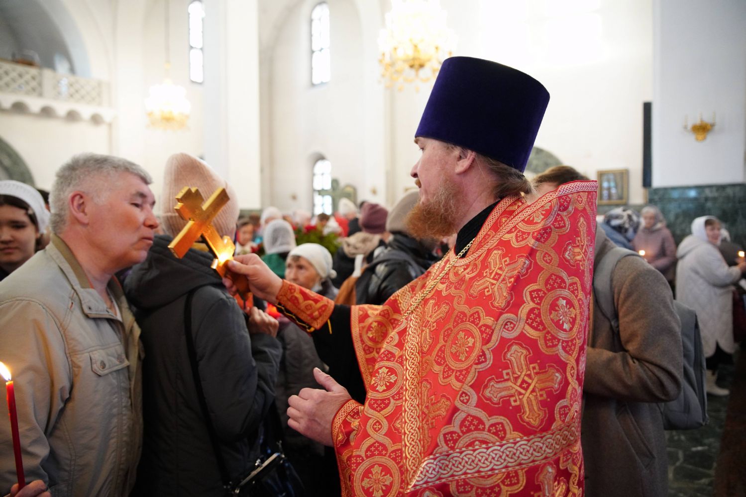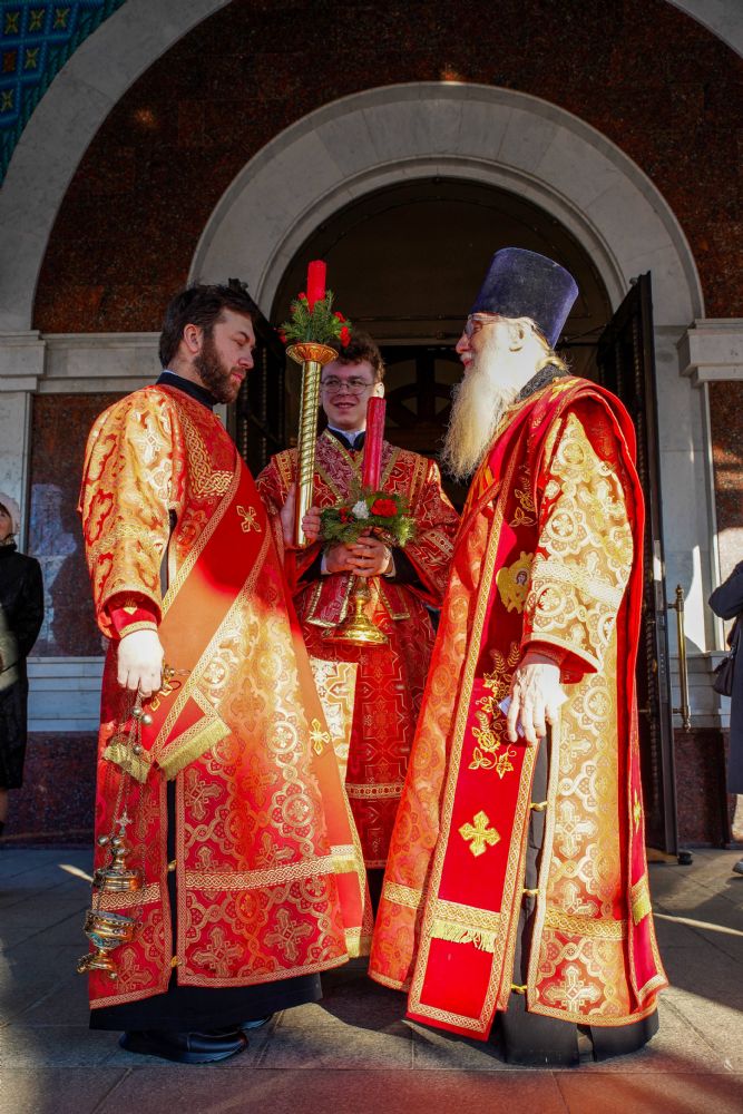 Архипастырю сослужили ключарь кафедрального собора протоиерей Сергий Поглазов, клирики собора, а также настоятель Покровского храма с. Марисола протоиерей Сергий Сильдушкин и протодиакон Михаил Козловский. Песнопения исполнял детско-юношеский хор «Благовест» под управлением Татьяны Черновой.