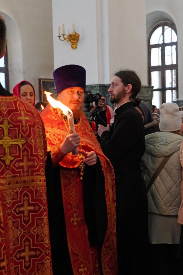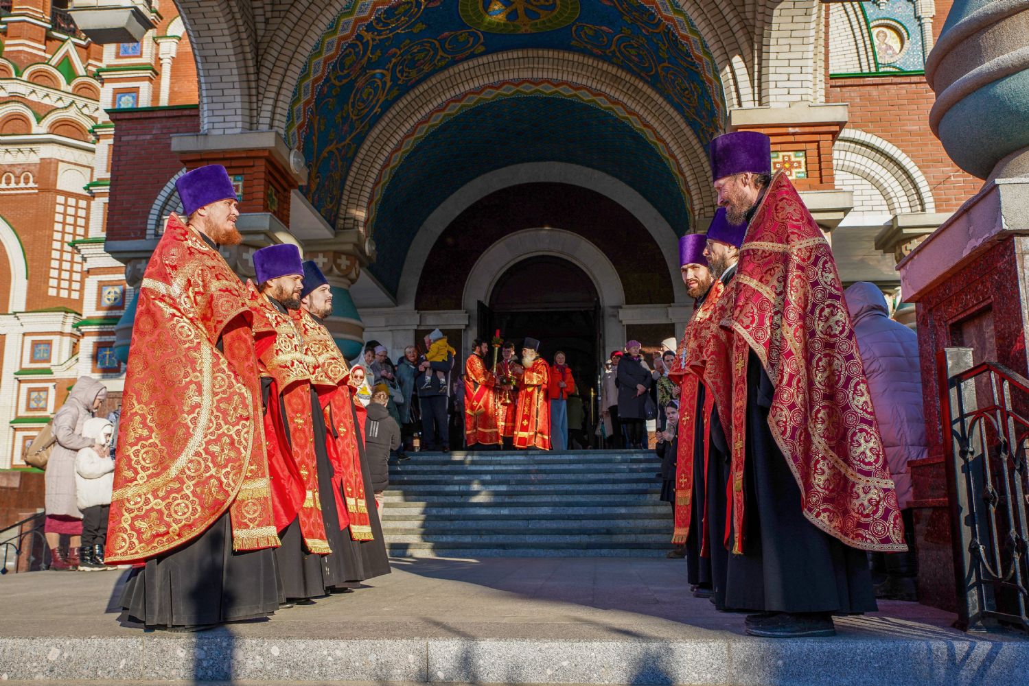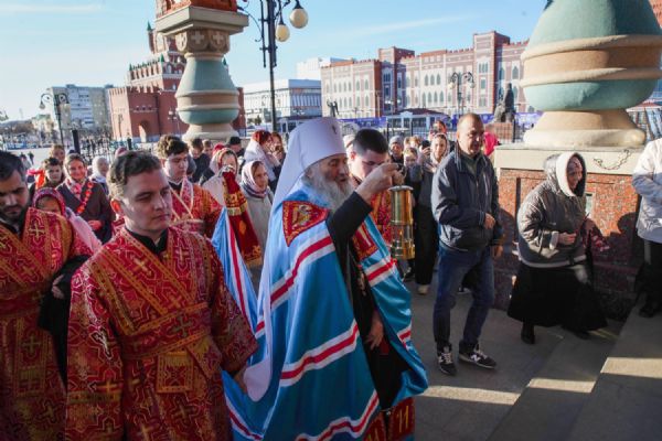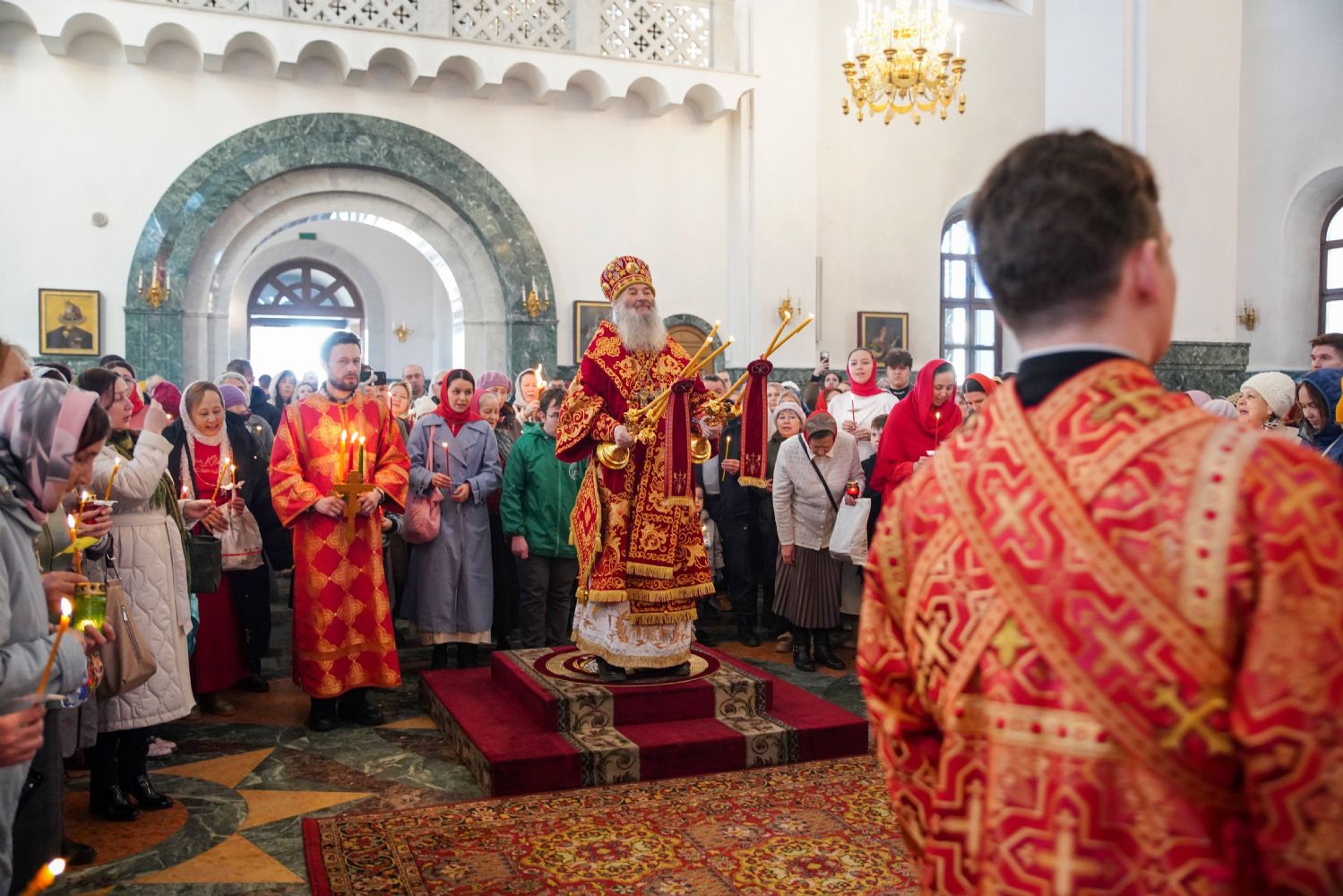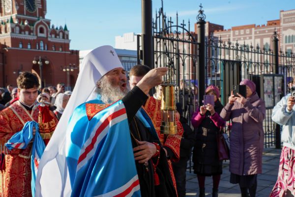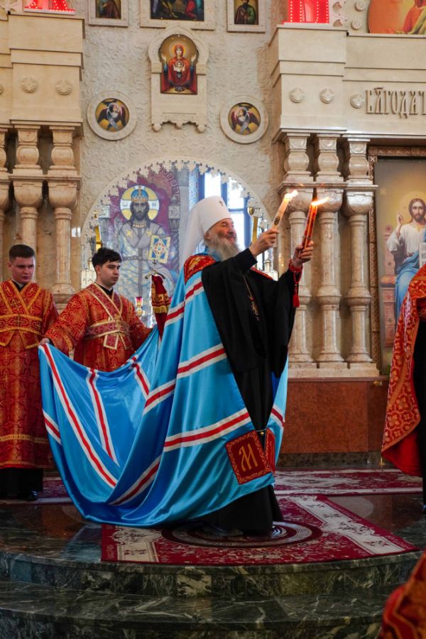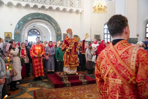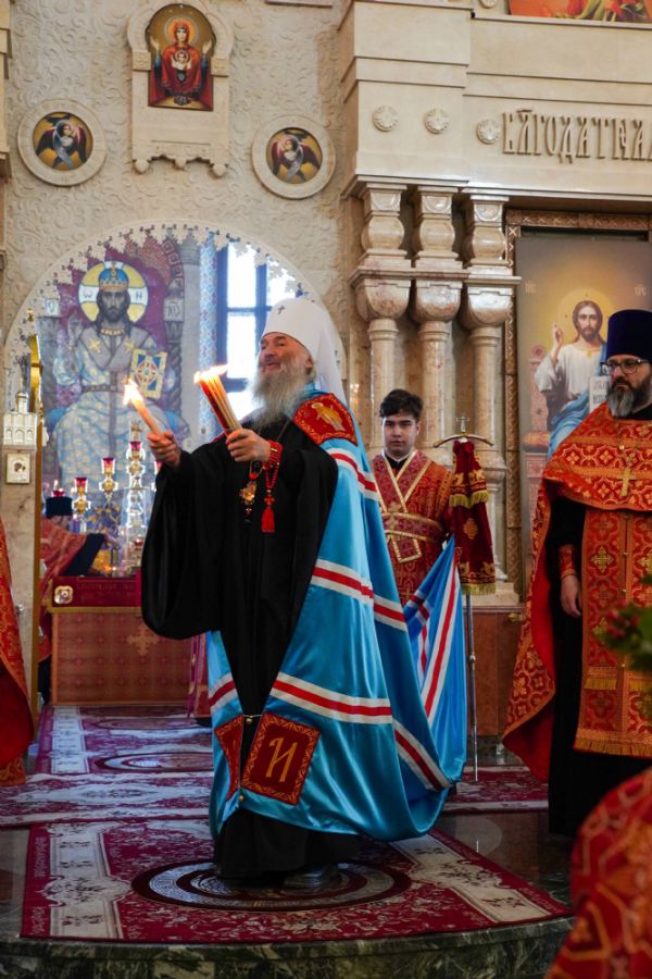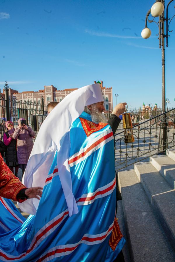 12 апреля, в праздник Светлого Христова Воскресения, митрополит Йошкар-Олинский и Марийский Иоанн совершил Пасхальную вечерню в Благовещенском кафедральном соборе.