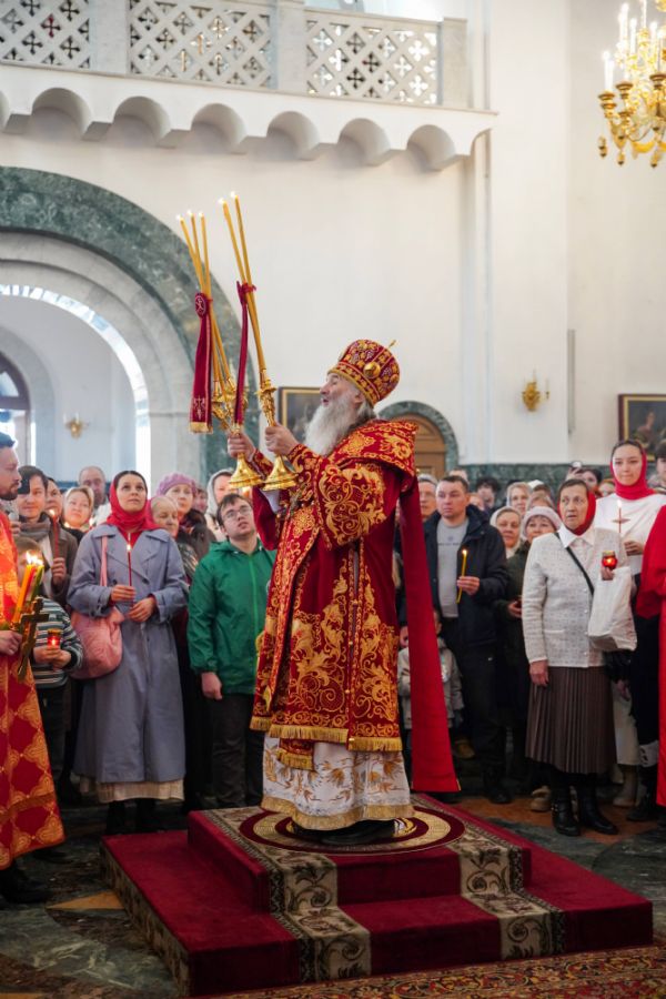 После богослужения митрополит Иоанн обратился к верующим с архипастырским словом, напомнив обстоятельства схождения Благодатного огня на Гробе Господнем в Иерусалиме и подчеркнув, что этим чудом милостивый и любвеобильный Господь укрепляет всех нас в вере, еще и еще раз уверяя нас в истинности Своего светоносного Воскресения и наполняя наши сердца миром и радостью.