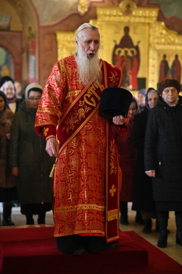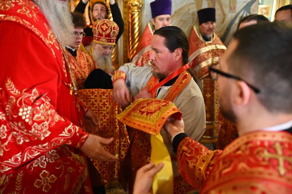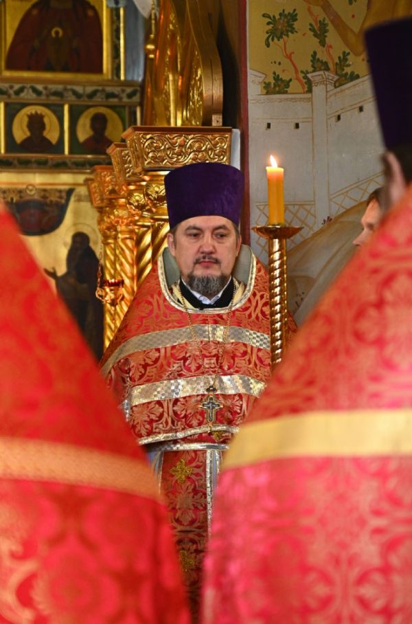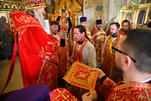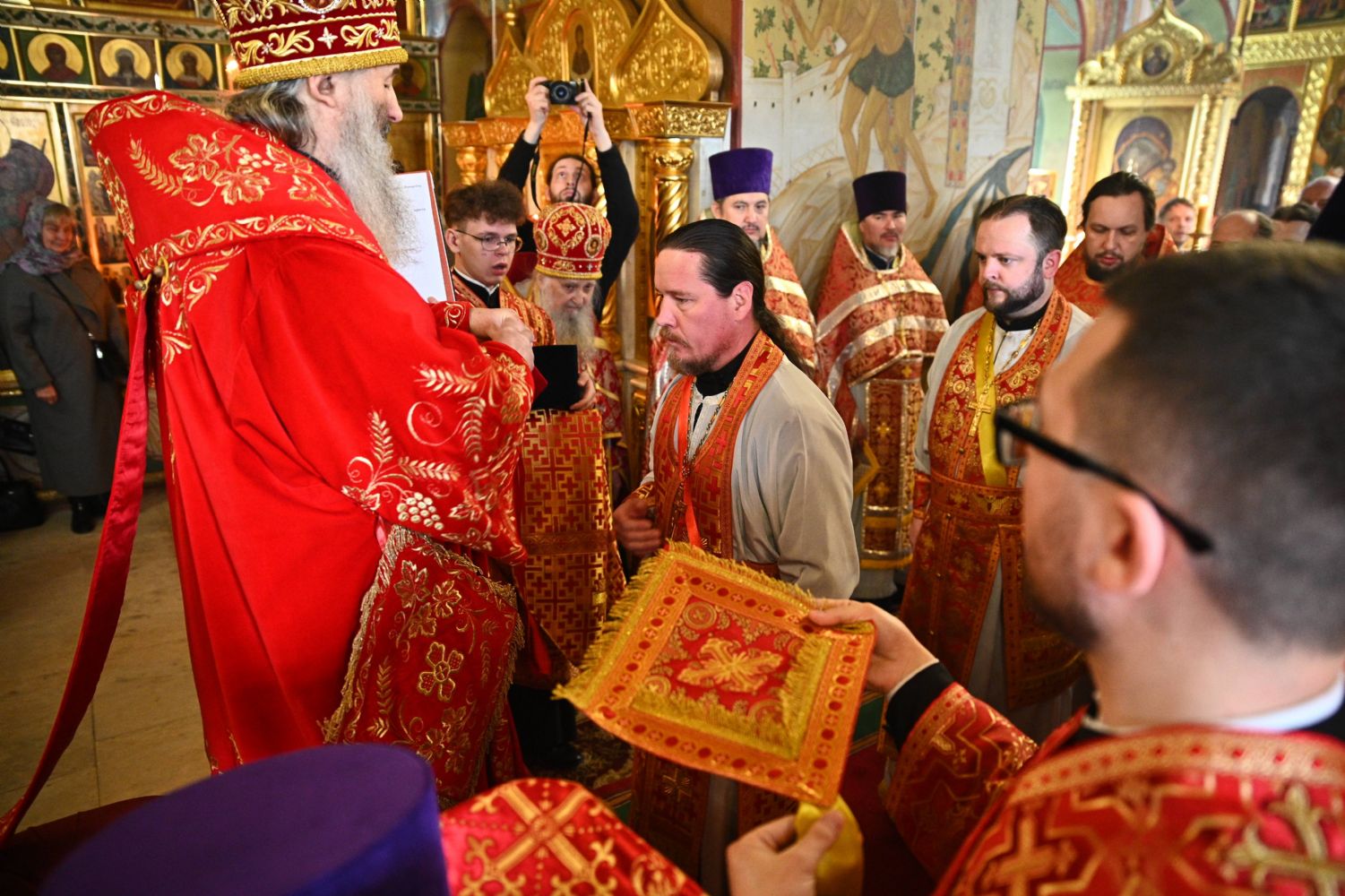 На малом входе митрополит Иоанн вручил богослужебно-иерархические награды: клирик храма Рождества Пресвятой Богородицы с. Семеновка иерей Димитрий Иванов и клирик Серафимовского храма г. Йошкар-Олы иерей Виктор Умрихин удостоены права ношения палицы; клирик храма иконы «Всех скорбящих Радость» г. Йошкар-Олы иерей Игорь Коваль и настоятель Сретенского храма с. Русский Кадам иерей Владимир Каплунов – права ношения наперсного креста золотого цвета; клирик Воскресенского собора Йошкар-Олы иерей Димитрий Лукьянов и клирик Никольского храма г. Звенигово иерей Александр Сергунин – права ношения камилавки; клирик Серафимовского храма Йошкар-Олы диакон Алексей Ершов – права ношения двойного ораря.