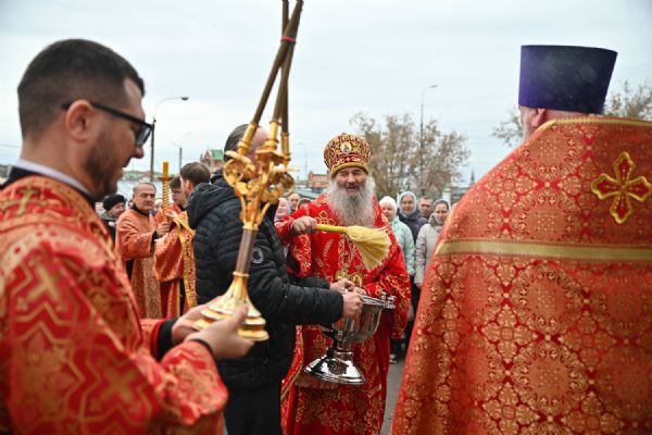 По окончании Литургии прошел пасхальный крестный ход вокруг храма с чтением Евангелия и кроплением святой водой.