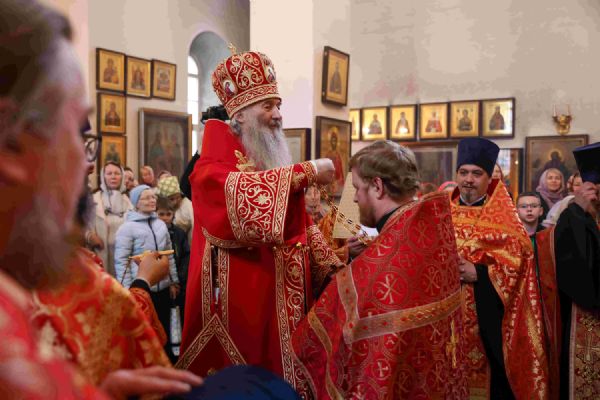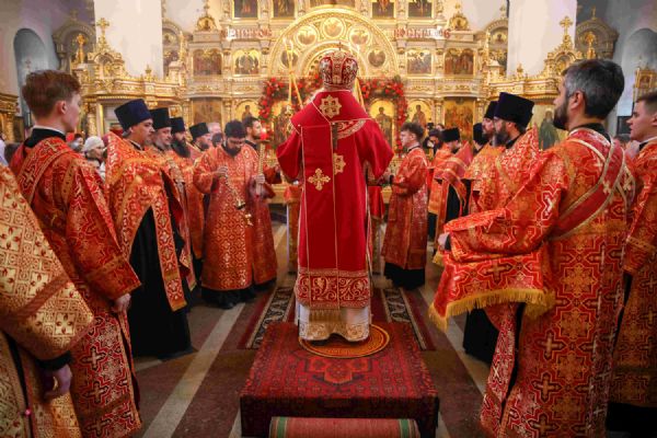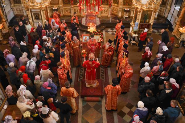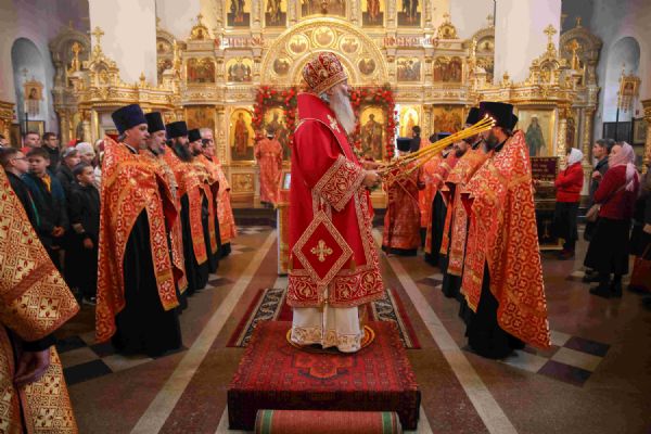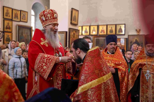 После богослужения архипастырь обратился к собравшимся с проповедью.
