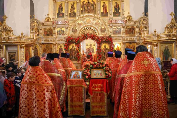 Митрополит Иоанн возглавил пасхальную вечерню в храме Рождества Христова 135