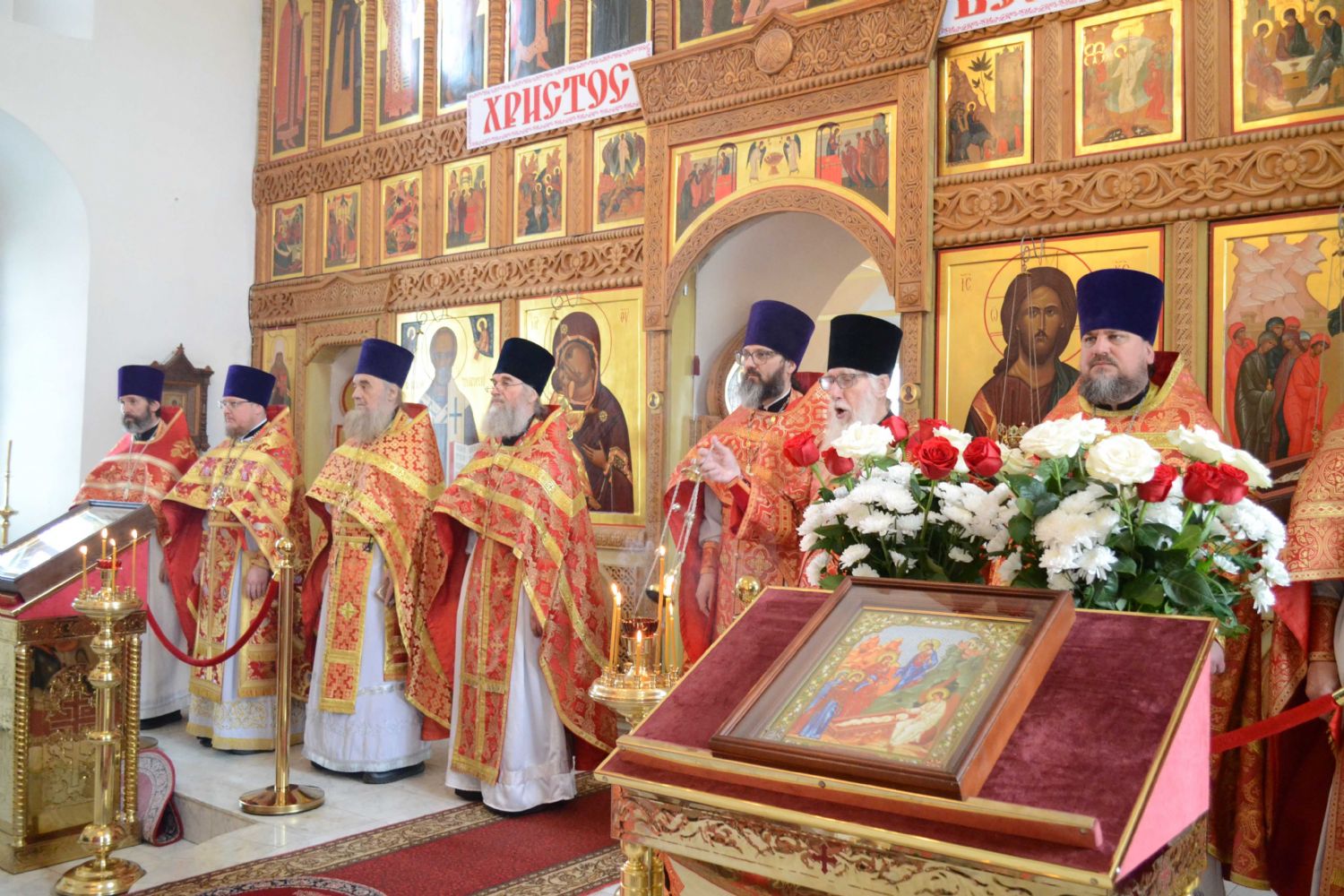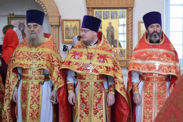 Архипастырю сослужили секретарь Йошкар-Олинского епархиального управления иерей Димитрий Дьяков, клирик монастыря иерей Михаил Лежнин и духовенство храмов епархии, а также гость из Ярославской епархии протоиерей Алексий Кириллов. Песнопения исполнял архиерейский хор «Благовест» под управлением регента Татьяны Черновой.