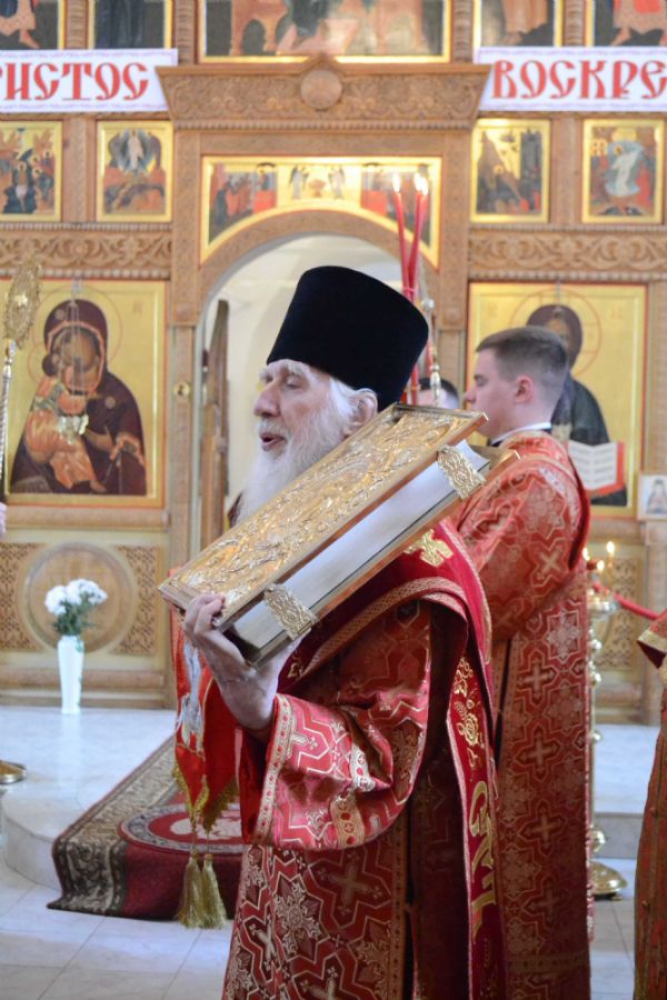 «Христос Воскресе! Велика милость Воскресшего к каждому из нас! Он всех нас сподобляет быть участниками этой великой духовной радости, когда мы, приходя в храм Божий, духовными очами лицезреем Воскресшего Христа, Который являлся апостолам и ближайшим ученикам Своим, научая их жизни новой, вечной.