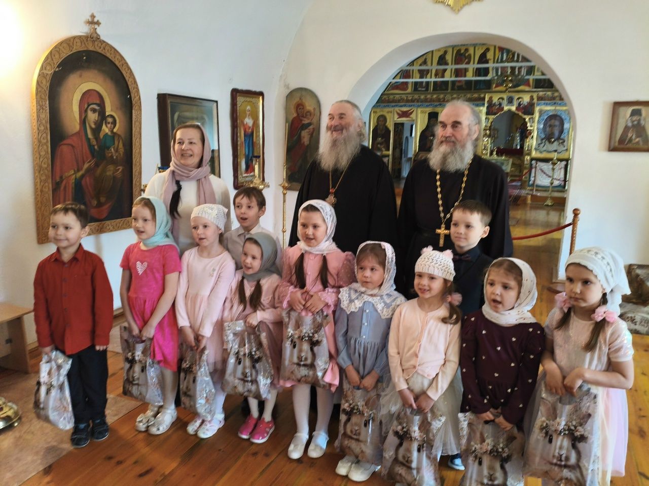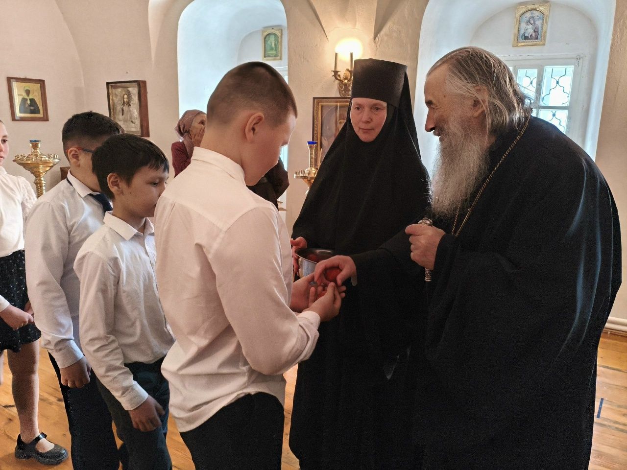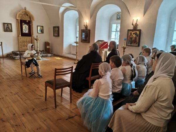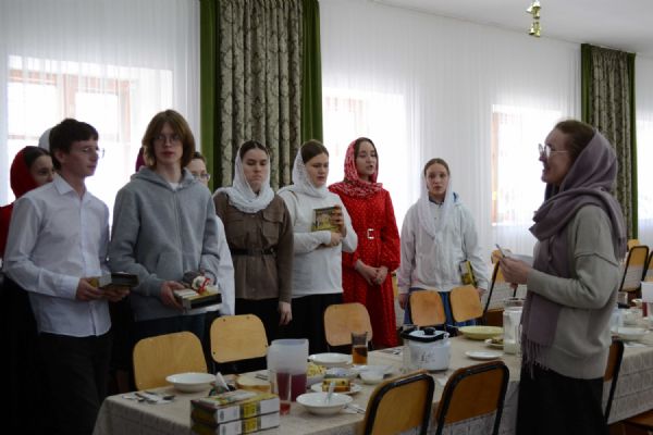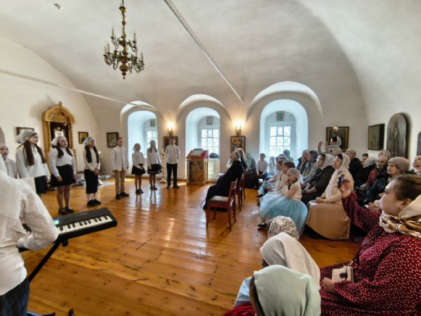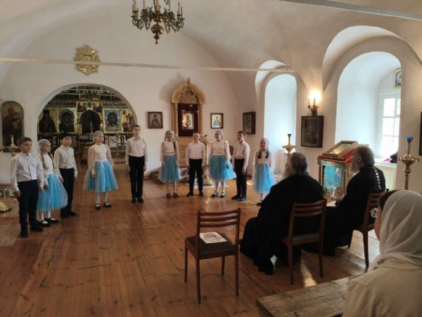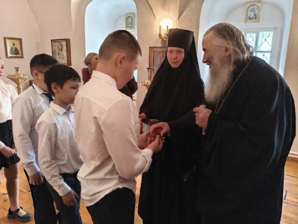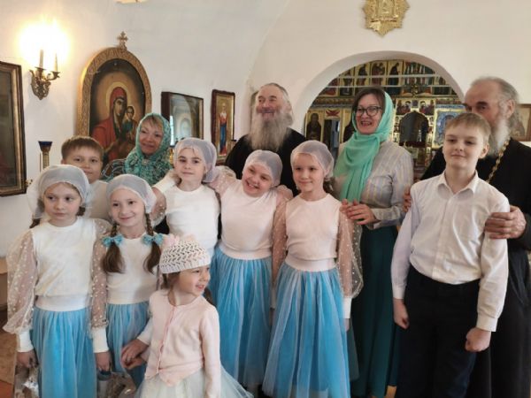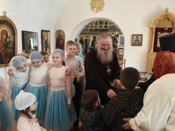 После трапезы митрополит Иоанн поздравил игумению Варнаву и насельниц обители с праздником Пасхи и вручил сладкие подарки. В завершение перед собравшимися с пасхальным концертом выступили воспитанники монастырской воскресной школы, а владыка одарил детей сладостями.