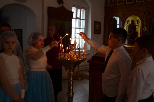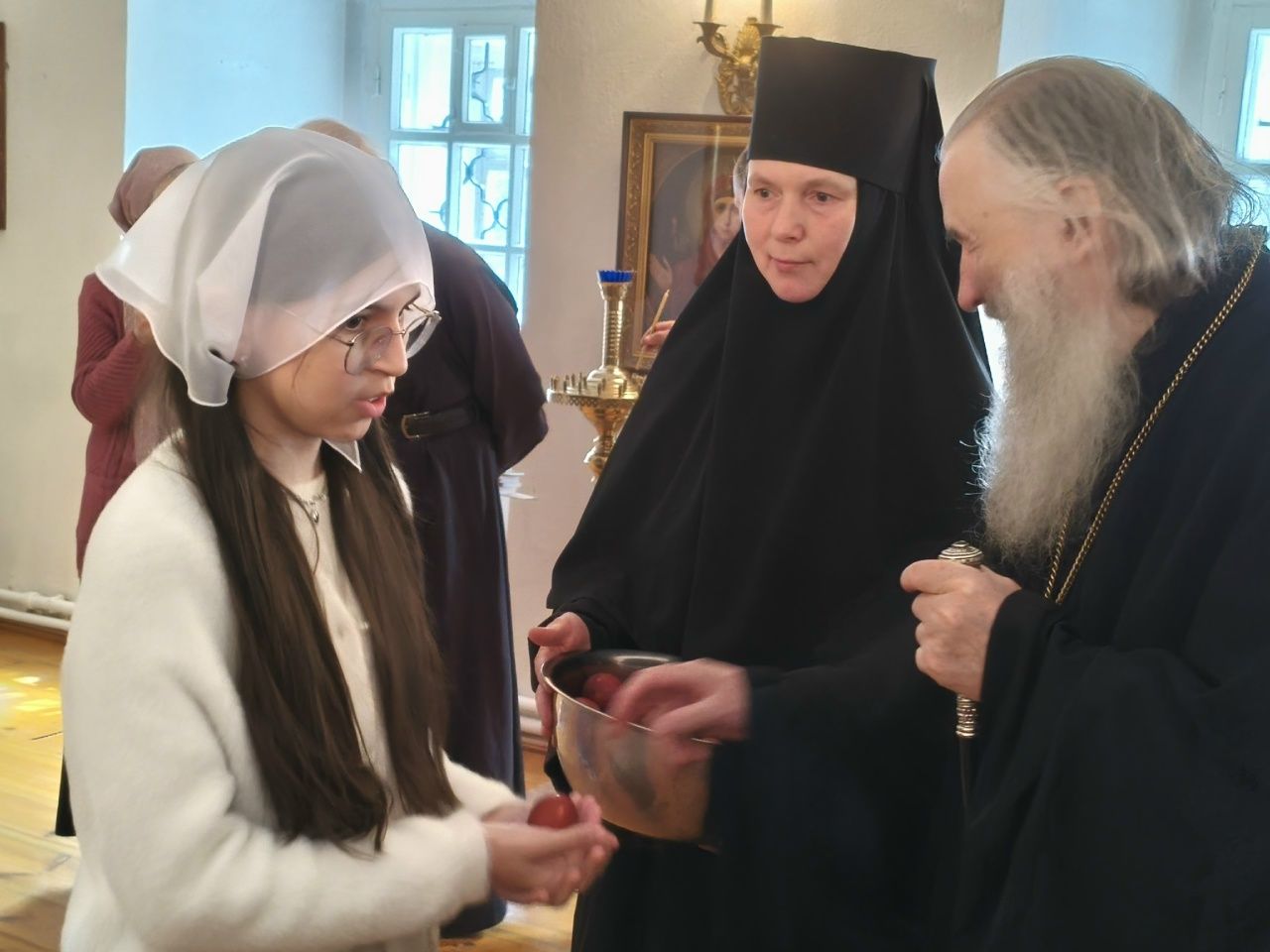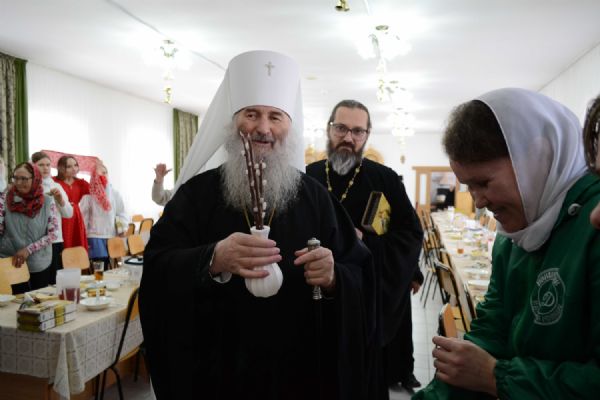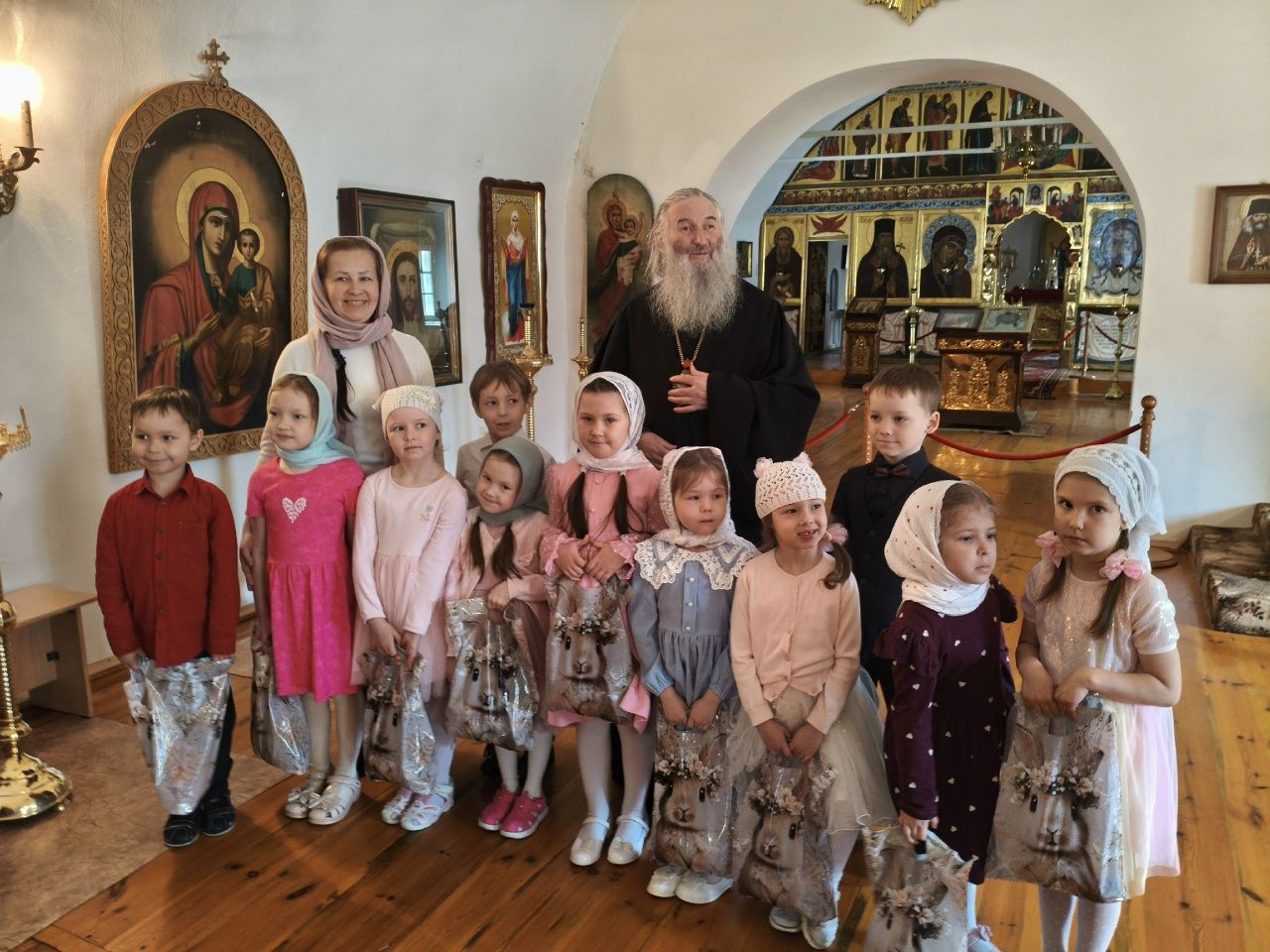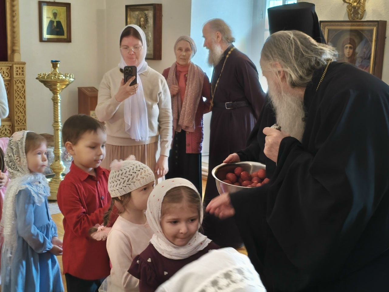 После трапезы митрополит Иоанн поздравил игумению Варнаву и насельниц обители с праздником Пасхи и вручил сладкие подарки. В завершение перед собравшимися с пасхальным концертом выступили воспитанники монастырской воскресной школы, а владыка одарил детей сладостями.