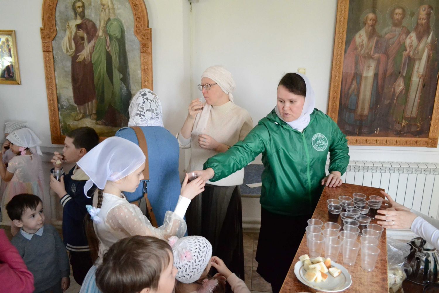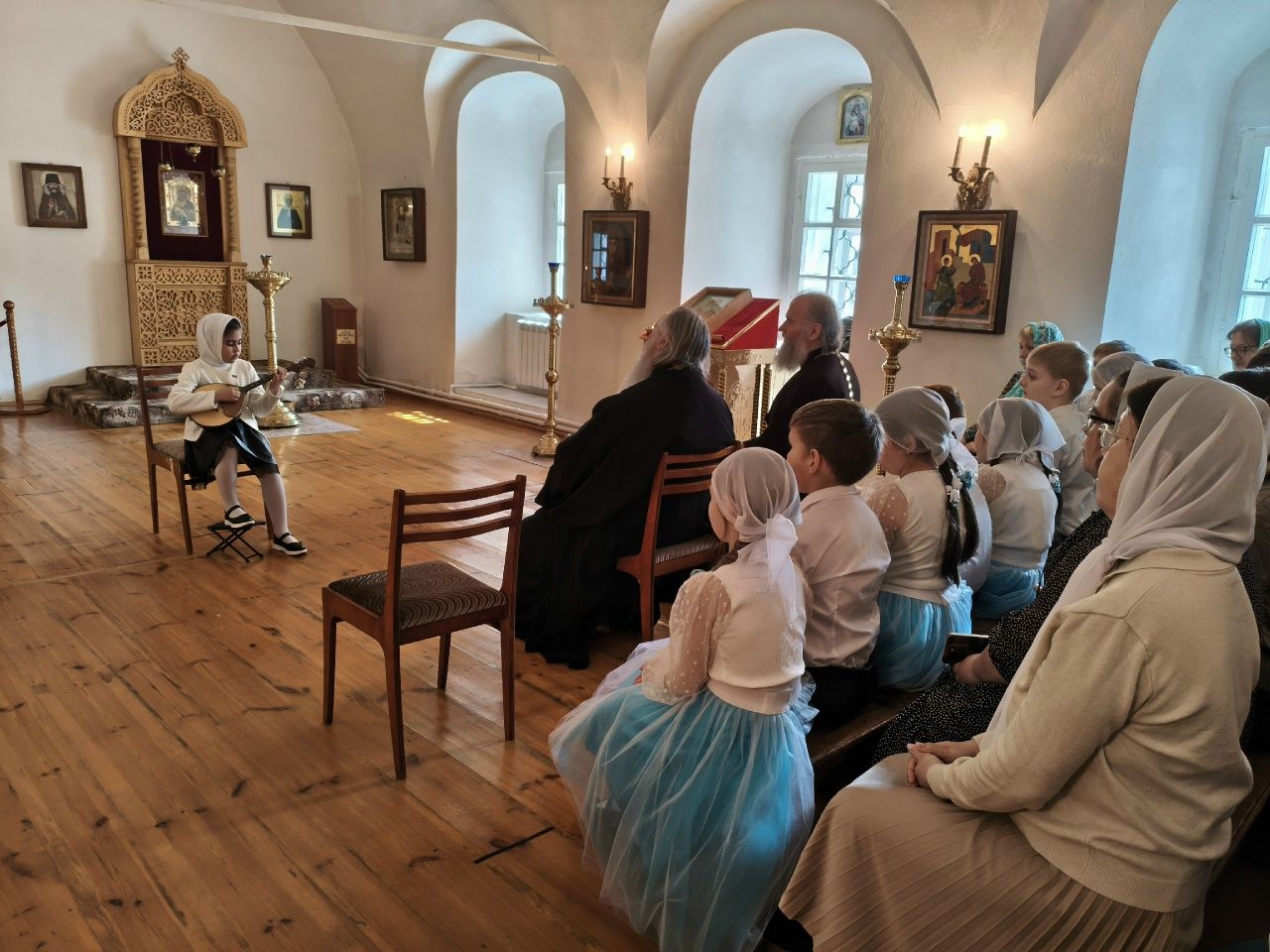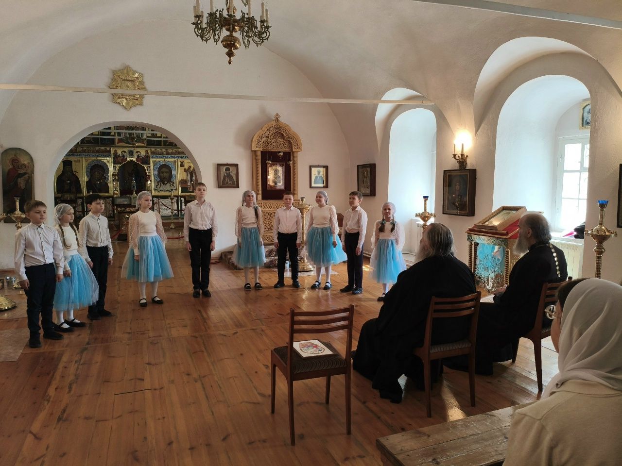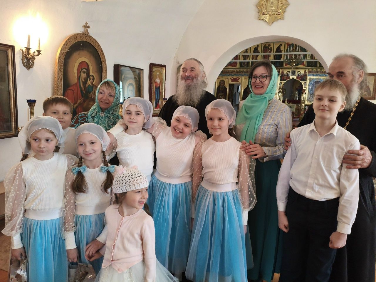 После трапезы митрополит Иоанн поздравил игумению Варнаву и насельниц обители с праздником Пасхи и вручил сладкие подарки. В завершение перед собравшимися с пасхальным концертом выступили воспитанники монастырской воскресной школы, а владыка одарил детей сладостями.