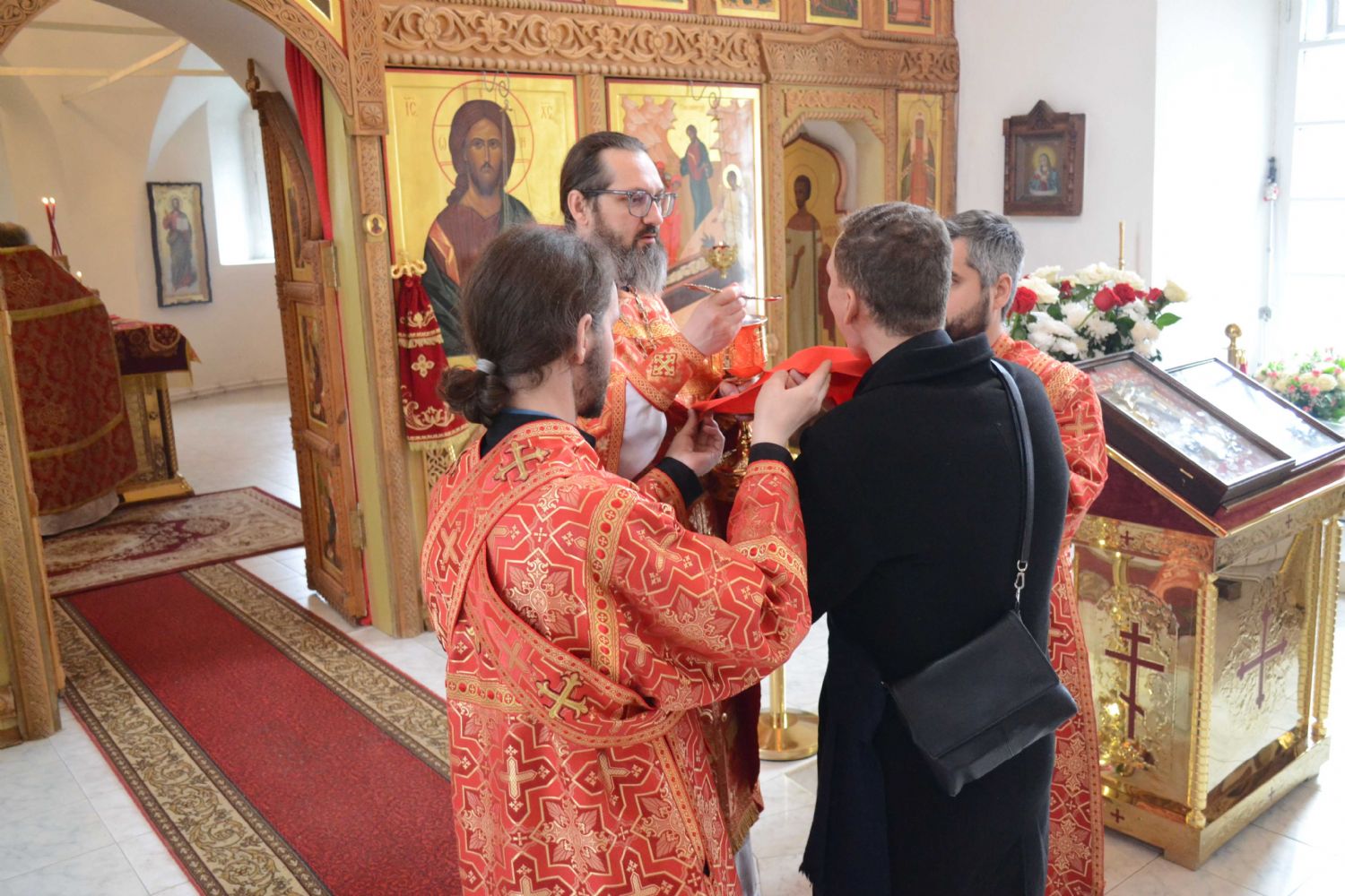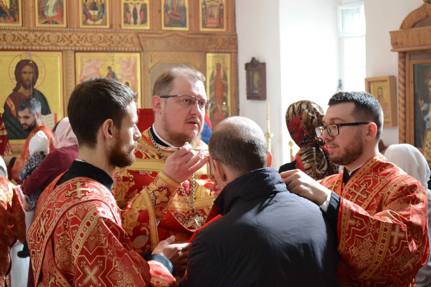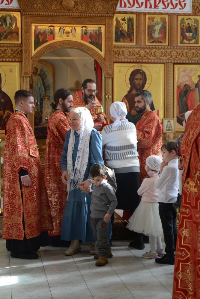 Да, во Христа мы крестились, но облекаемся ли мы в эту новую жизнь во Христе? Облечение это происходит прежде всего в духовной, литургической жизни, когда Сам Господь в таинствах церковных укрепляет нас, очищает в таинстве Покаяния от грехов, сподобляет в таинстве Святого Причащения соединиться с Ним. А особенно в святые пасхальные дни Господь являет нам великую духовную радость и призывает нас как можно чаще приступали к таинству Святого Причащения.