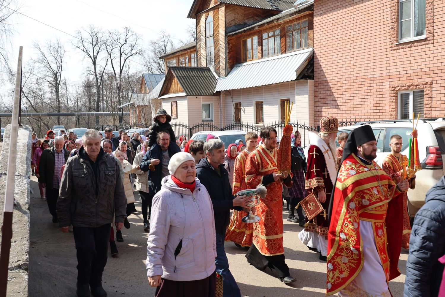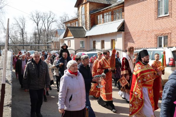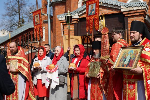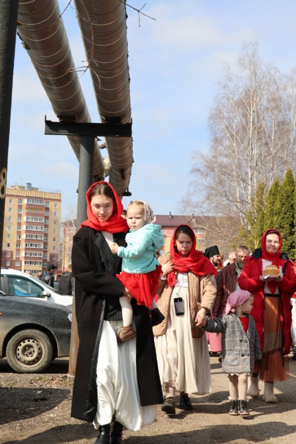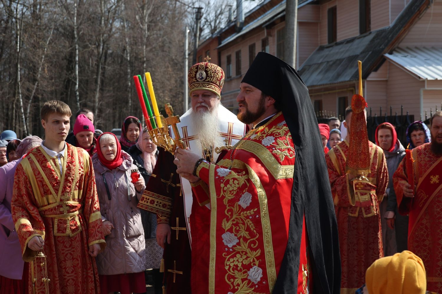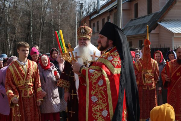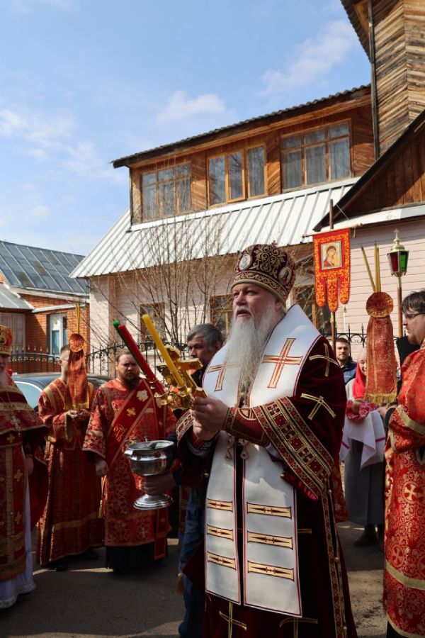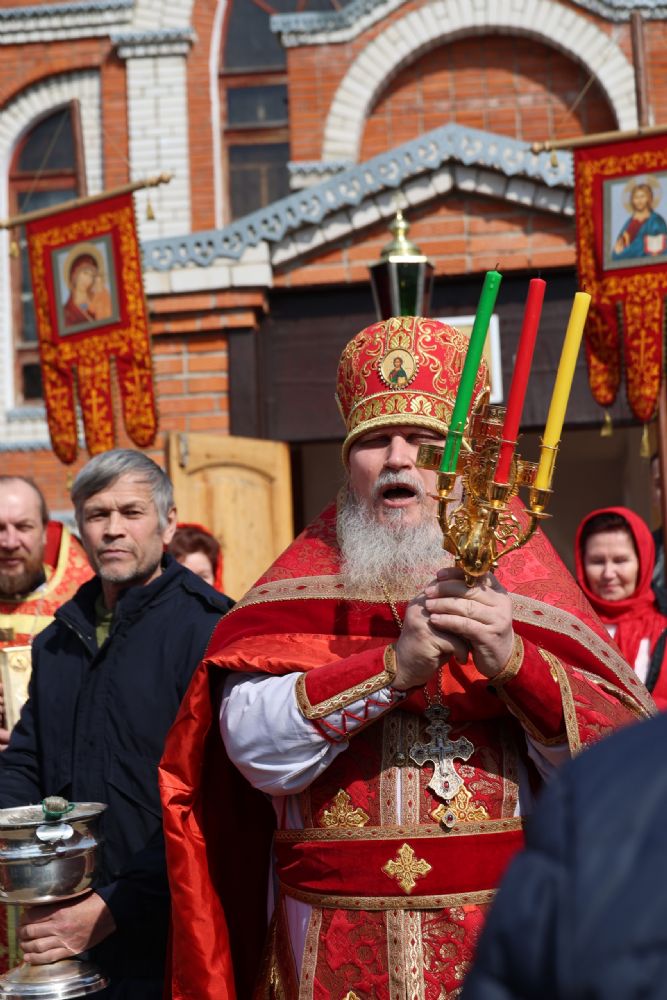 По окончании Литургии был совершен пасхальный крестный хор вокруг храма, после чего епископ Феофан обратился к прихожанам с архипастырским словом.