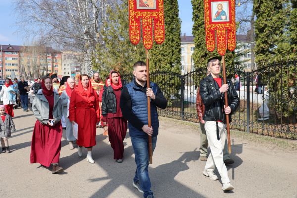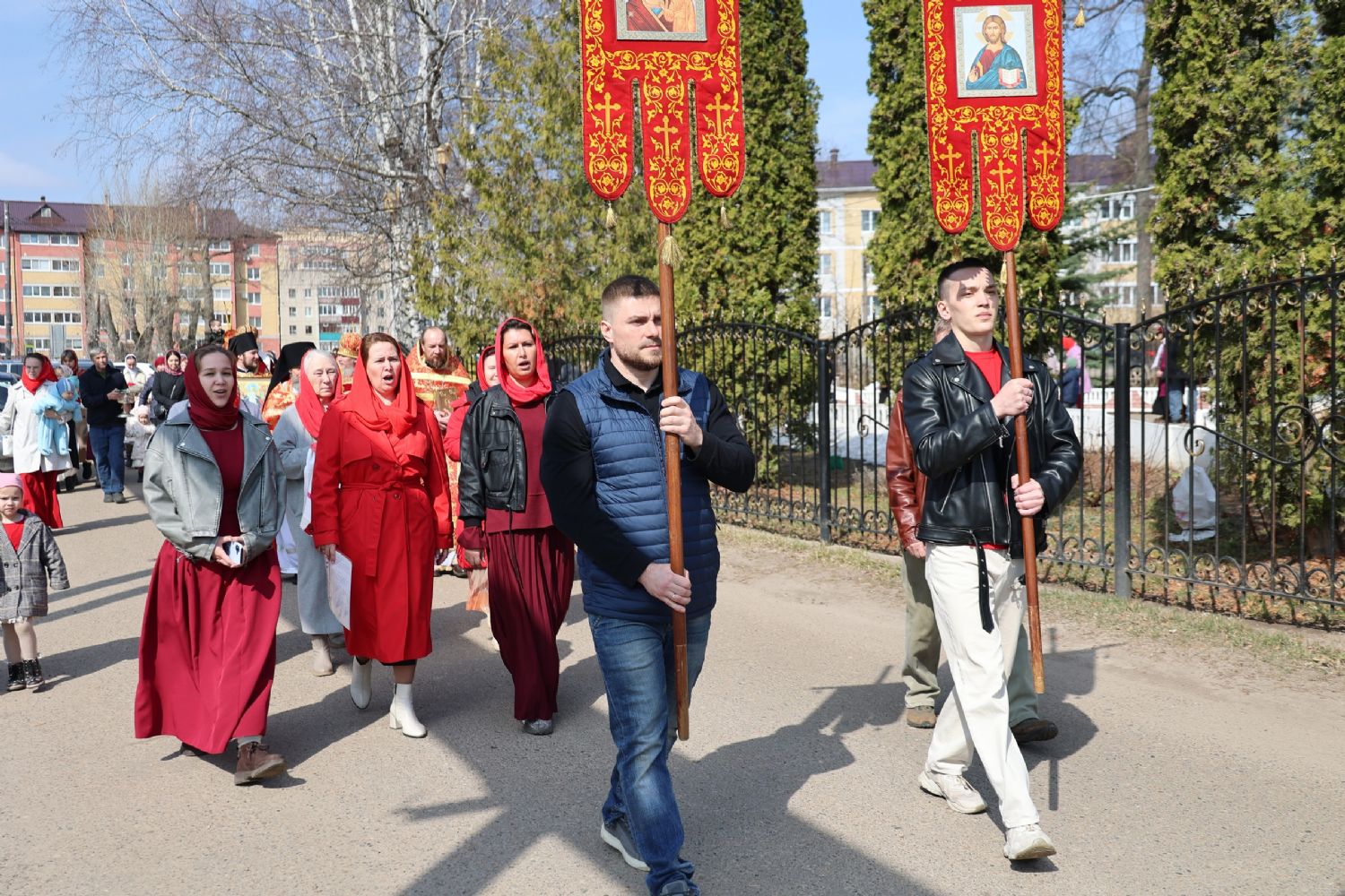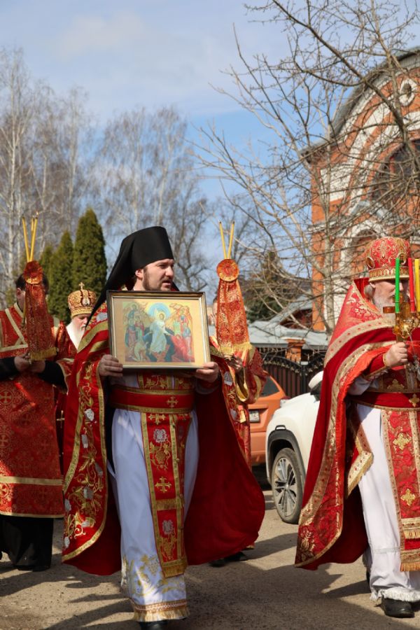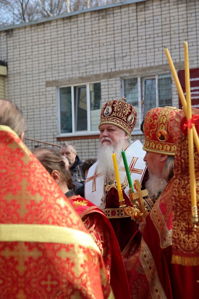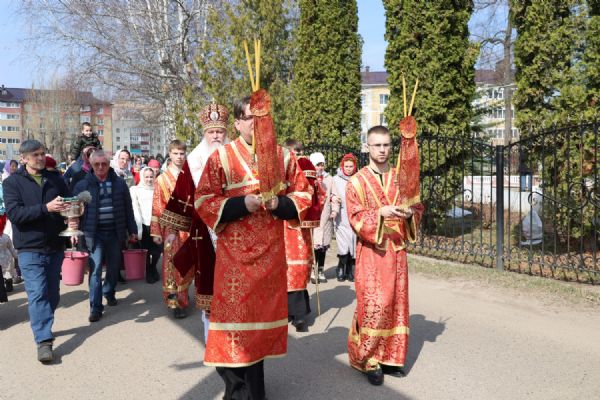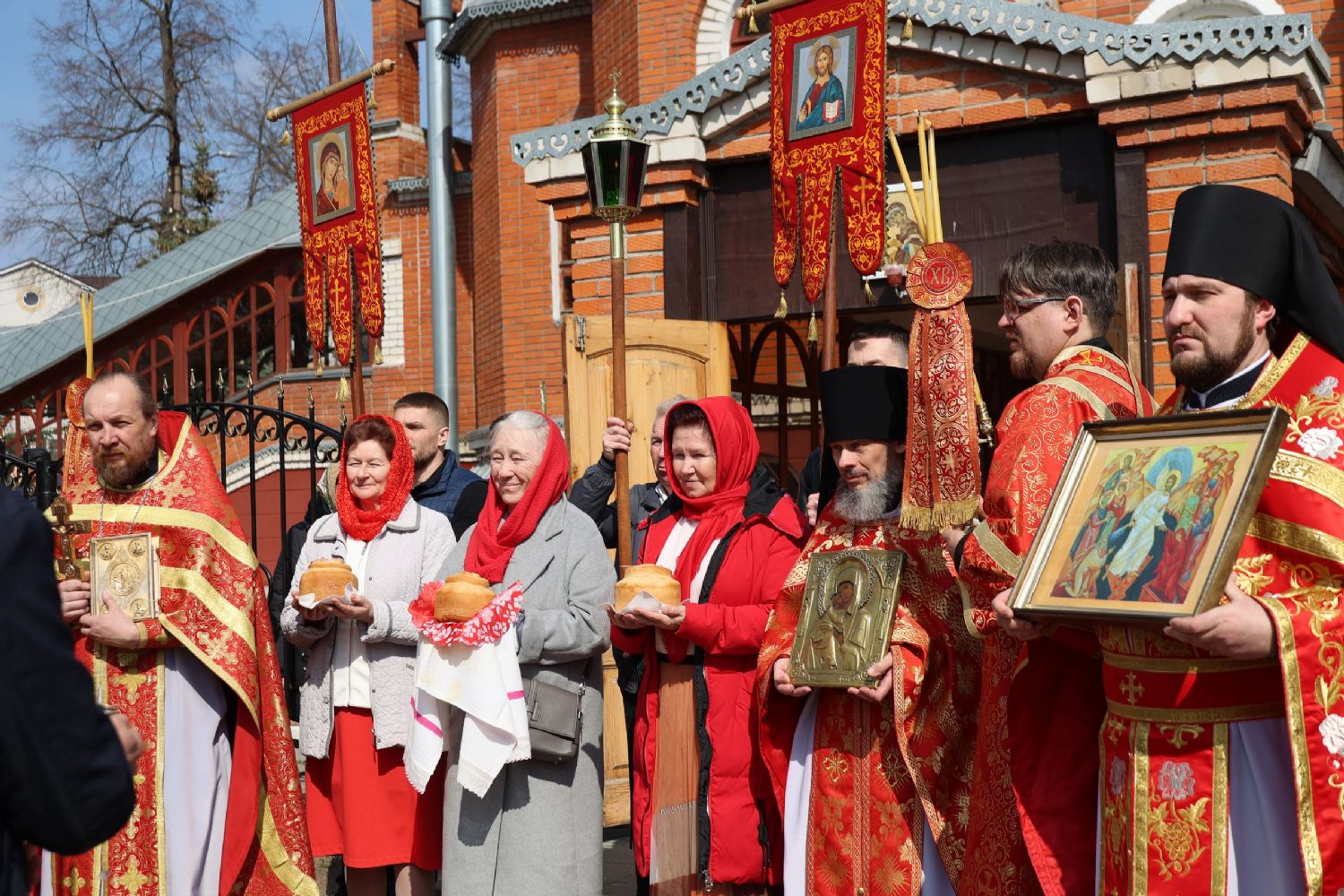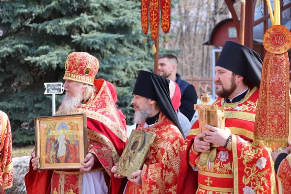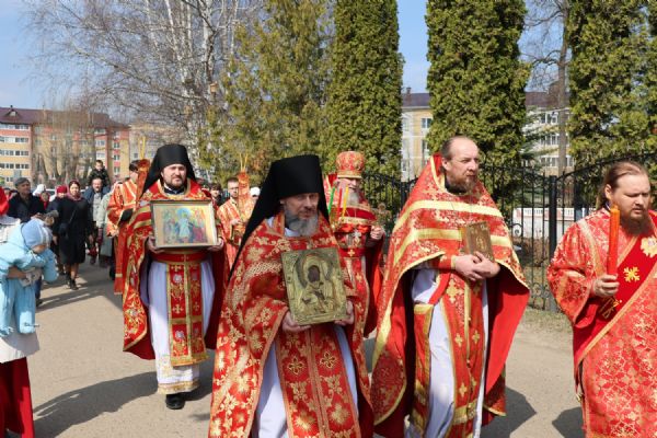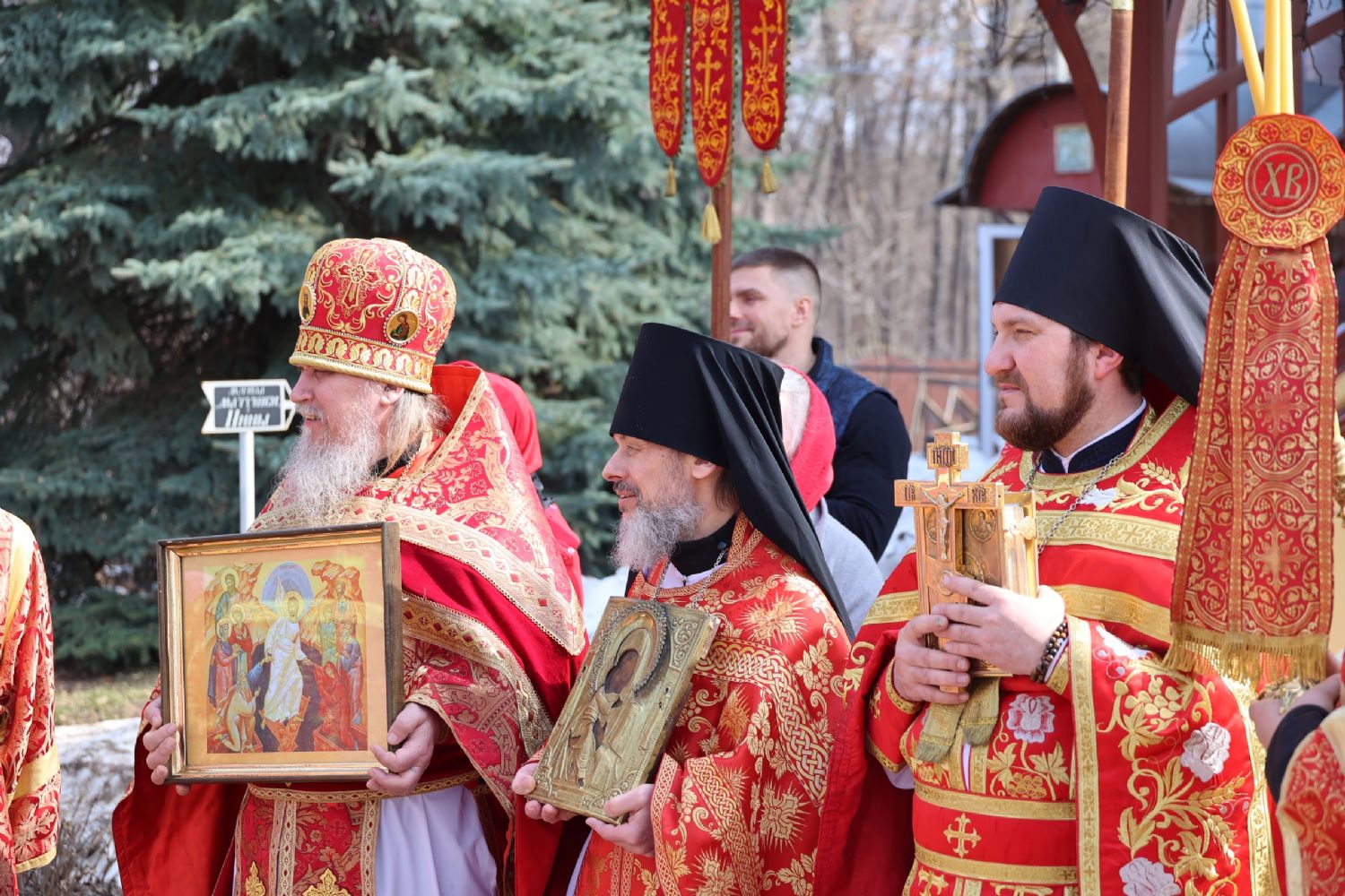 По окончании Литургии был совершен пасхальный крестный хор вокруг храма, после чего епископ Феофан обратился к прихожанам с архипастырским словом.