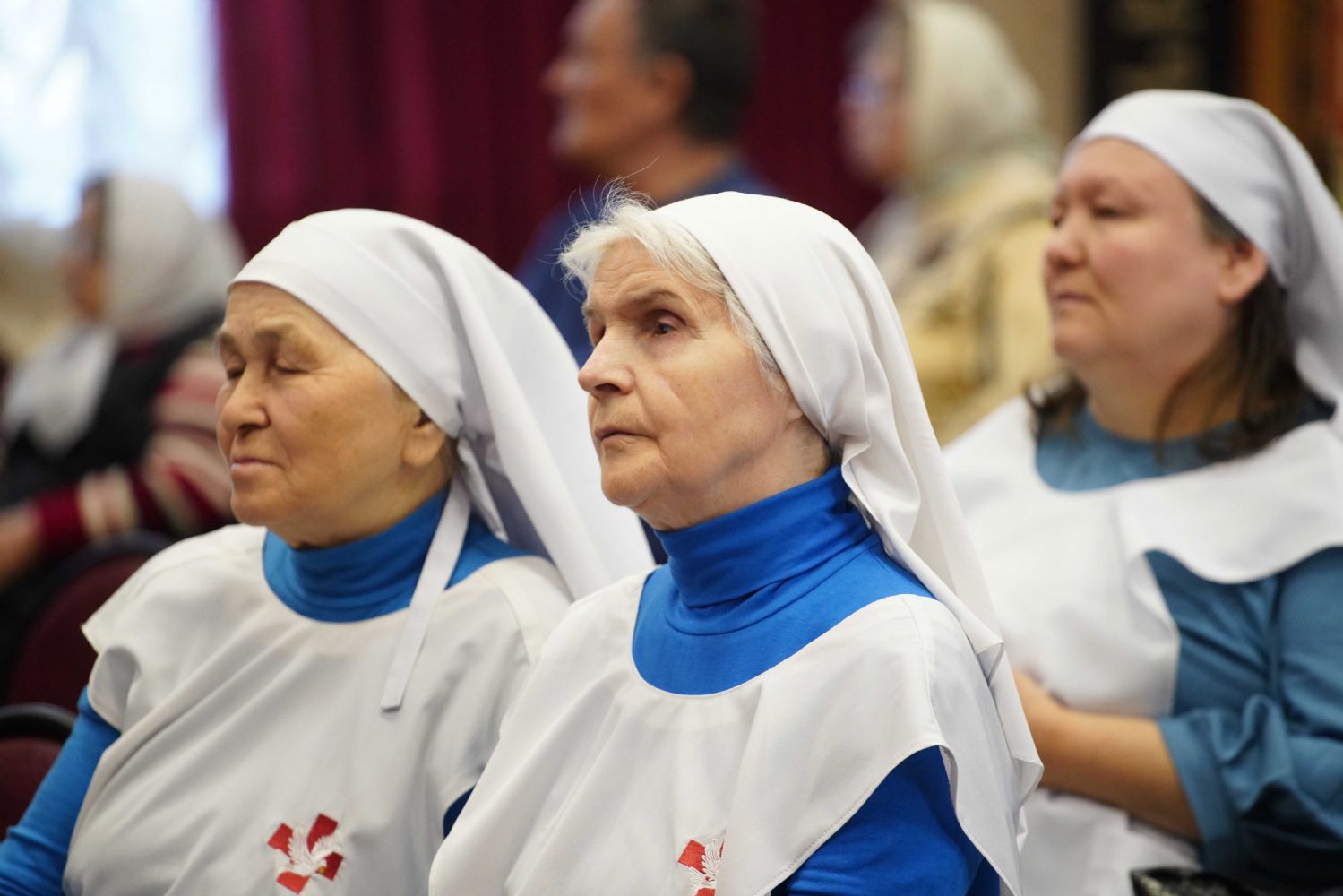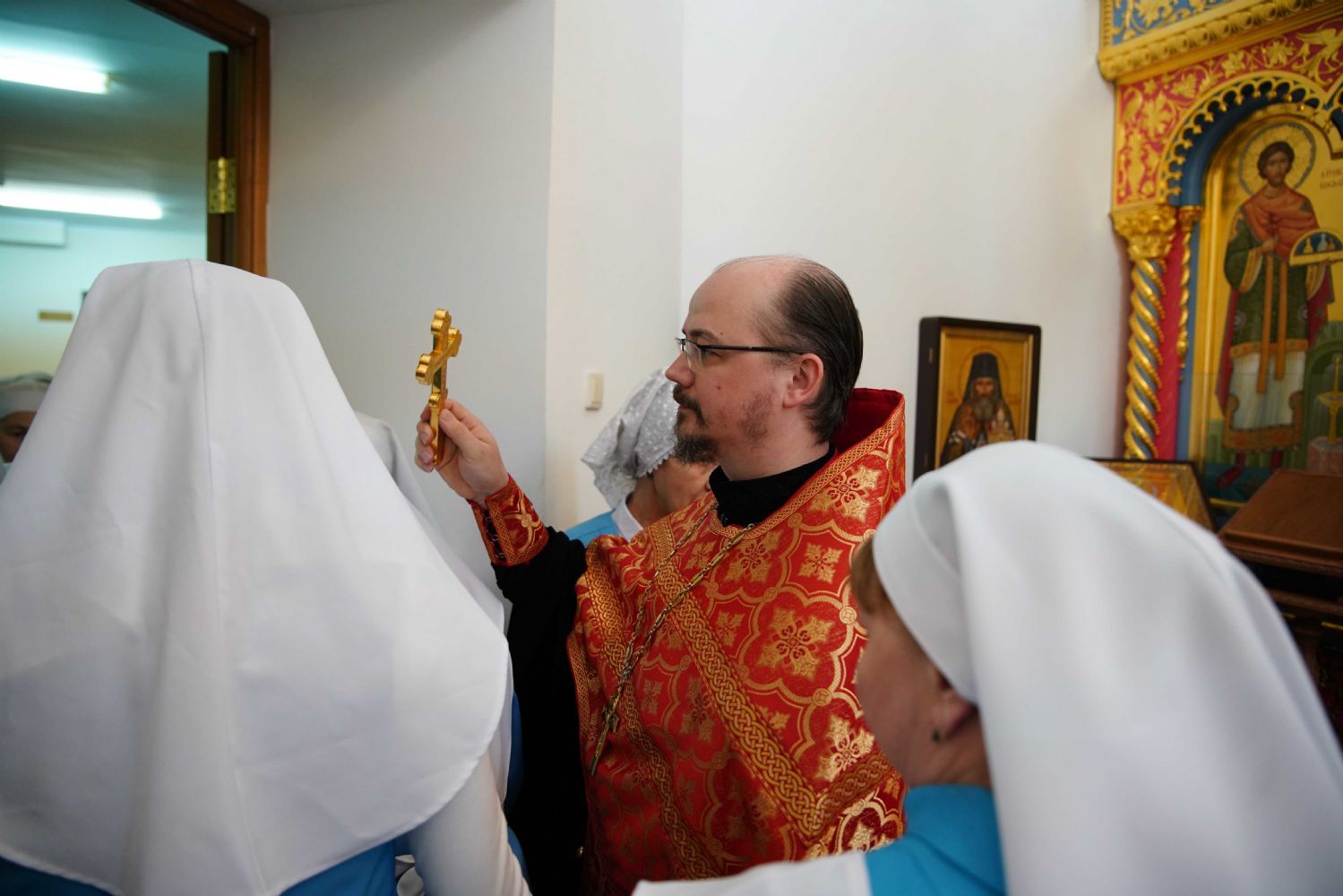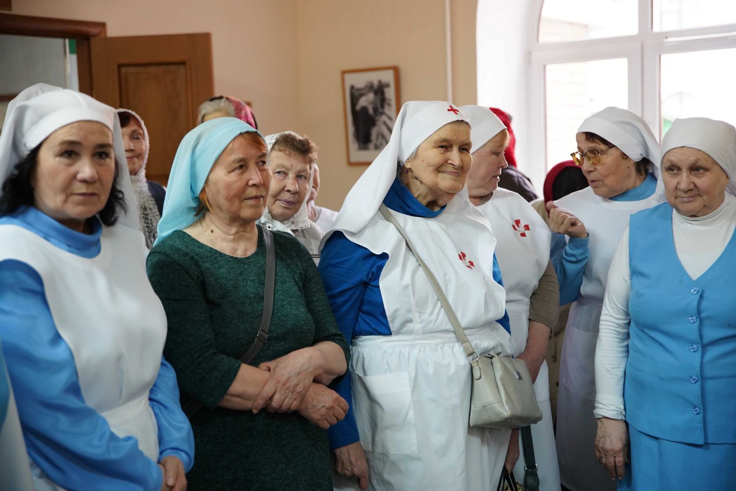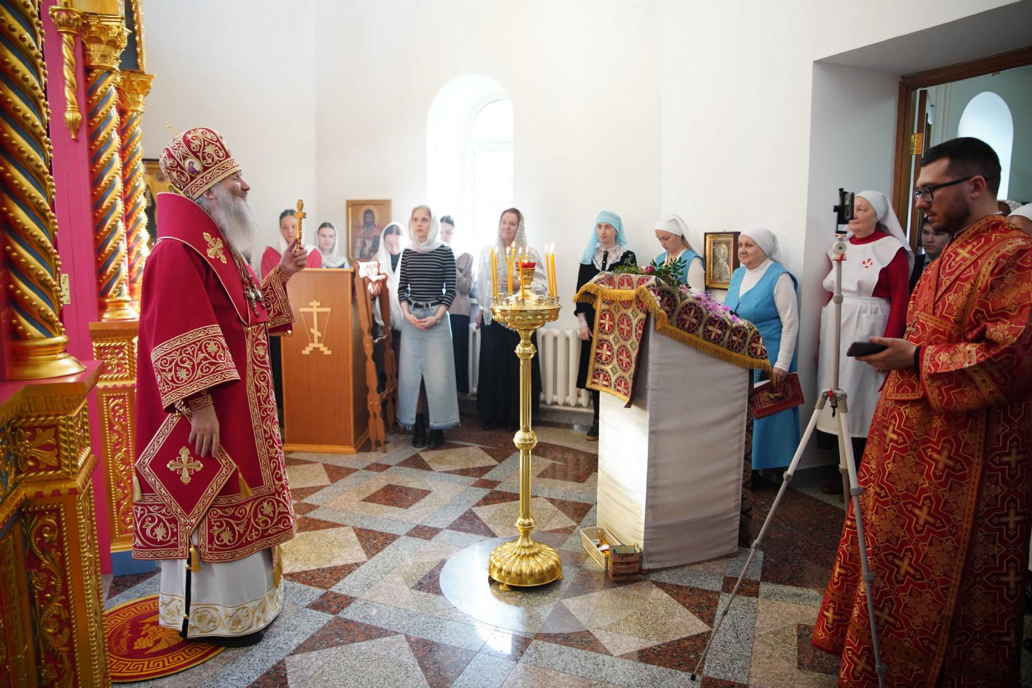 Владыке сослужили ключарь Благовещенского кафедрального собора протоиерей Сергий Поглазов, духовник сестричества иерей Константин Домрачев, руководитель епархиального отдела социального служения и церковной благотворительности иерей Алексий Михеев и протодиакон Михаил Козловский. Песнопения исполнял архиерейский хор «Благовест» под управлением Татьяны Черновой.