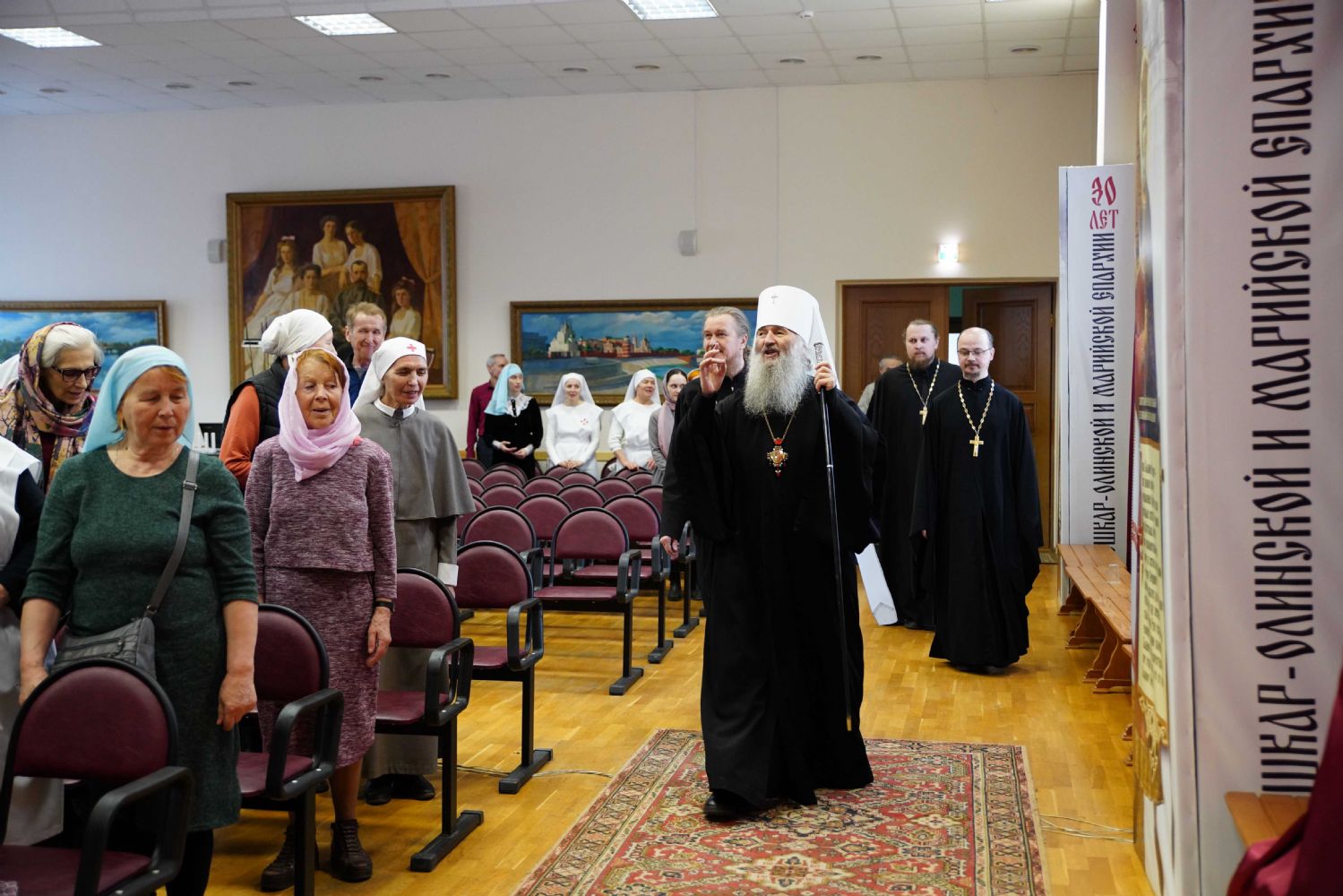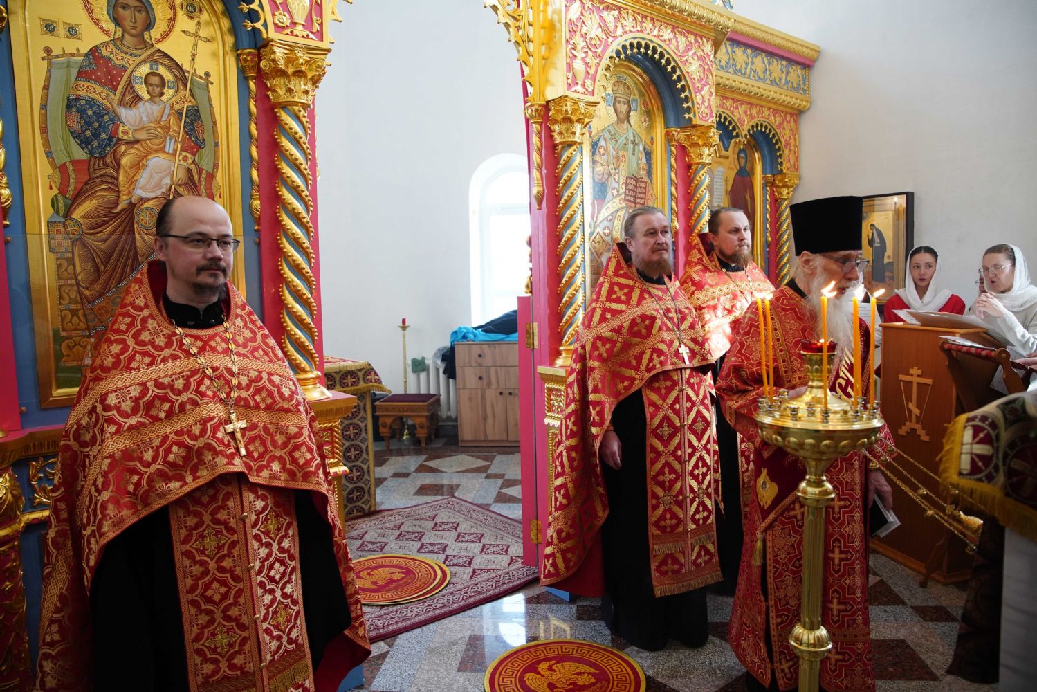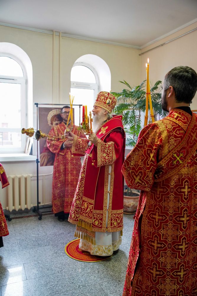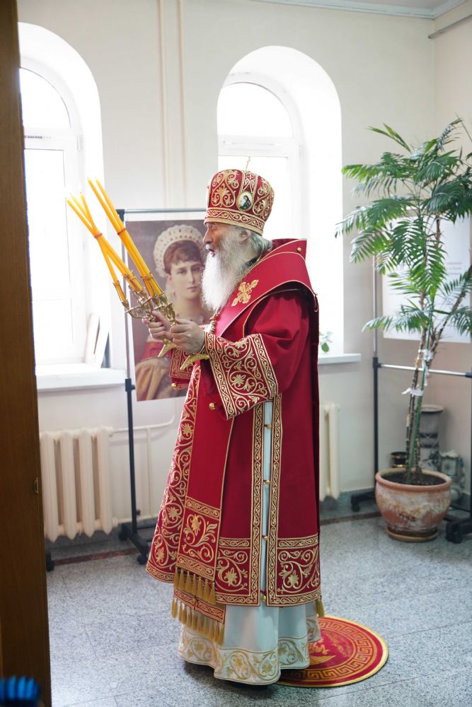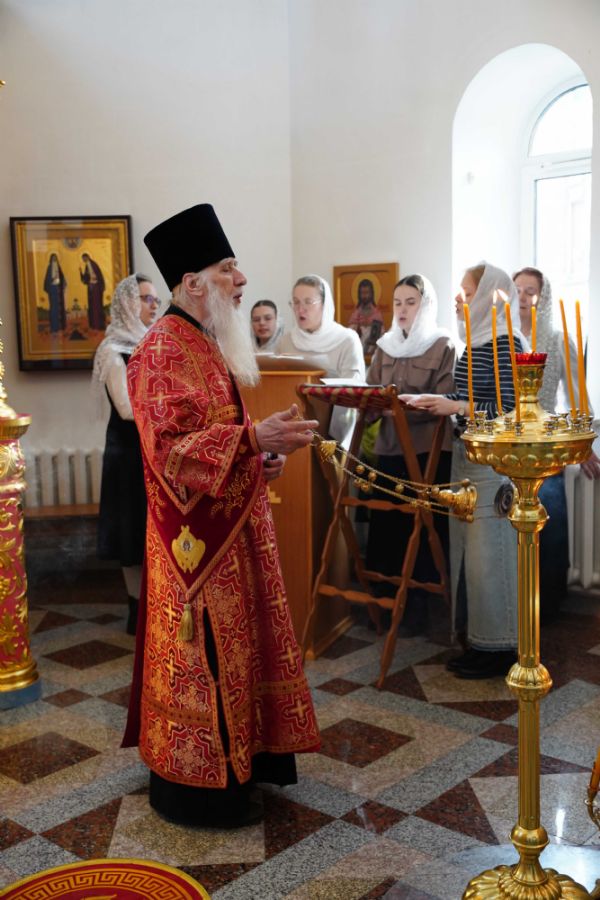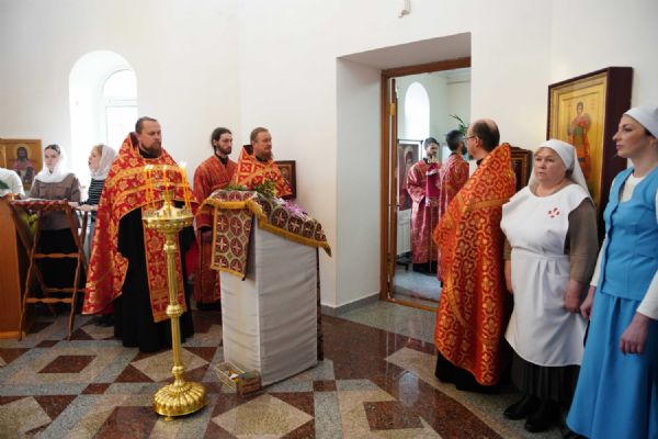 Владыке сослужили ключарь Благовещенского кафедрального собора протоиерей Сергий Поглазов, духовник сестричества иерей Константин Домрачев, руководитель епархиального отдела социального служения и церковной благотворительности иерей Алексий Михеев и протодиакон Михаил Козловский. Песнопения исполнял архиерейский хор «Благовест» под управлением Татьяны Черновой.