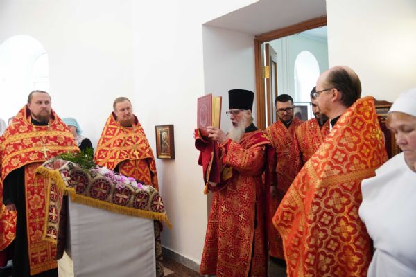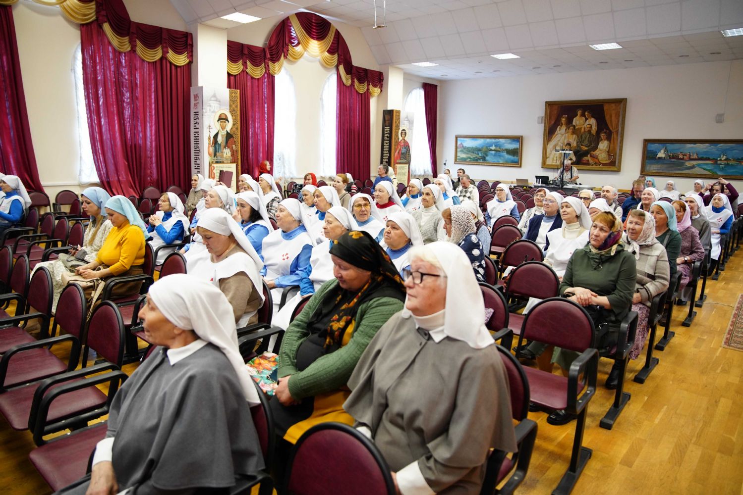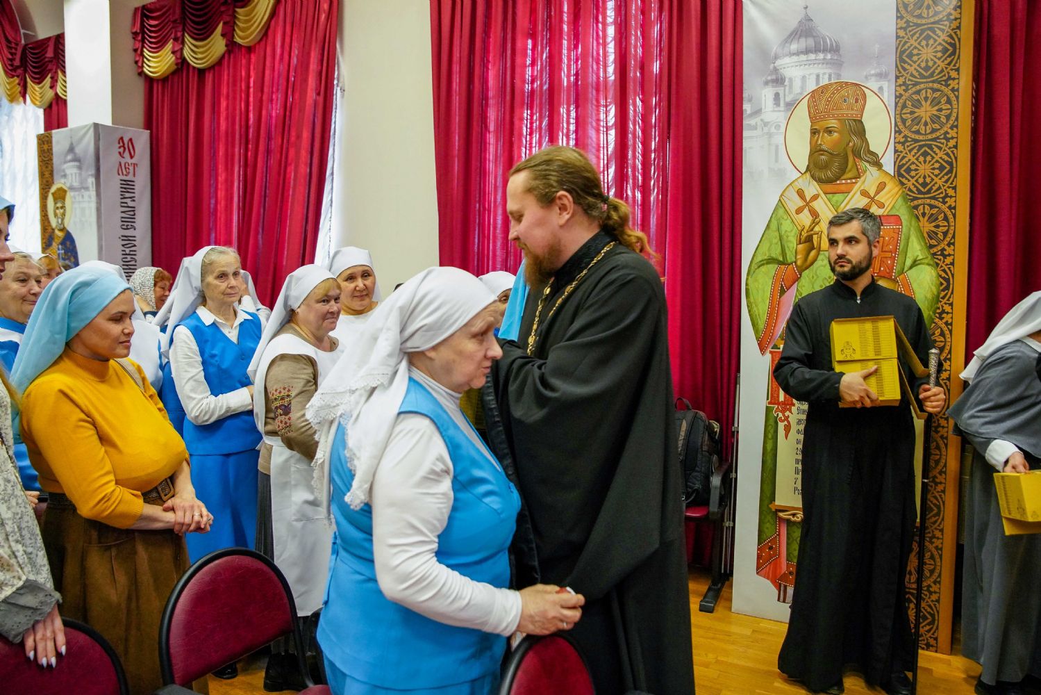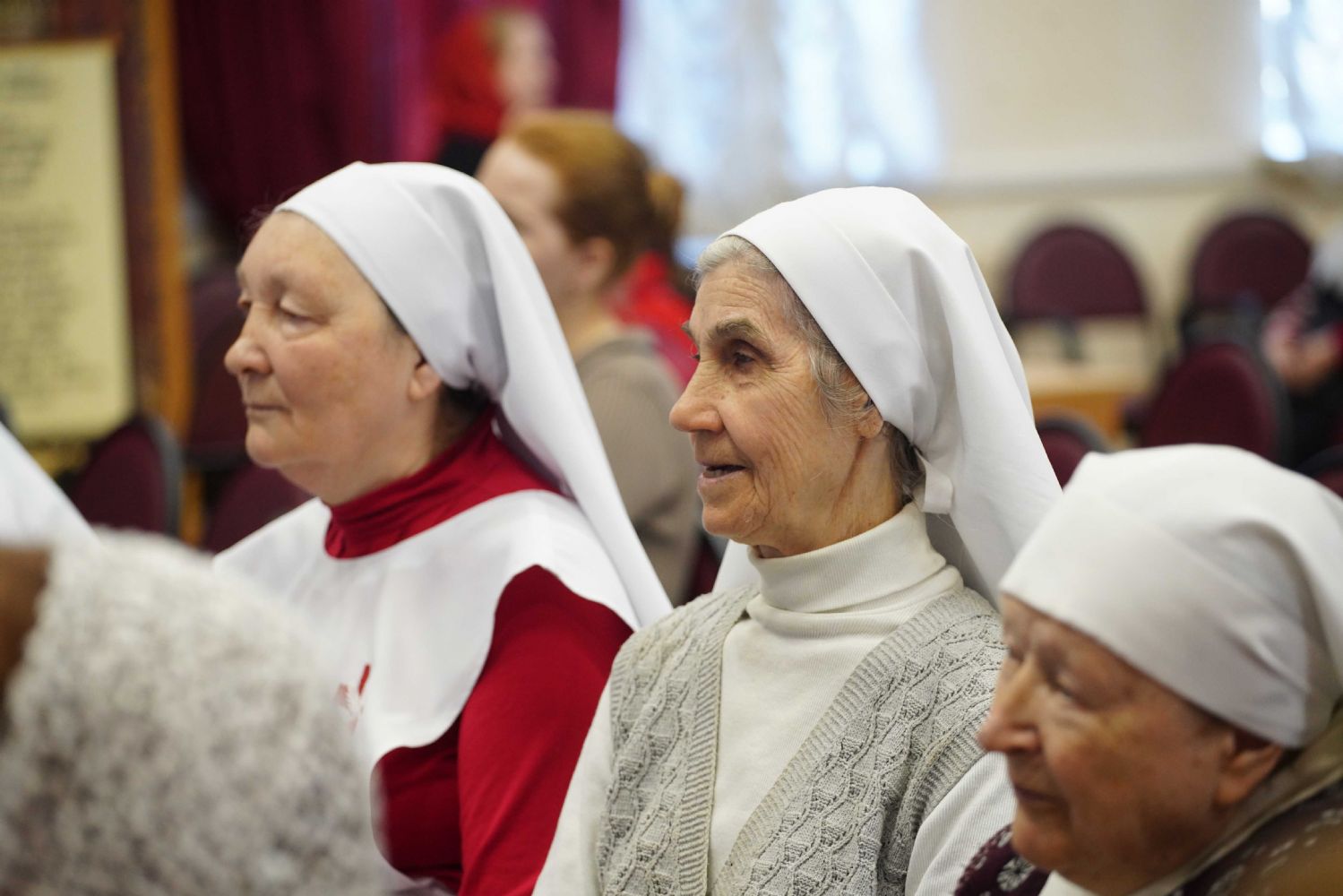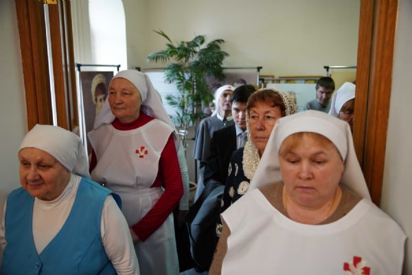 Владыке сослужили ключарь Благовещенского кафедрального собора протоиерей Сергий Поглазов, духовник сестричества иерей Константин Домрачев, руководитель епархиального отдела социального служения и церковной благотворительности иерей Алексий Михеев и протодиакон Михаил Козловский. Песнопения исполнял архиерейский хор «Благовест» под управлением Татьяны Черновой.