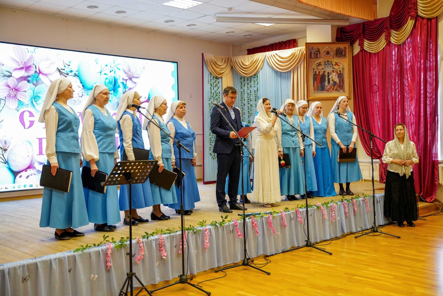 После богослужения владыка со священством посетили традиционный Пасхальный концерт сестер милосердия в актовом зале Православного центра. Своими номерами зрителей порадовали как сами сестры милосердия, так и приглашенные артисты театра им. Шкетана и ТЮЗа.