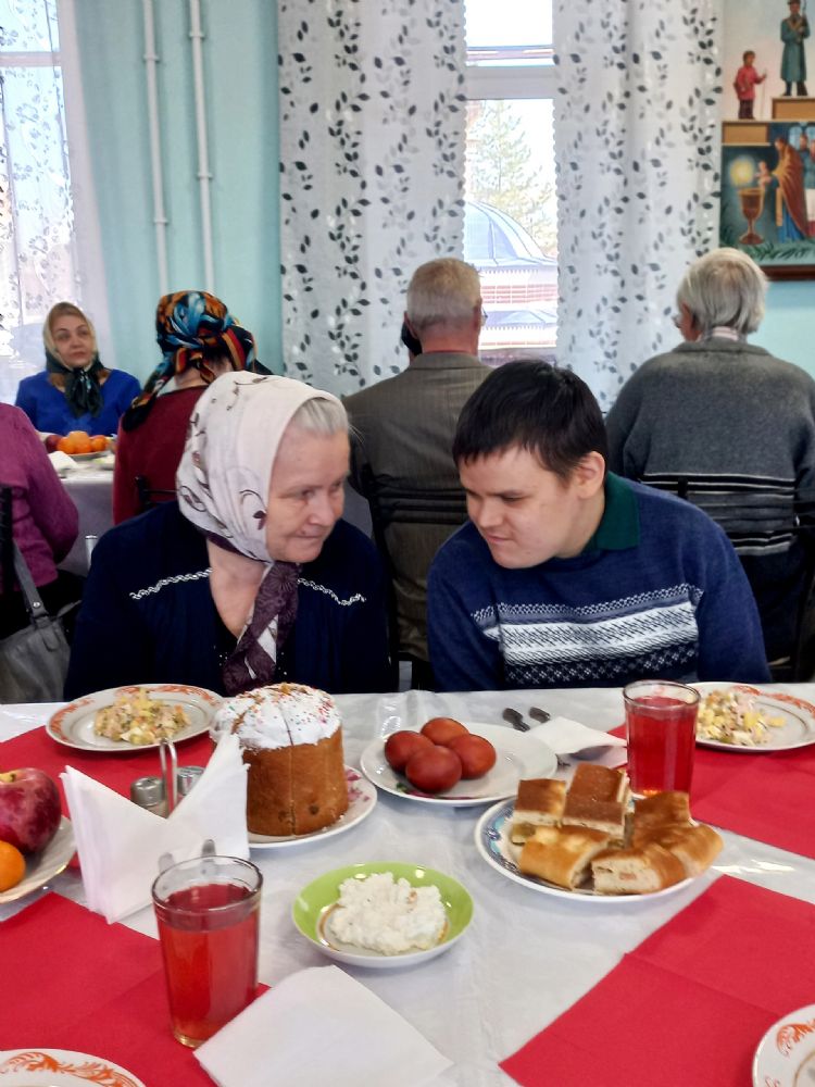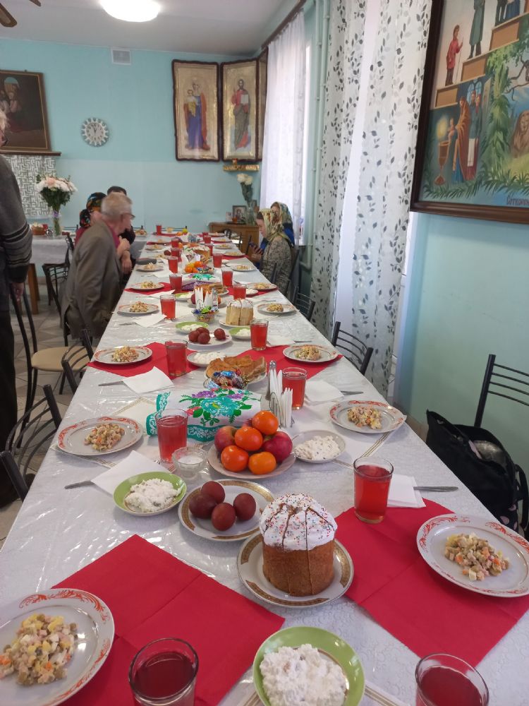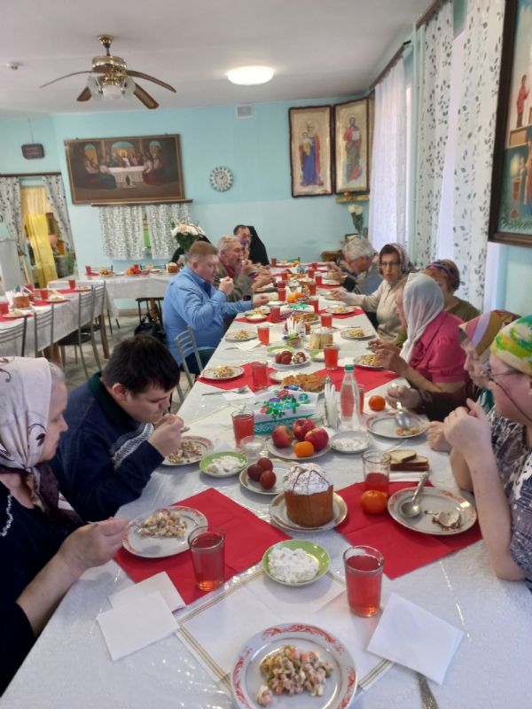 За пасхальной трапезой, с любовью приготовленной добрыми руками поваров, продолжилось неформальное общение. Для многих это стало возможностью почувствовать себя частью большой и заботливой семьи, где нет места одиночеству.