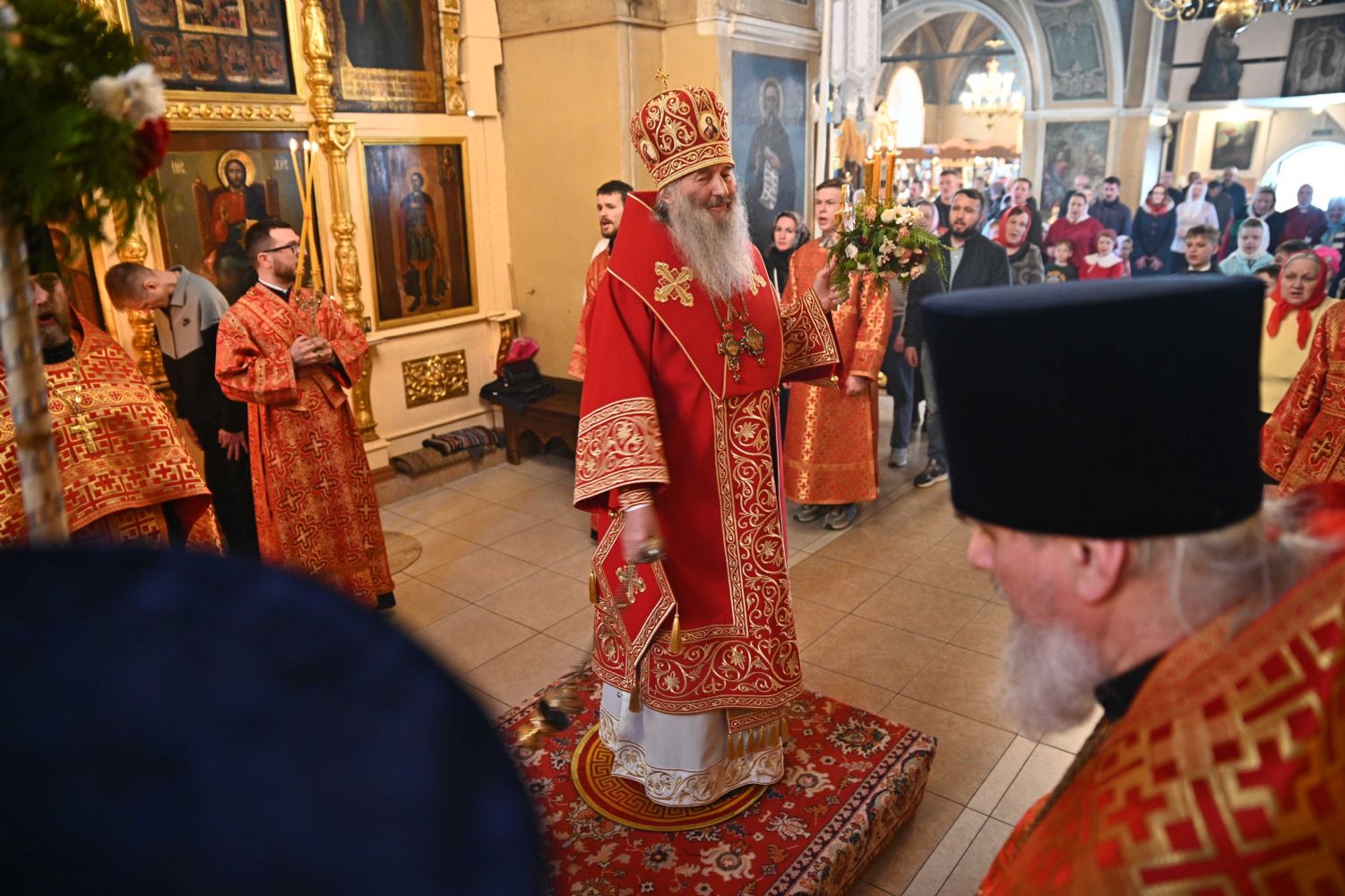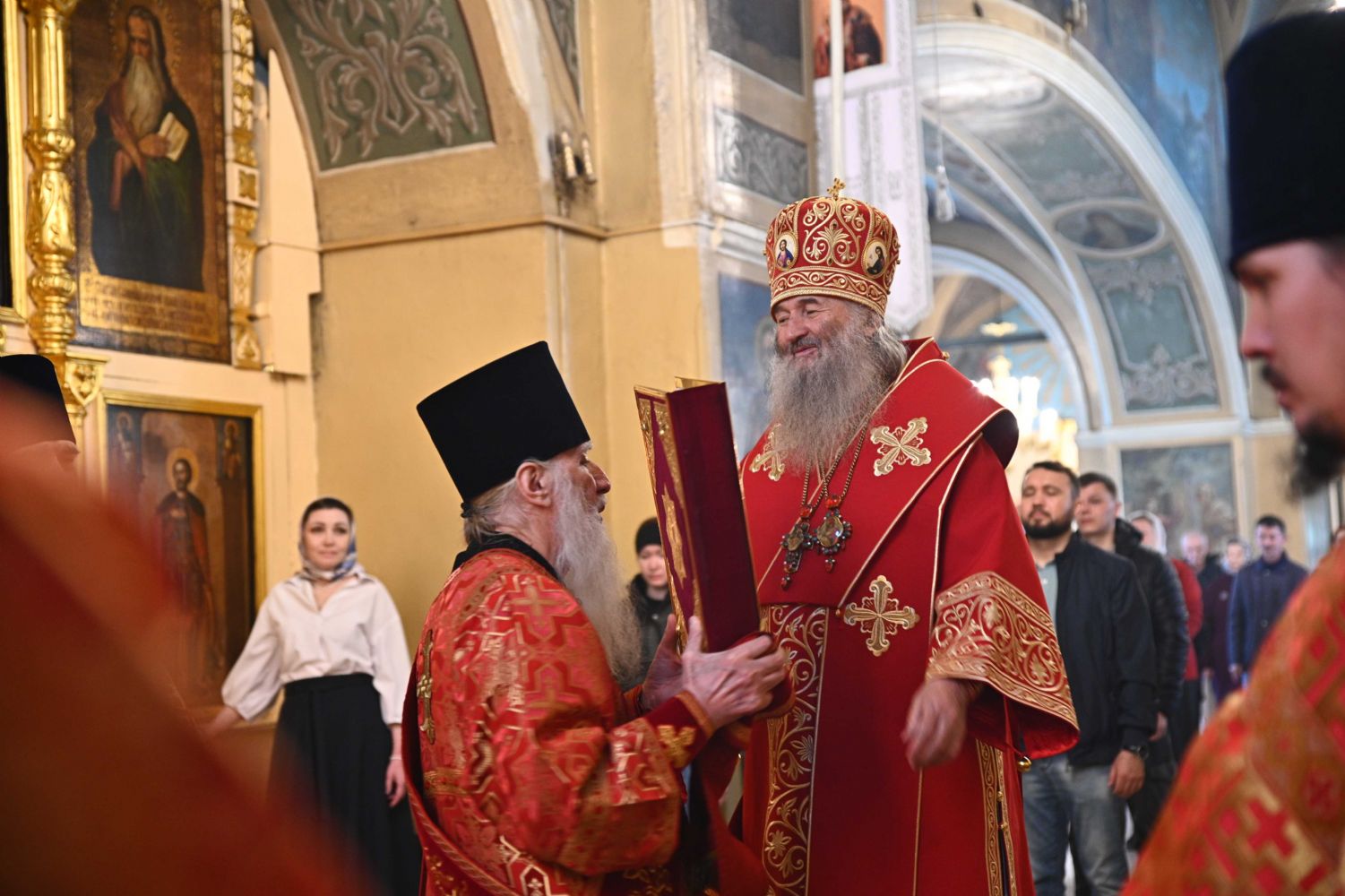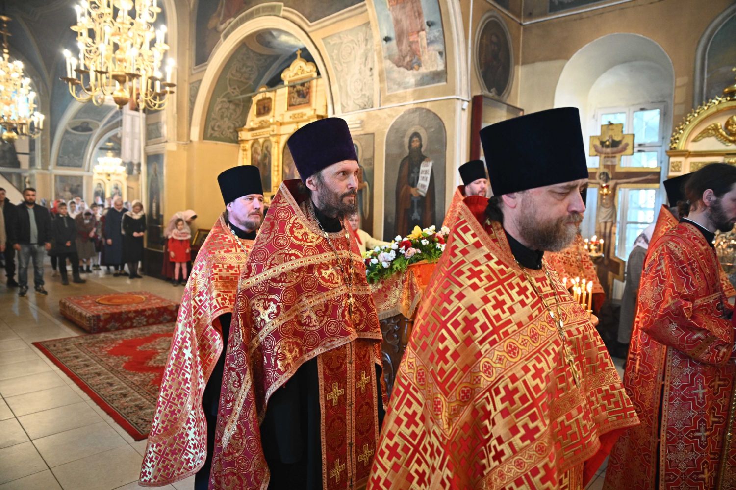 Его Высокопреосвященству сослужили ключарь храма протоиерей Михаил Ильин, клирики храма протоиерей Павел Матвеев, иереи Димитрий Иванов, Сергий Асланов и Павел Дурандин, протодиакон Михаил Козловский и диакон Димитрий Смирнов, а также настоятель Покровского храма с. Мари-Сола протоиерей Сергий Сильдушкин. Пасхальные песнопения исполнял хор храма под управлением Ирины Лебедевой.
