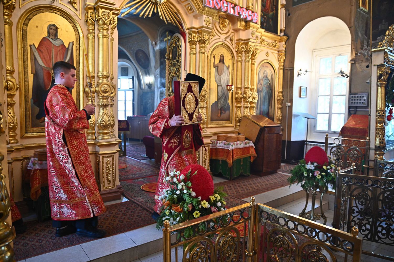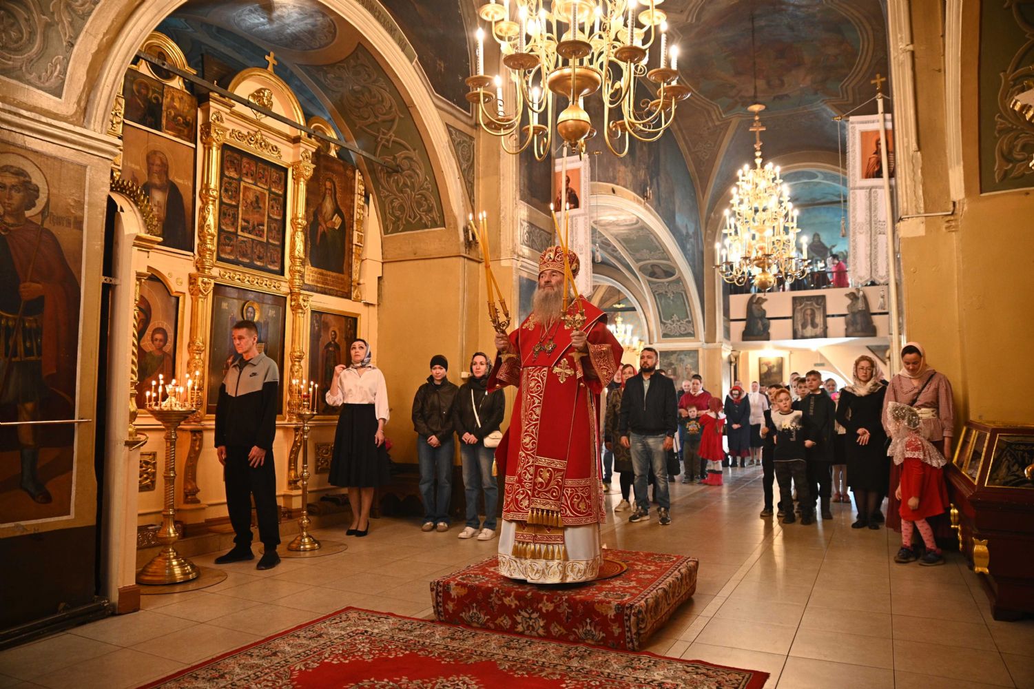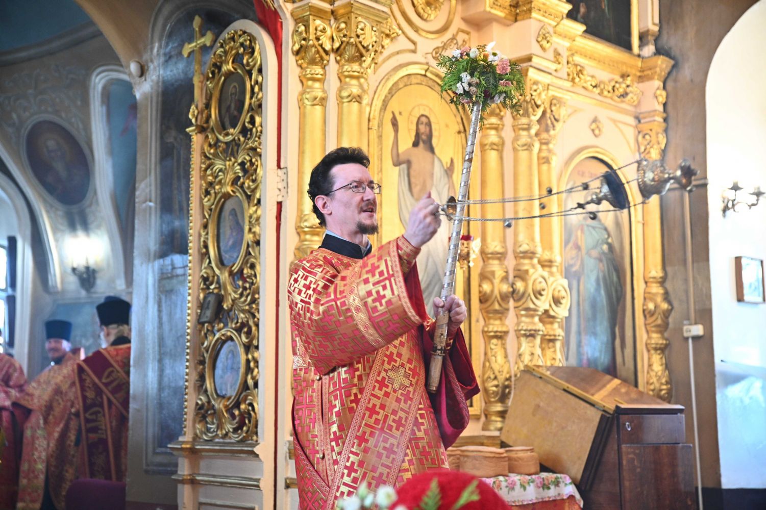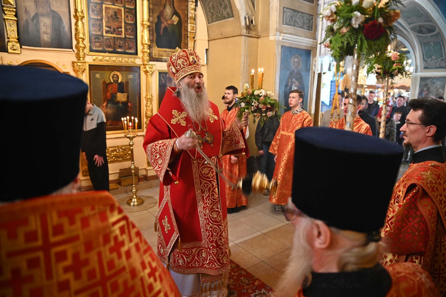 Его Высокопреосвященству сослужили ключарь храма протоиерей Михаил Ильин, клирики храма протоиерей Павел Матвеев, иереи Димитрий Иванов, Сергий Асланов и Павел Дурандин, протодиакон Михаил Козловский и диакон Димитрий Смирнов, а также настоятель Покровского храма с. Мари-Сола протоиерей Сергий Сильдушкин. Пасхальные песнопения исполнял хор храма под управлением Ирины Лебедевой.