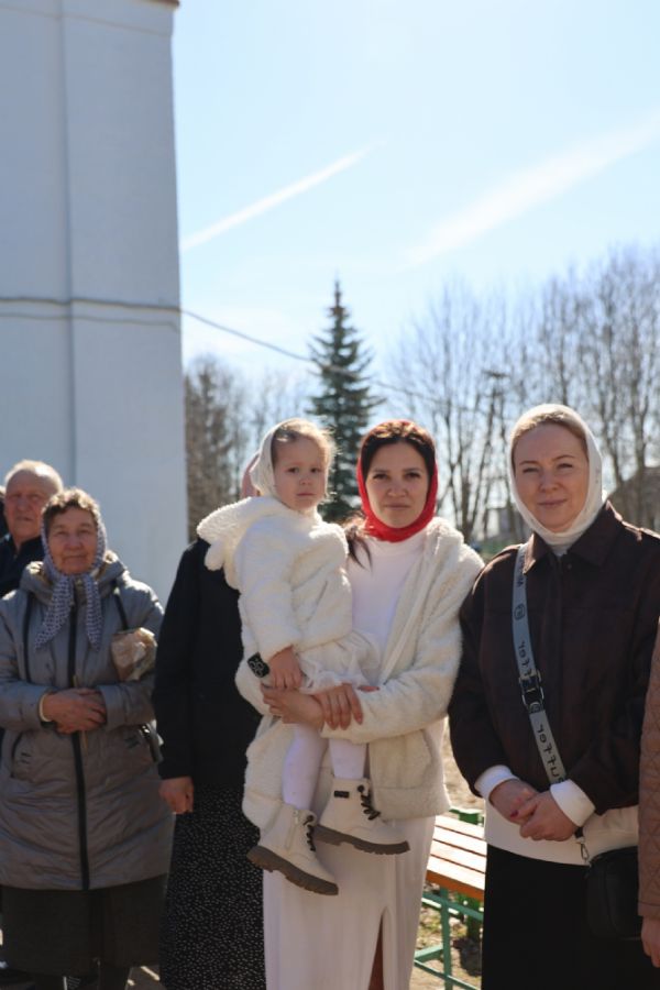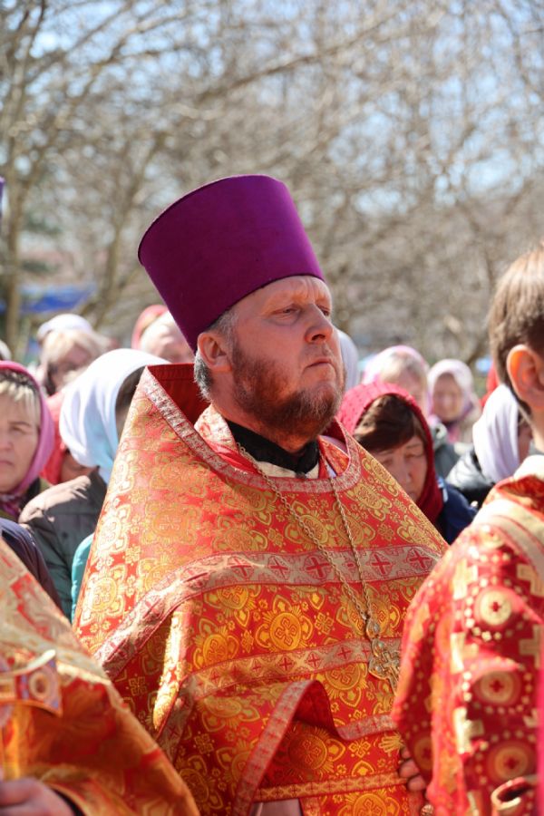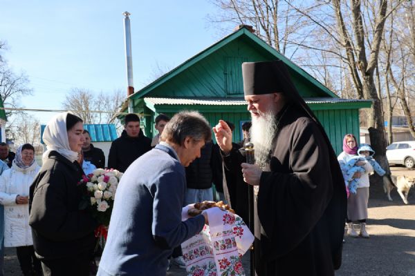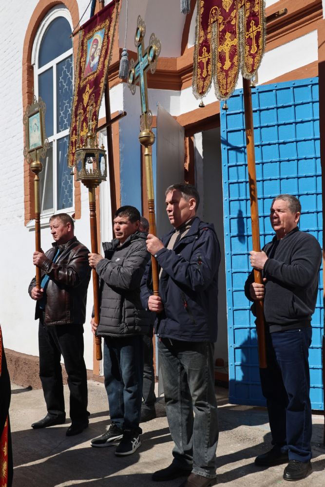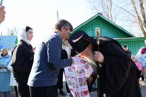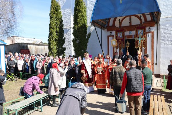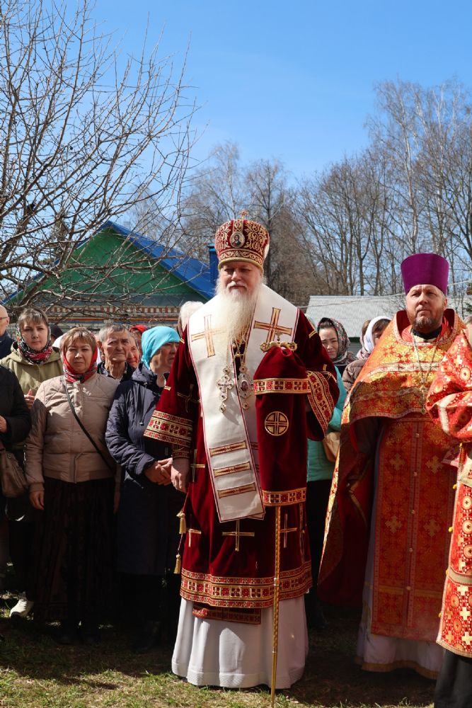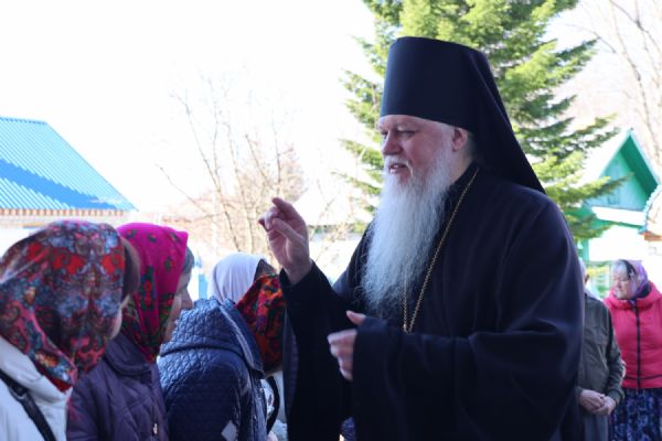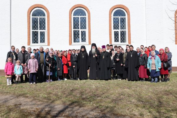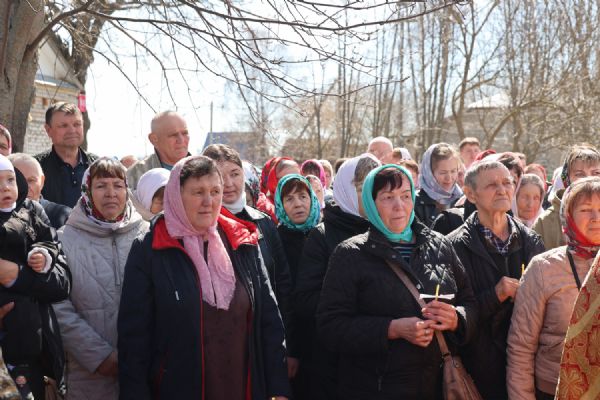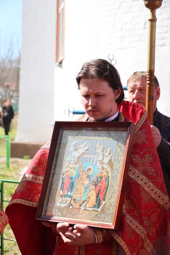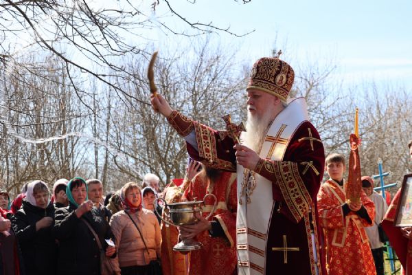 После Литургии прошел пасхальный крестный ход вокруг храма, затем епископ Феофан обратился к верующим с архипастырским словом. Владыка поздравил верующих с праздником Светлого Воскресения Христова и рассказал о сошествии во ад Господа нашего Иисуса Христа после Своей крестной смерти, а также о радостных событиях, произошедших после славного Воскресения Спасителя. Смерть побеждена, и рай вновь открыт для душ человеческих. Владыка дал почувствовать собравшимся ту радость, которую испытали жены-мироносицы и апостолы от ангельского известия о Воскресшем Спасителе. Архипастырь также напомнил о чудесном многократном явлении Спасителя в течение 40 дней Своим ученикам и женам-мироносицам.