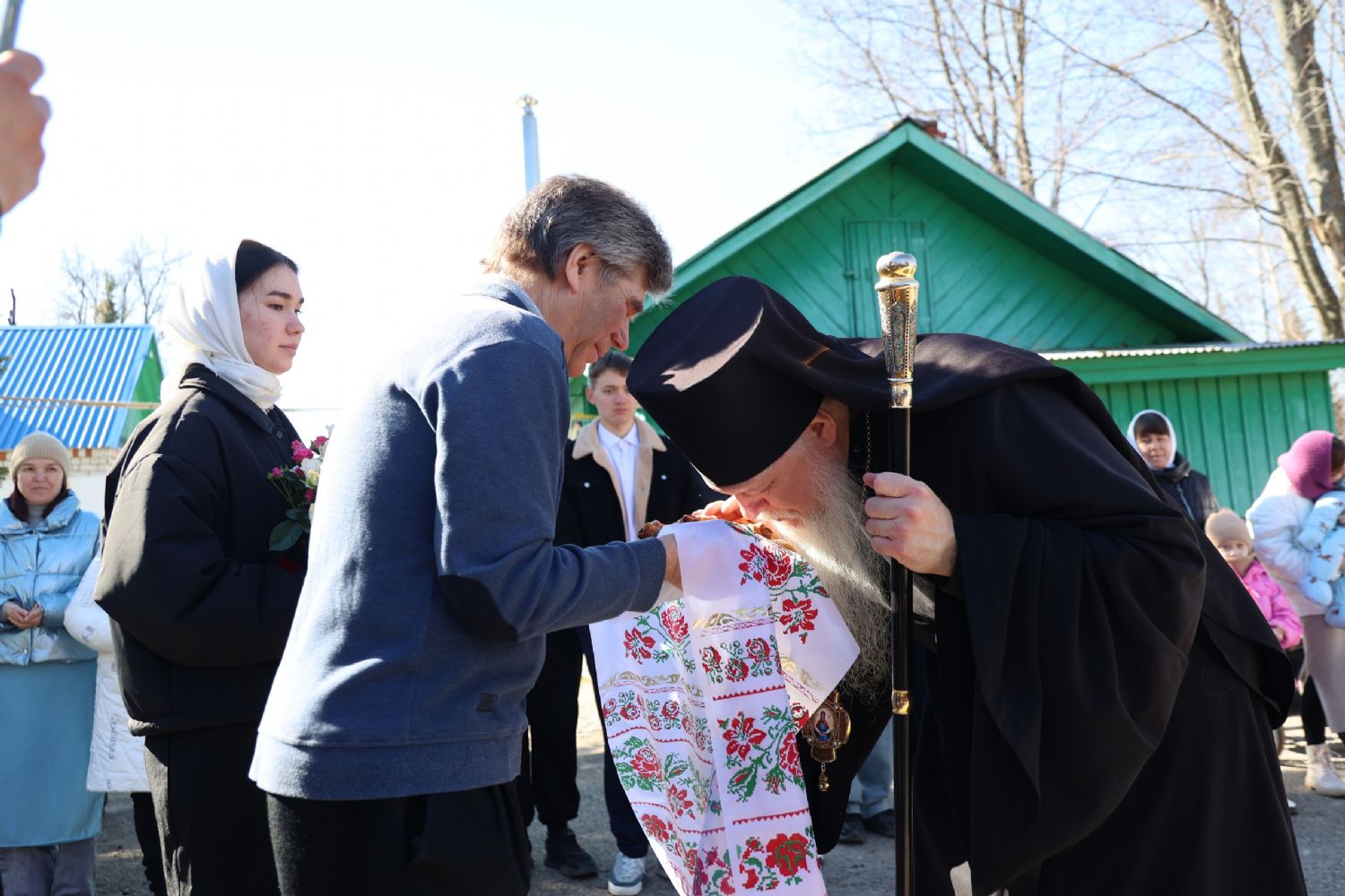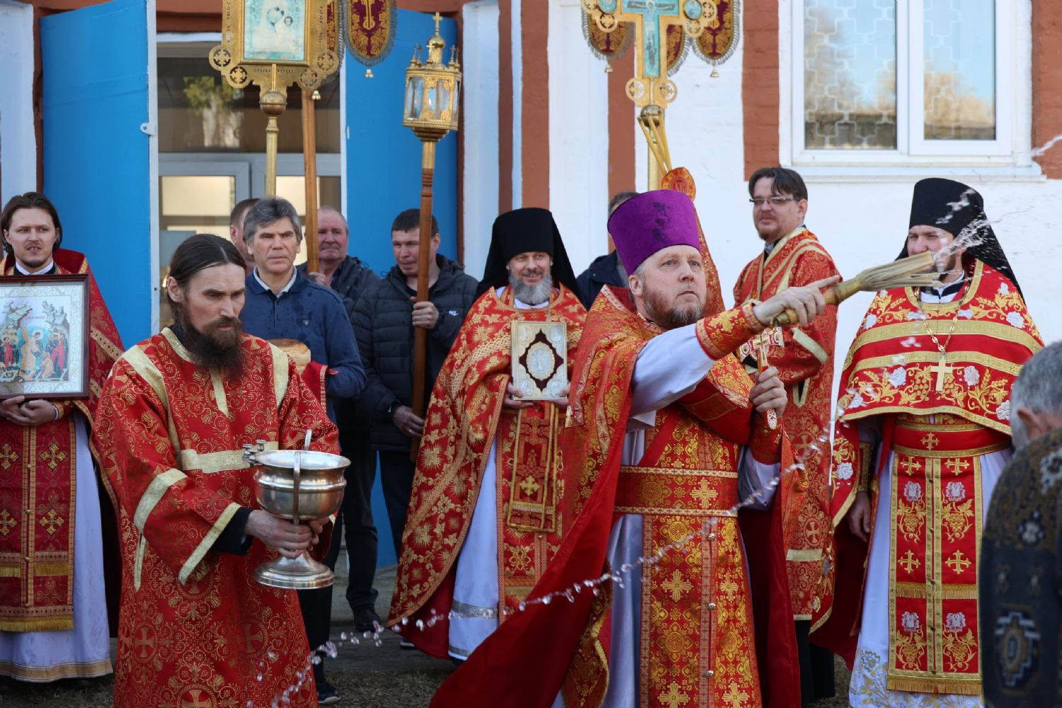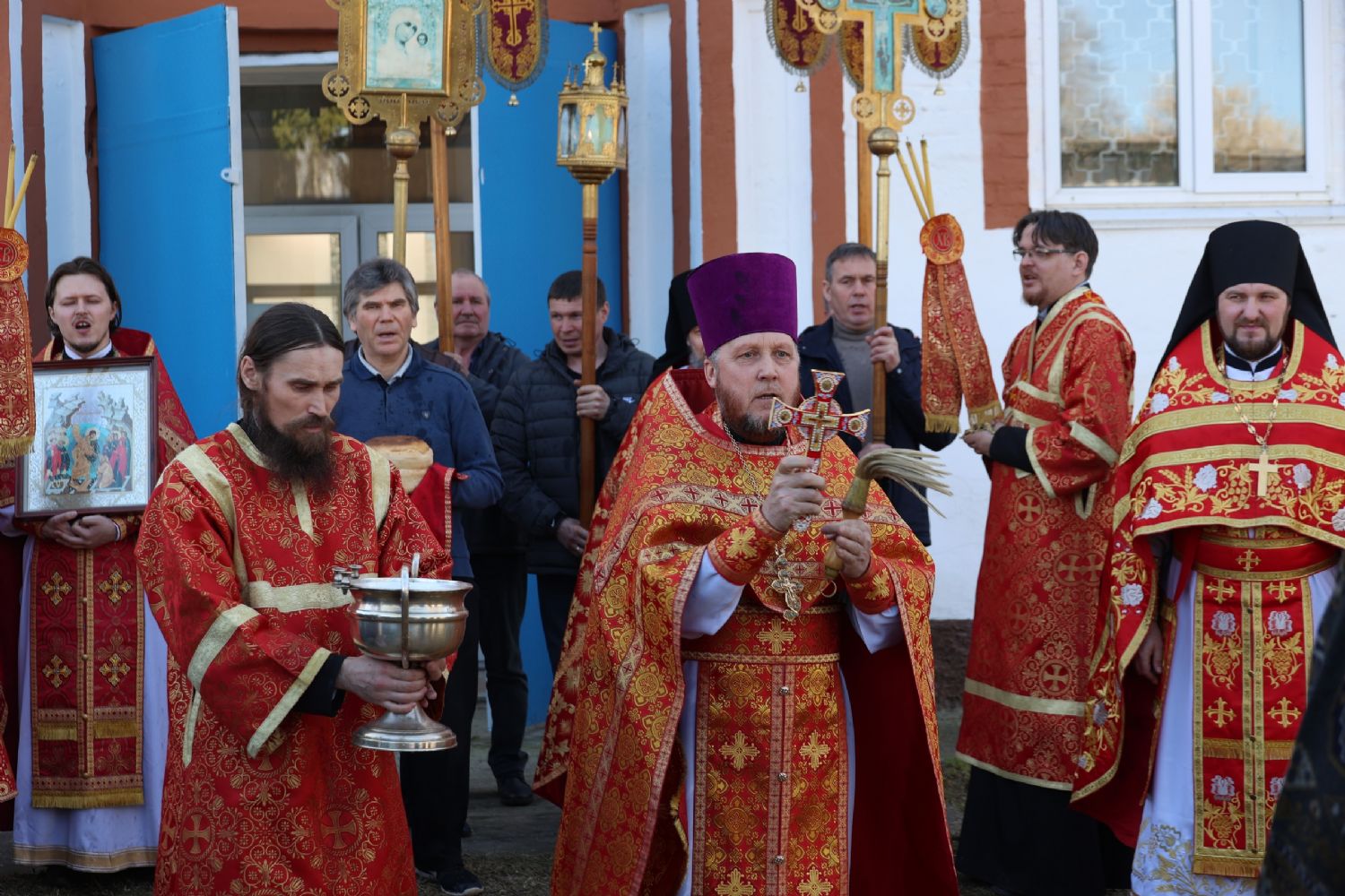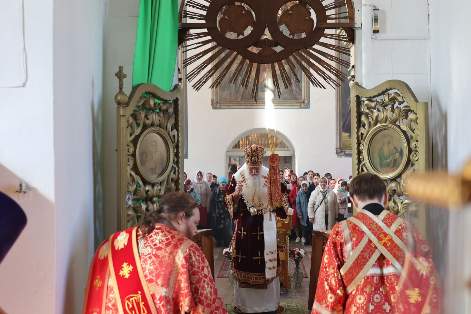 После Литургии прошел пасхальный крестный ход вокруг храма, затем епископ Феофан обратился к верующим с архипастырским словом. Владыка поздравил верующих с праздником Светлого Воскресения Христова и рассказал о сошествии во ад Господа нашего Иисуса Христа после Своей крестной смерти, а также о радостных событиях, произошедших после славного Воскресения Спасителя. Смерть побеждена, и рай вновь открыт для душ человеческих. Владыка дал почувствовать собравшимся ту радость, которую испытали жены-мироносицы и апостолы от ангельского известия о Воскресшем Спасителе. Архипастырь также напомнил о чудесном многократном явлении Спасителя в течение 40 дней Своим ученикам и женам-мироносицам.