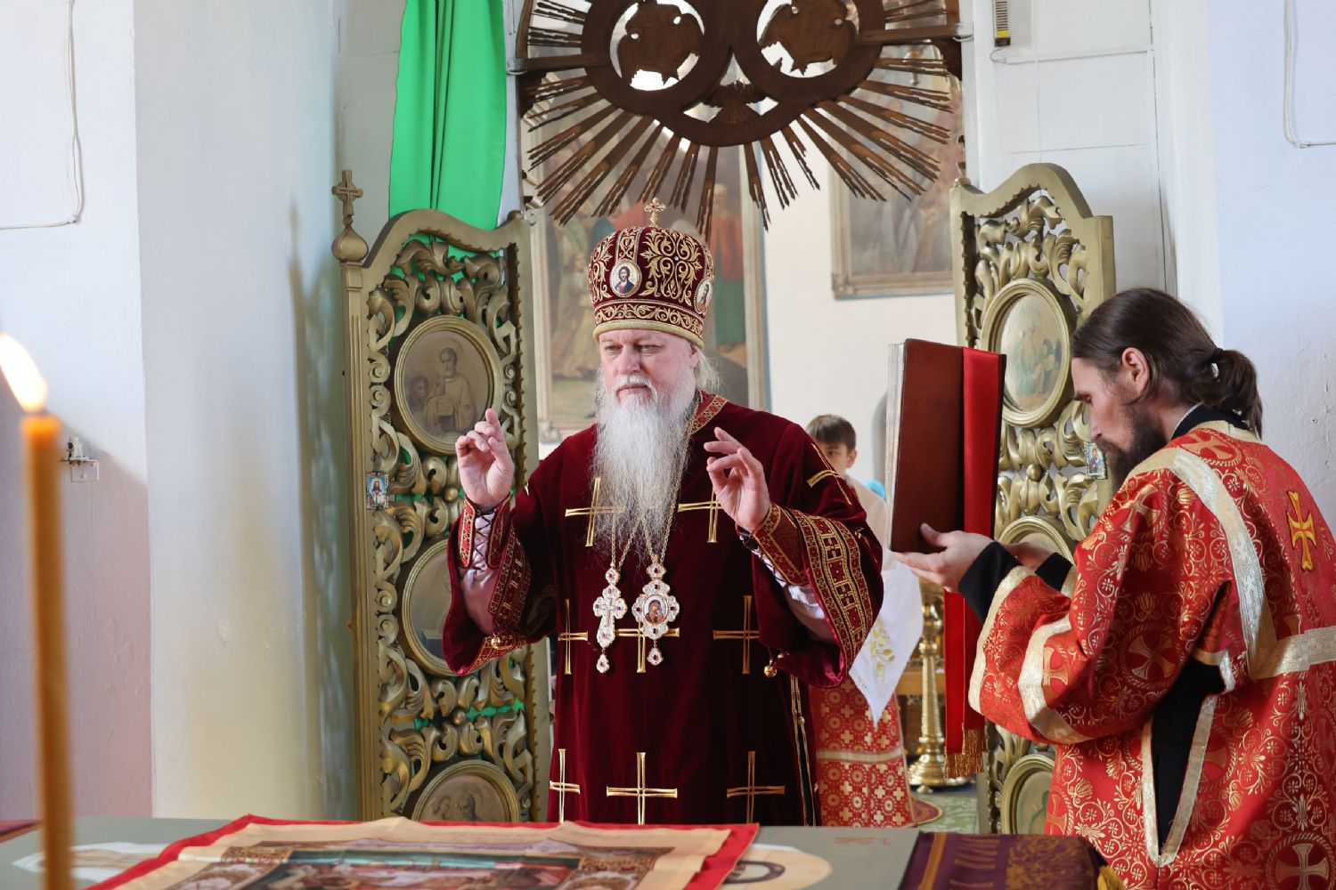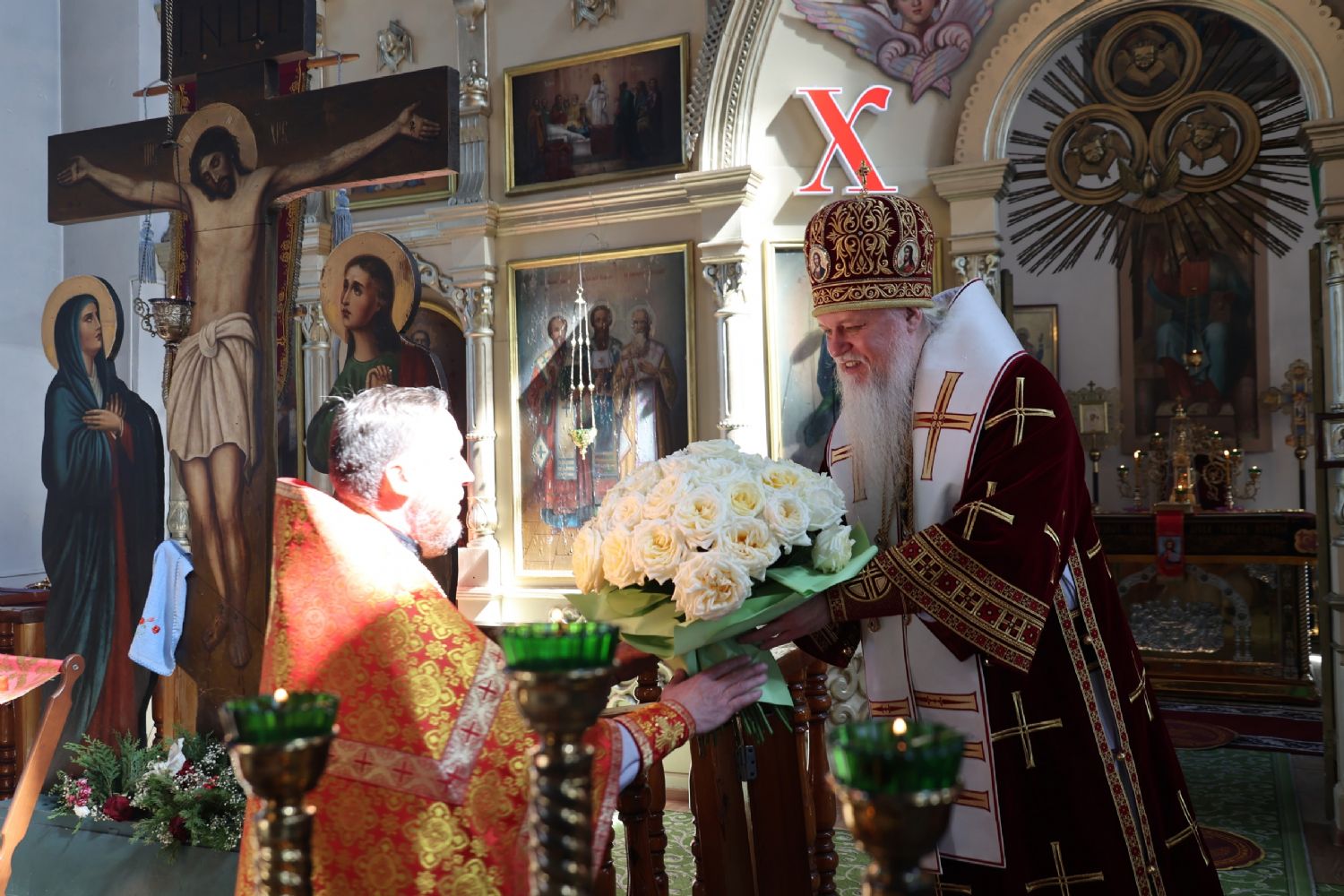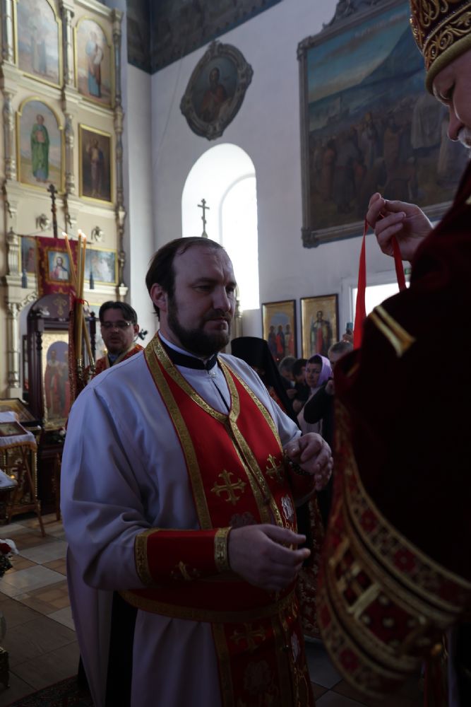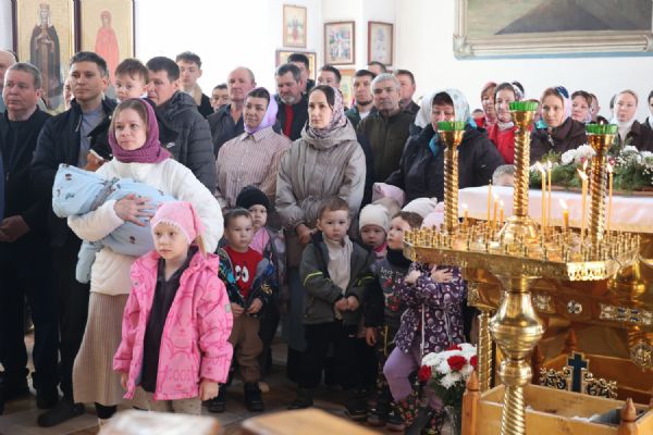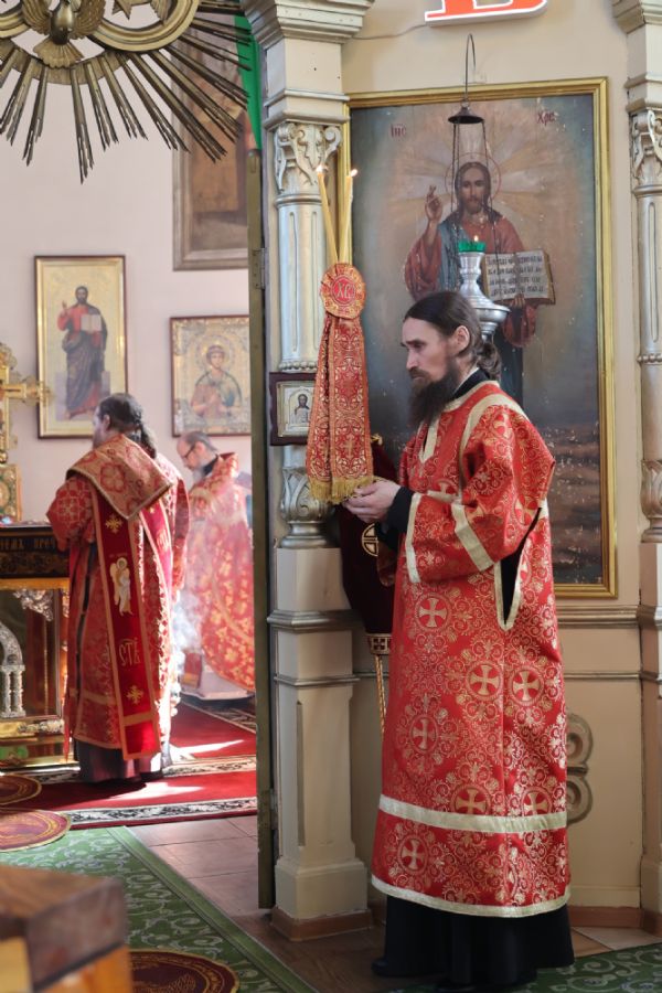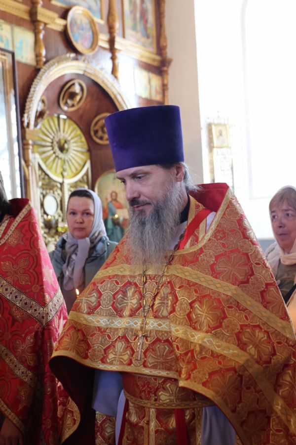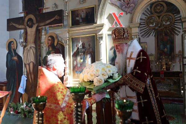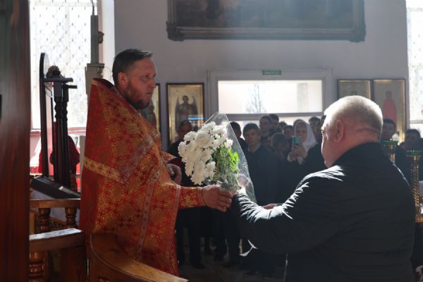 Также епископ Феофан рассказал о празднуемой в этот день иконе Божией Матери «Неувядаемый Цвет». В завершение владыка поздравил протоиерея Евгения Бакутова с 35-летием от начала служения священником в храме великомученика Димитрия Солунского и пожелал ему Божией помощи в нелёгком, но спасительном служении на благо Церкви и пасхальной радости его светлой душе.