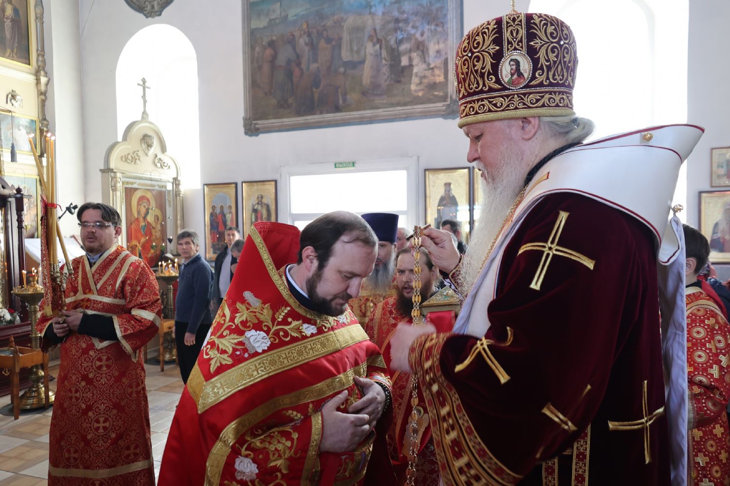 За богослужением на малом входе иеромонах Амвросий (Ульянов) был удостоен архиерейских наград – права ношения набедренника и права ношения золотого наперсного креста.