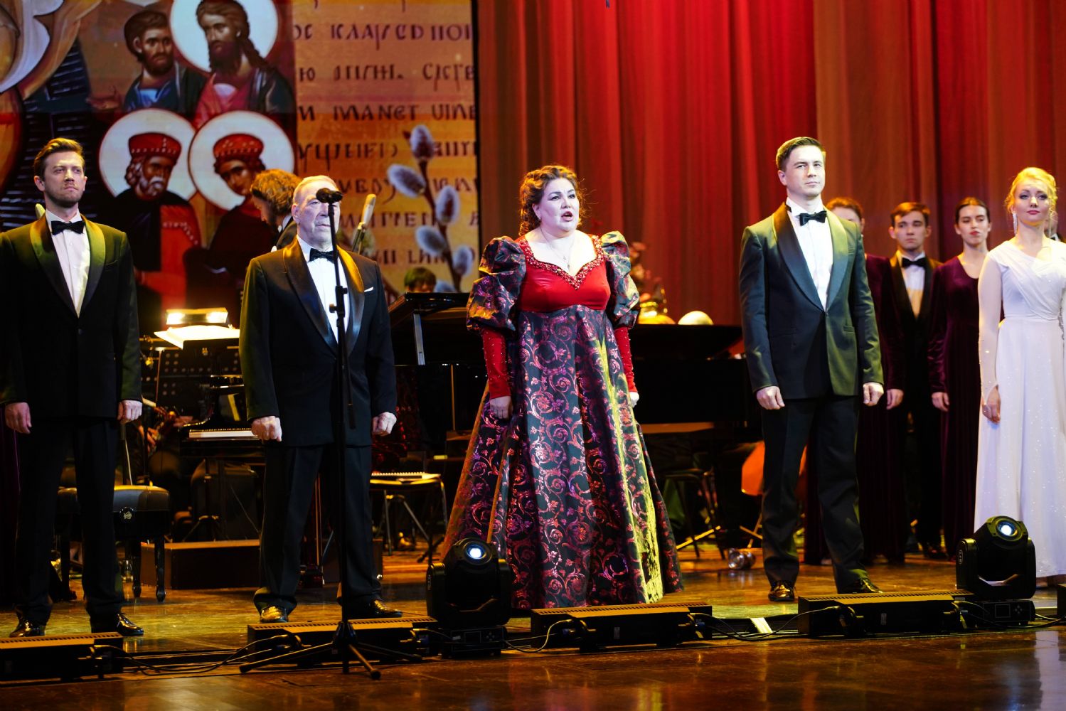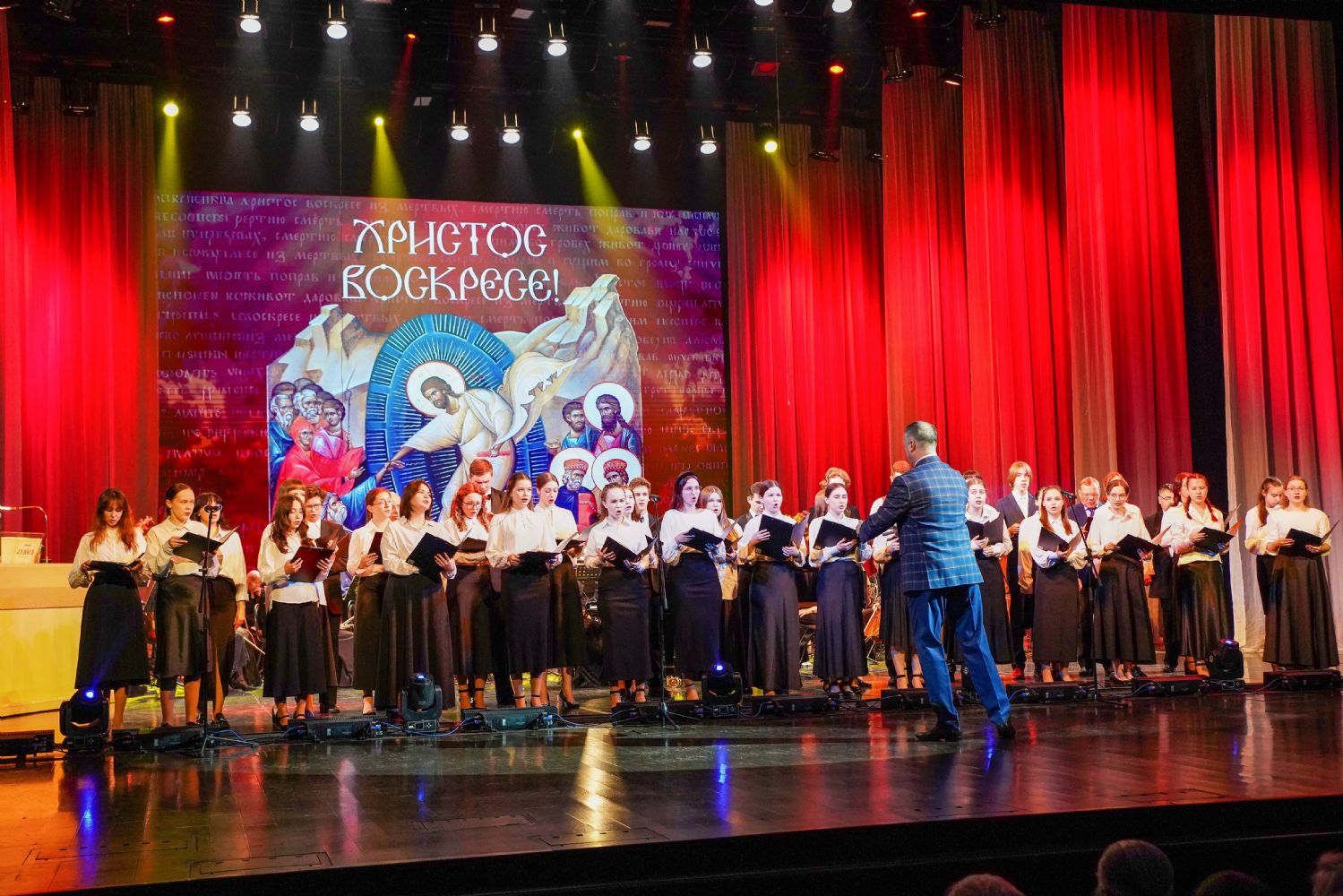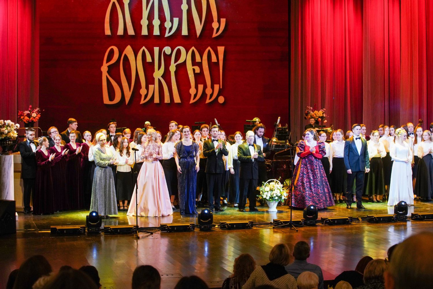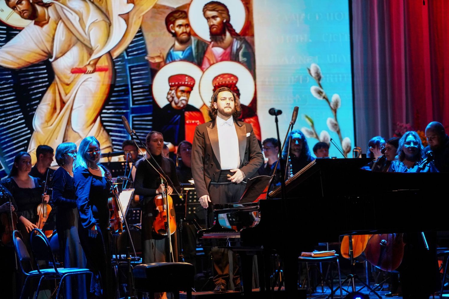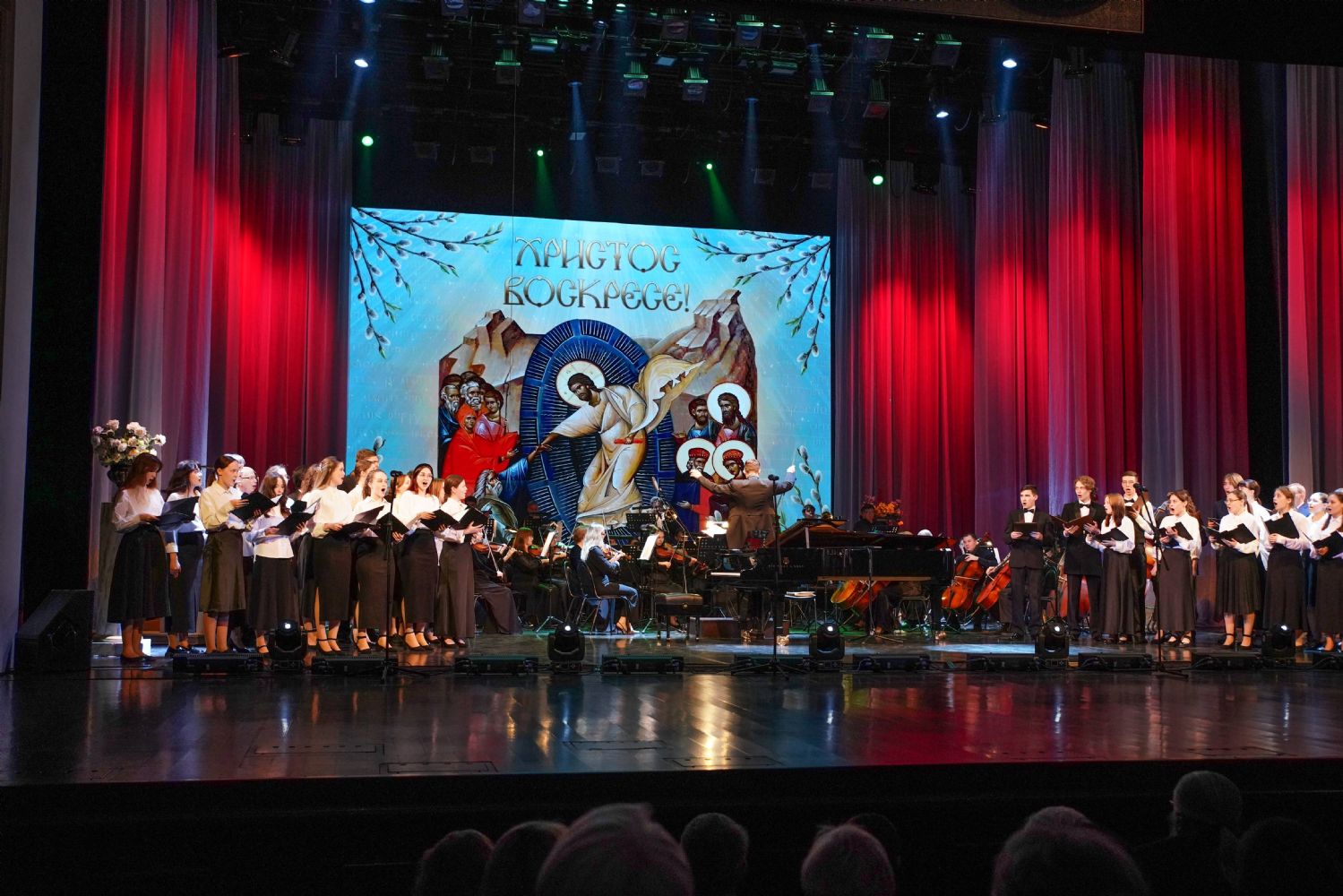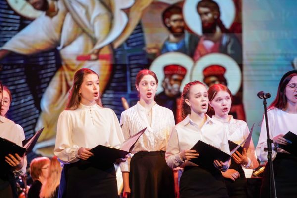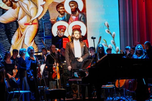 Концерт открыло выступление симфонического оркестра театра под управлением дирижера Григория Архипова, затем академический хор Колледжа культуры и искусств им. Палантая (руководитель Кирилл Тихонычев) исполнил пасхальный тропарь.