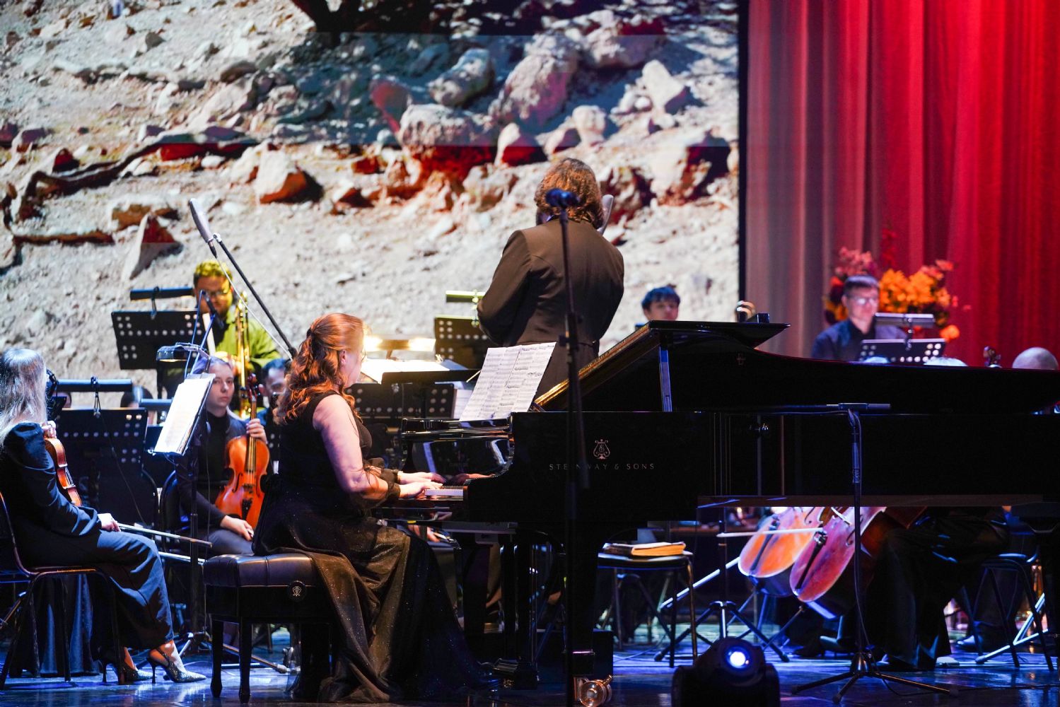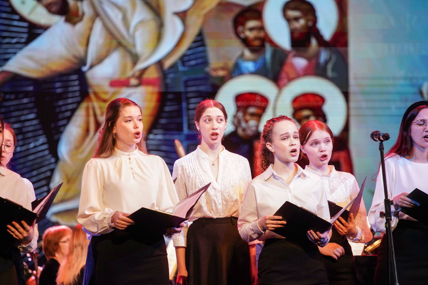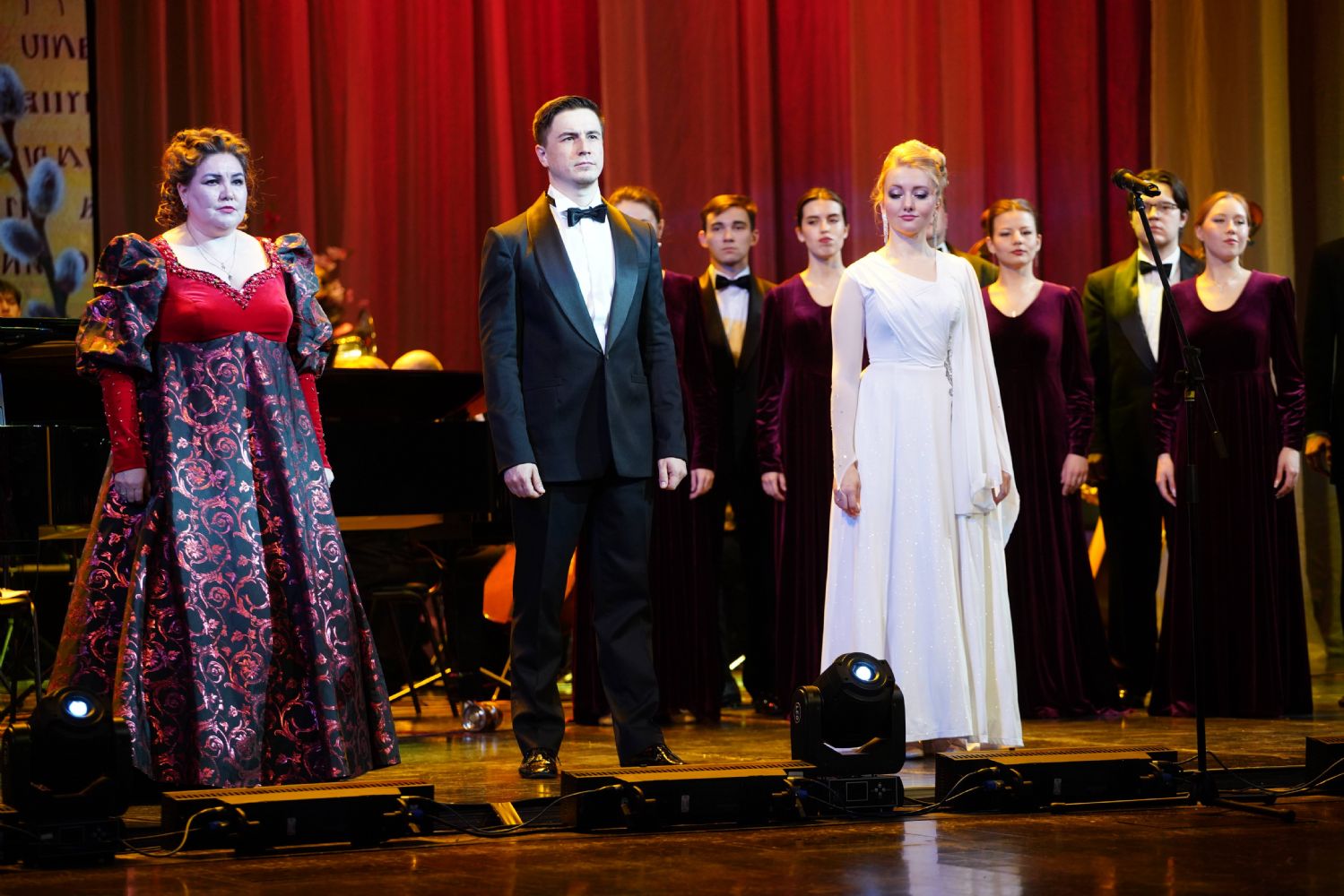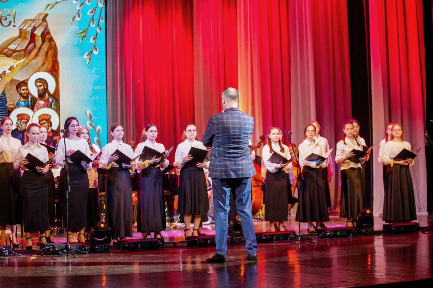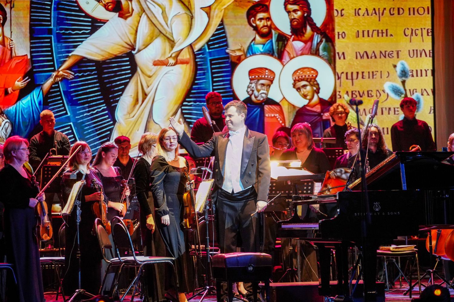 Концерт открыло выступление симфонического оркестра театра под управлением дирижера Григория Архипова, затем академический хор Колледжа культуры и искусств им. Палантая (руководитель Кирилл Тихонычев) исполнил пасхальный тропарь.
