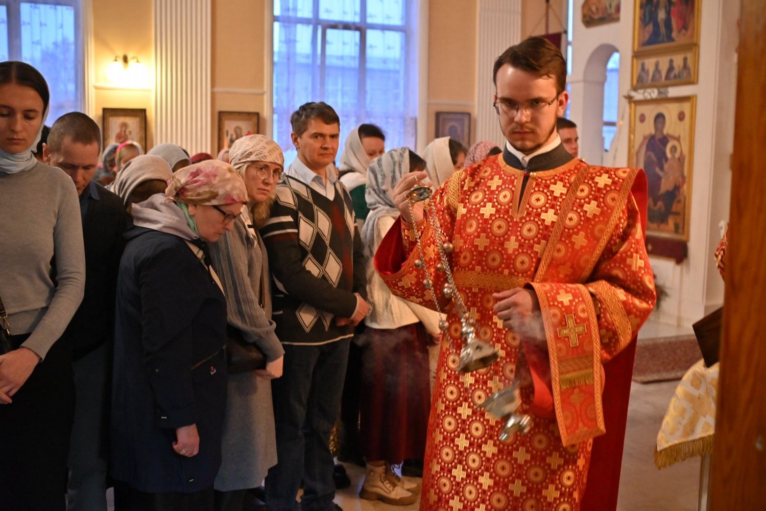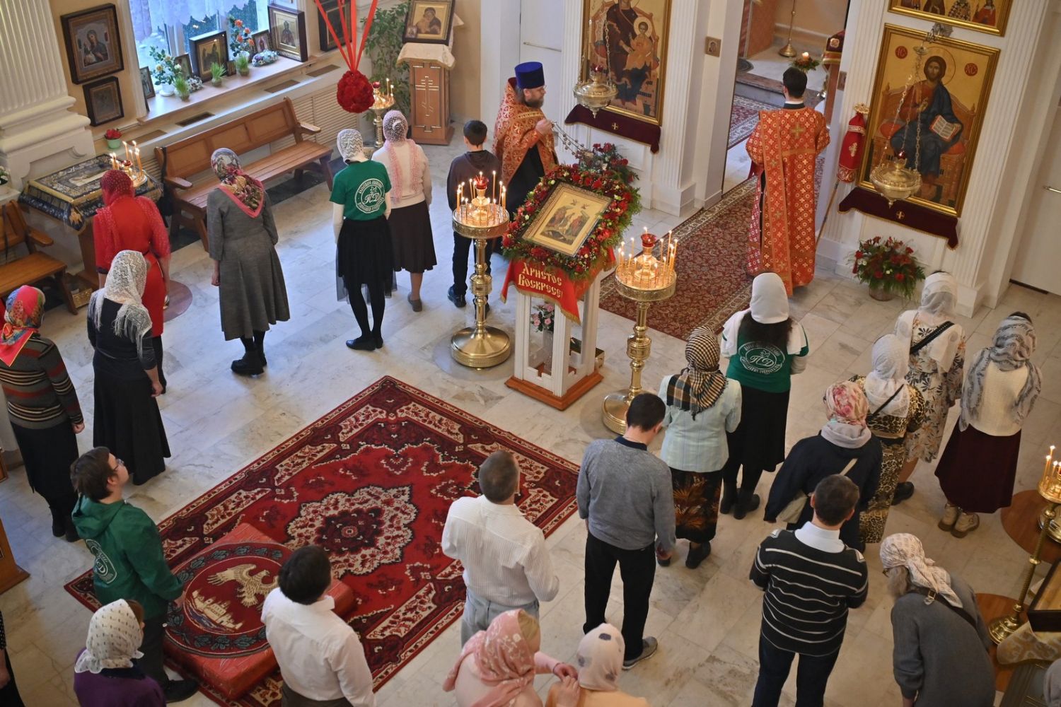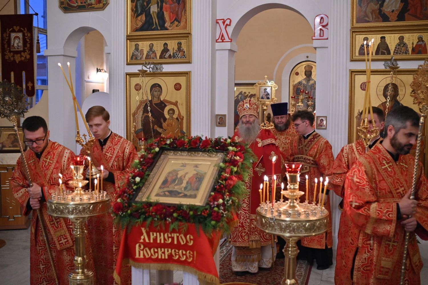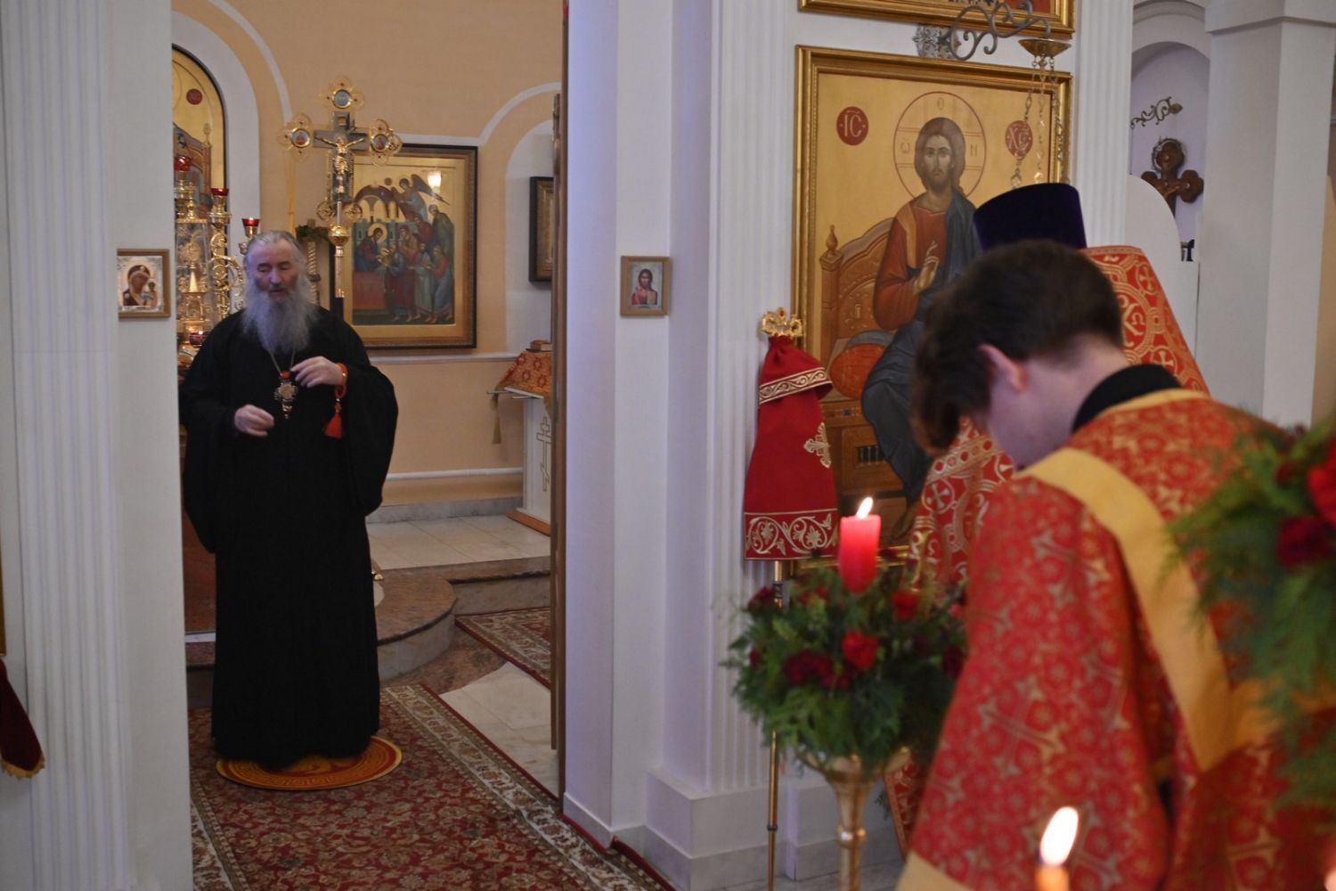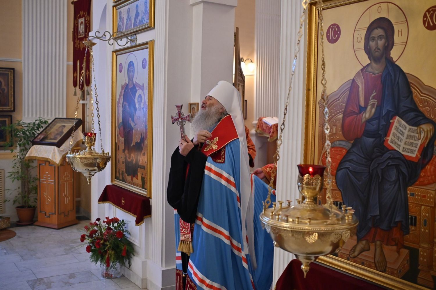 Архипастырю сослужили настоятель храма протоиерей Евгений Сурков, клирики храма иерей Андрей Иванов и диакон Никита Сурков. Песнопения исполняли хор храма под управлением Аллы Симаковой и детский хор гимназии имени Сергия Радонежского.