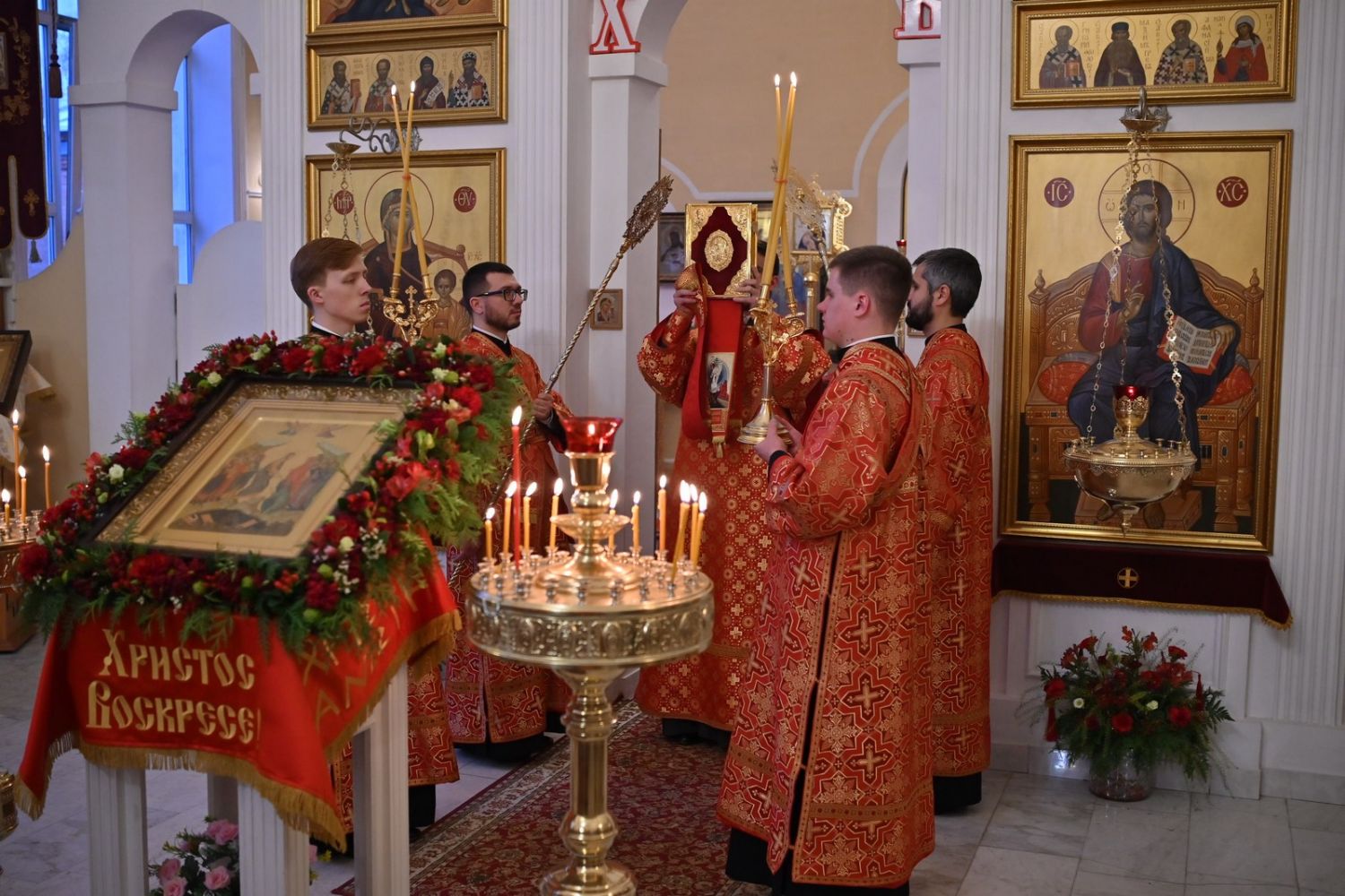 Перед всенощным бдением была совершена служба пасхального часа и закрыты Царские врата, остававшиеся открытыми всю Светлую седмицу.